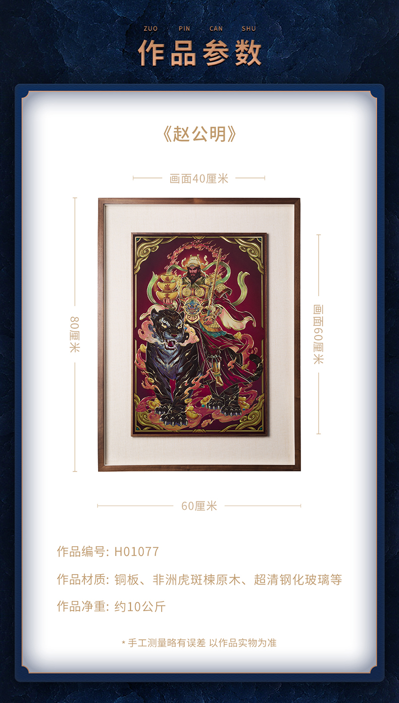 铜师傅 手工錾刻 铜雕画《赵公明》客厅玄关沙发背景墙装饰挂画
