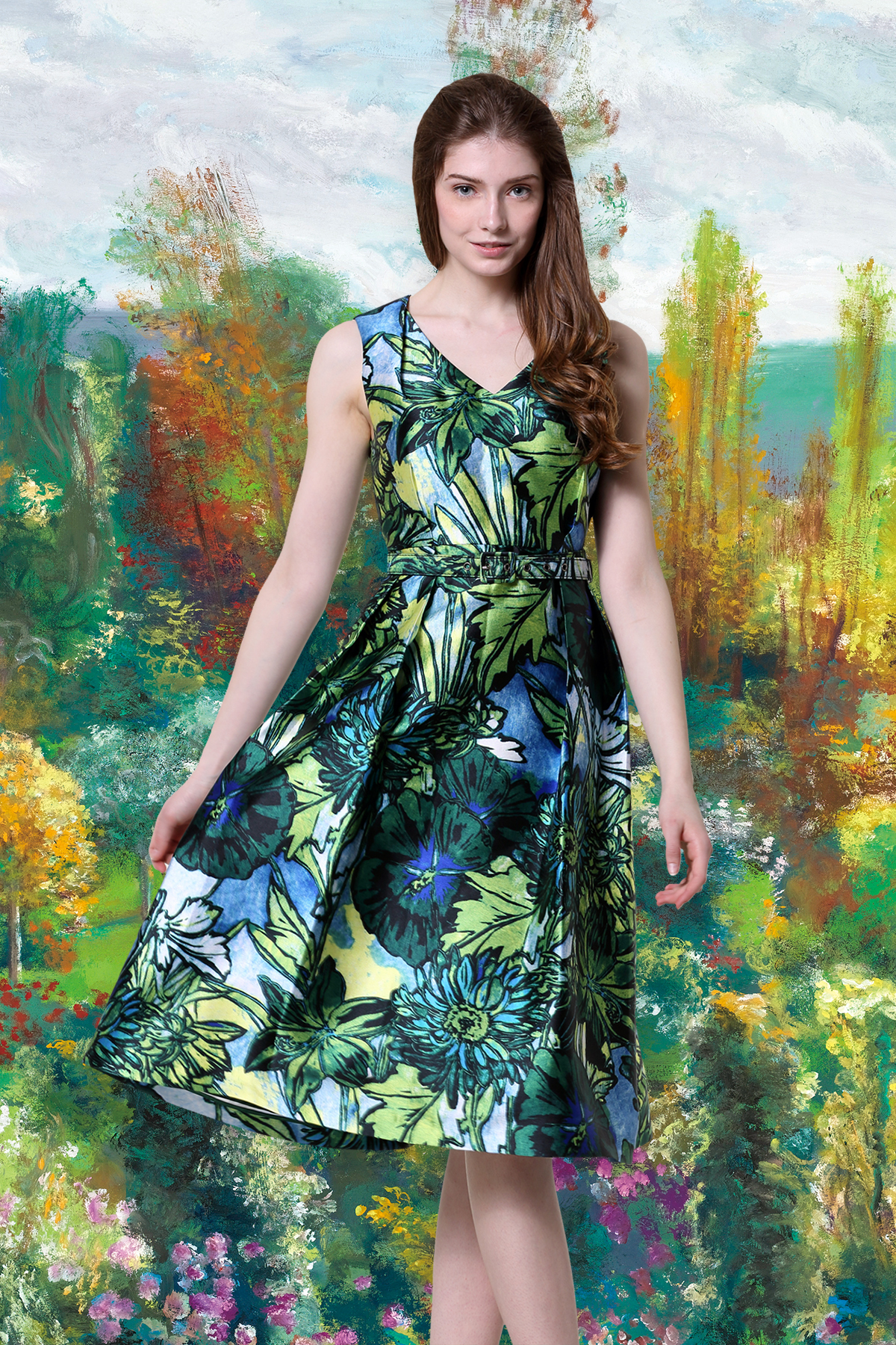 【伯妮斯茵】161S196--绿色连衣裙--长着向日葵的蔬菜园--《生命之美-梵高的花园》