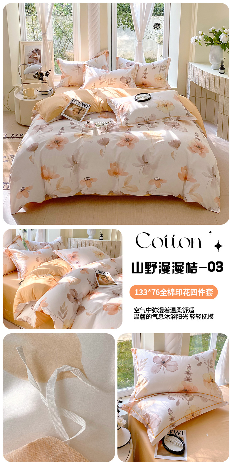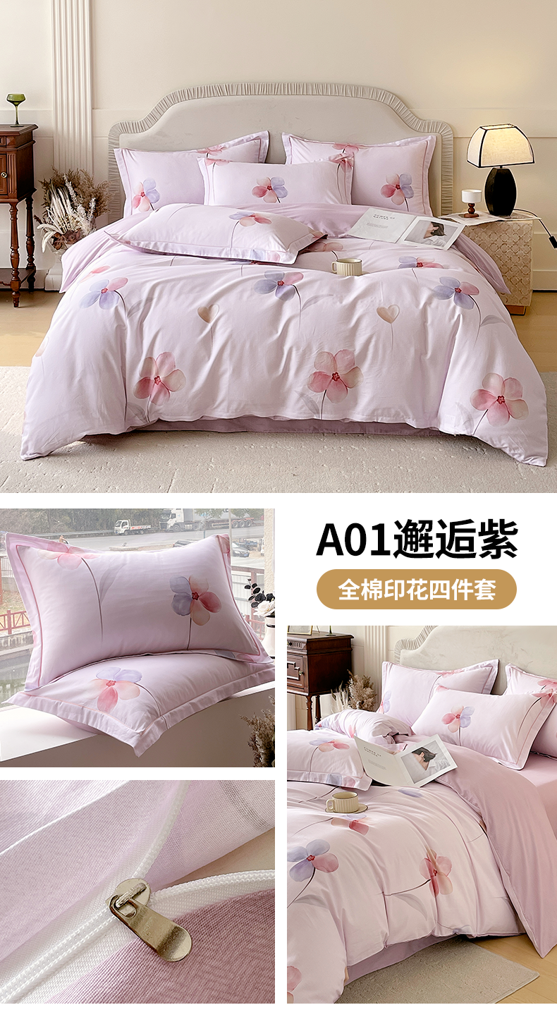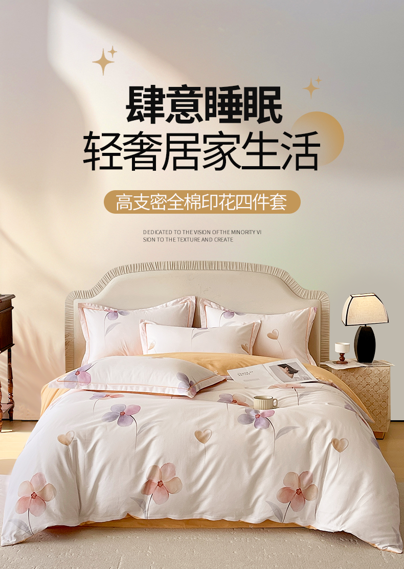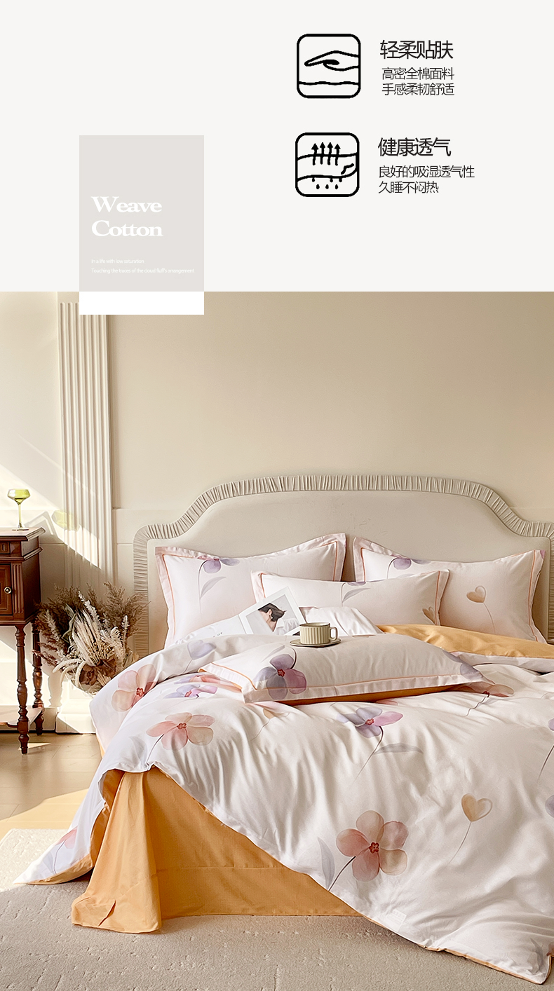【品牌直发】加倍生活 新疆精梳全棉印花高支密纯棉床单四件套-邂逅系列 20色可选 1.5m1.8m2.0m床可选