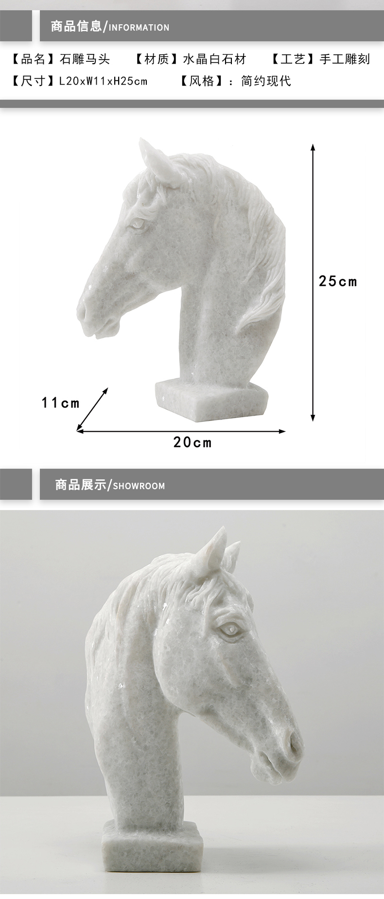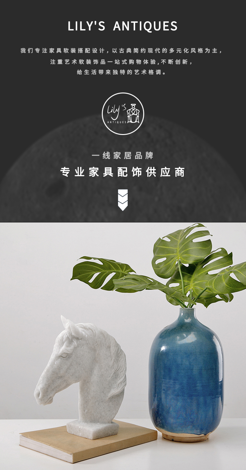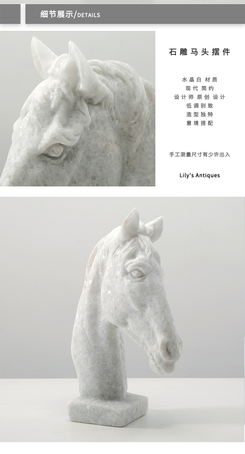 轻奢石雕马头摆件办公室桌面装饰品马到成功样板房玄关客厅书架