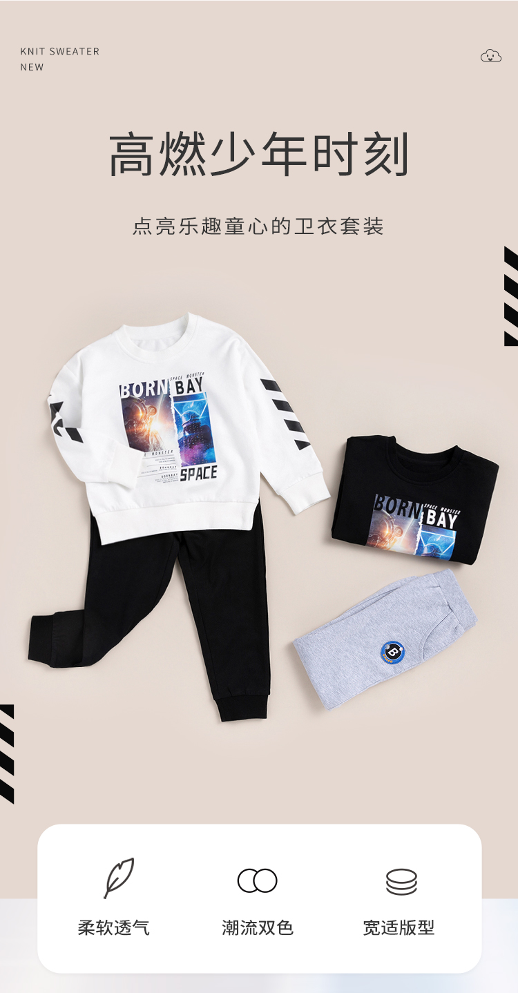 贝贝怡童装儿童时尚运动两件套春秋男童酷帅卫衣套装