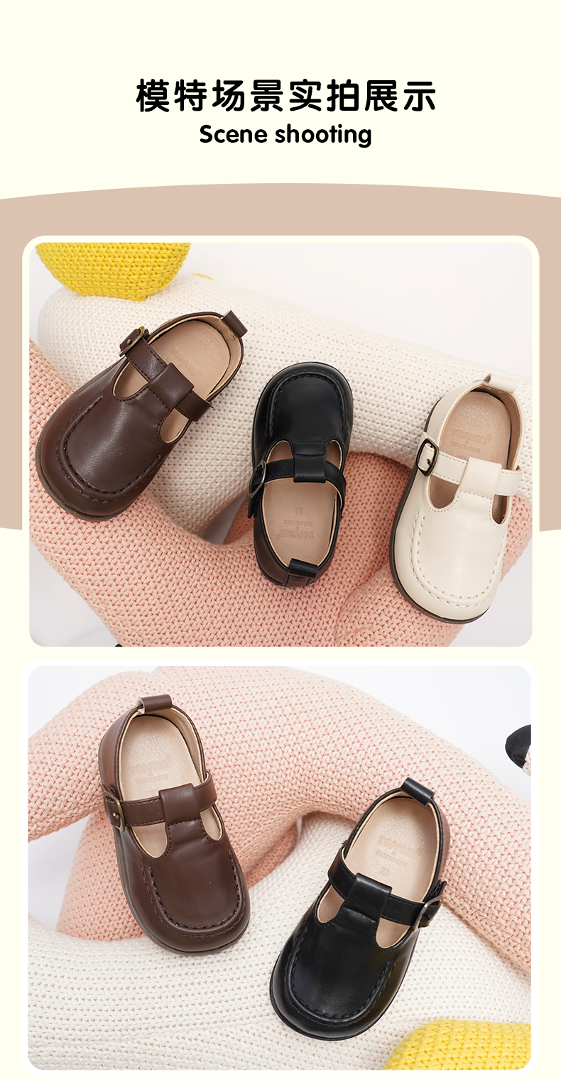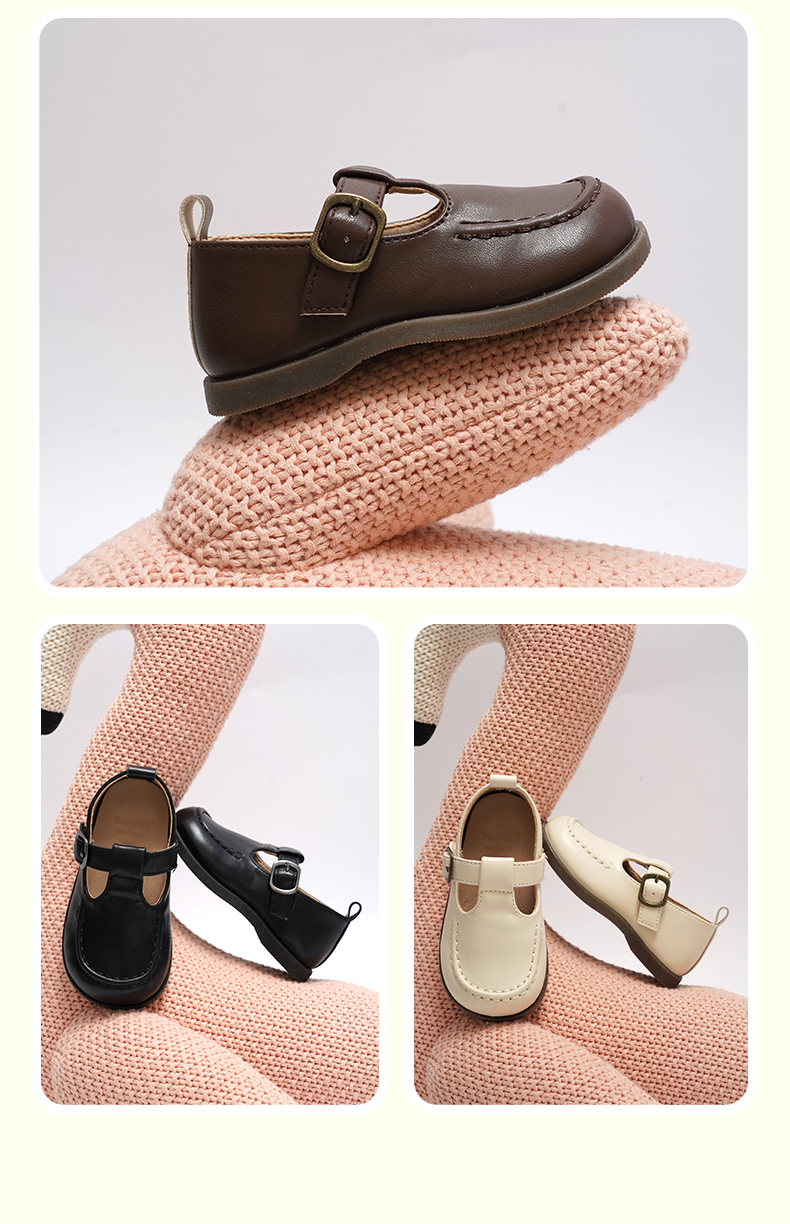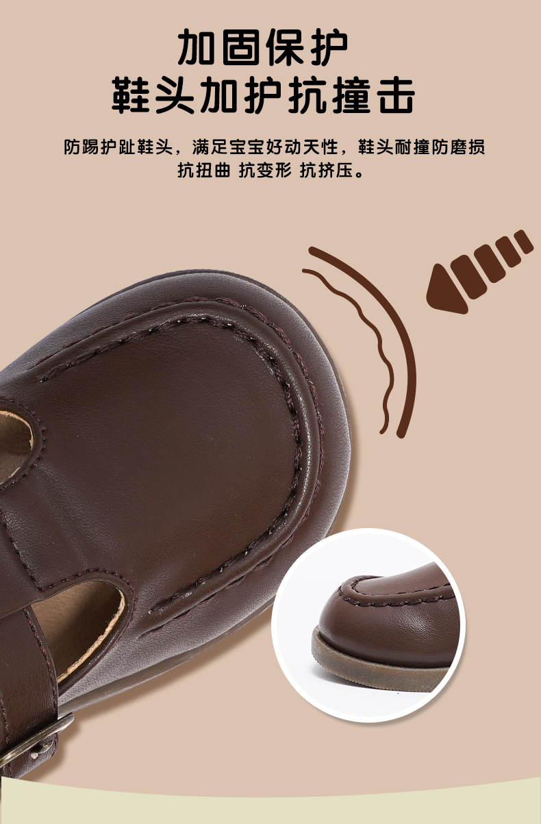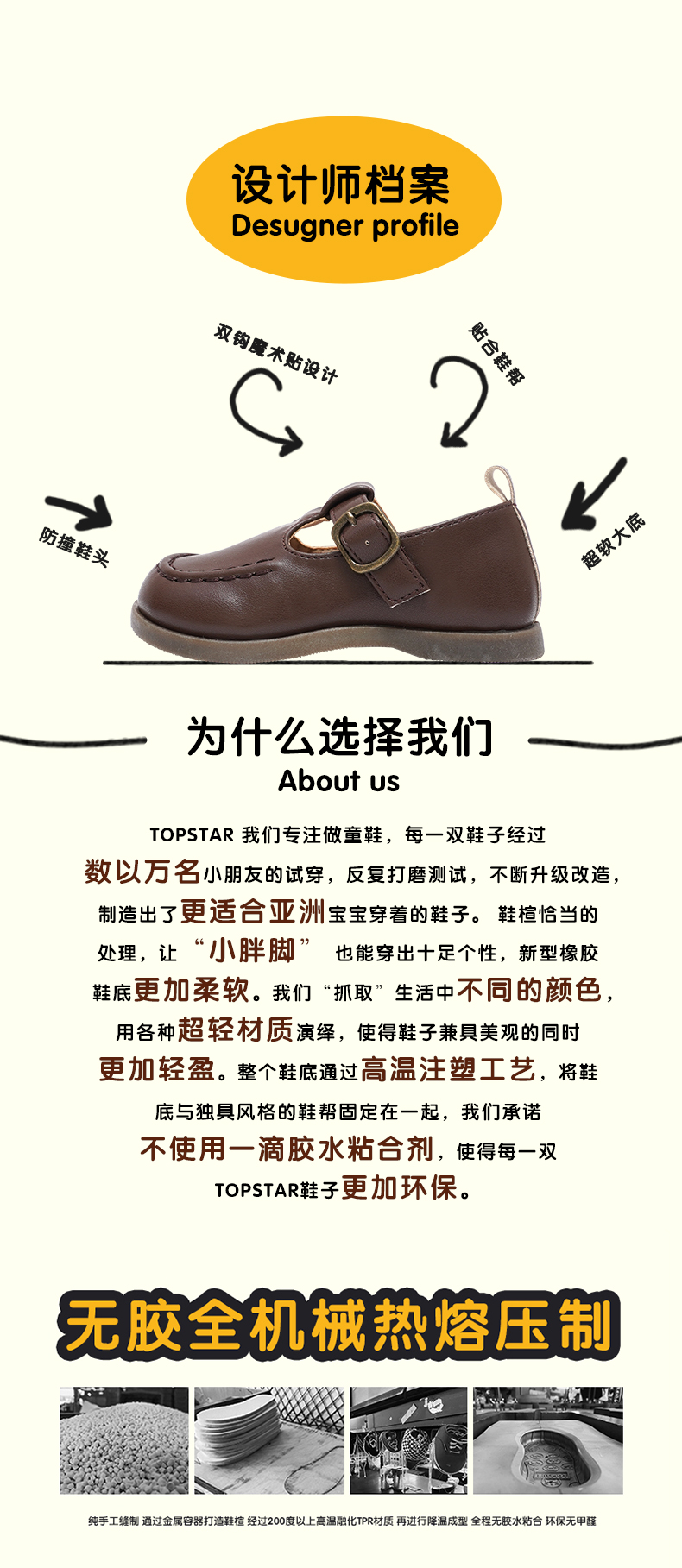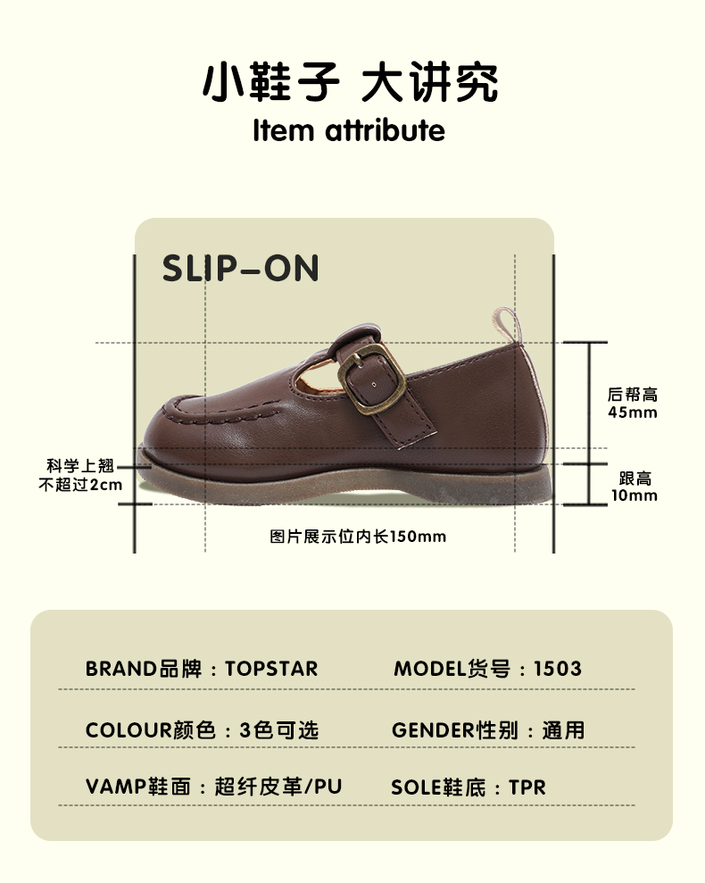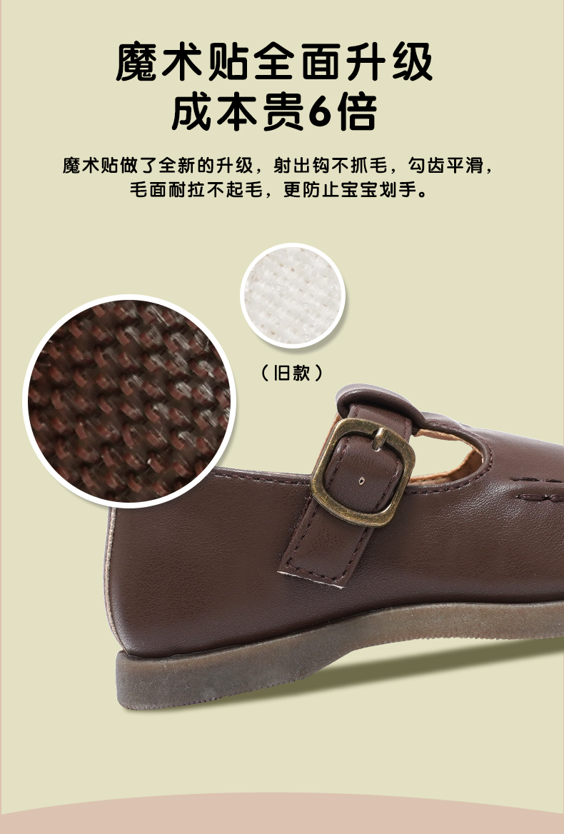TOPSTAR男女童软底复古魔术贴小皮鞋幼儿园礼服鞋1503