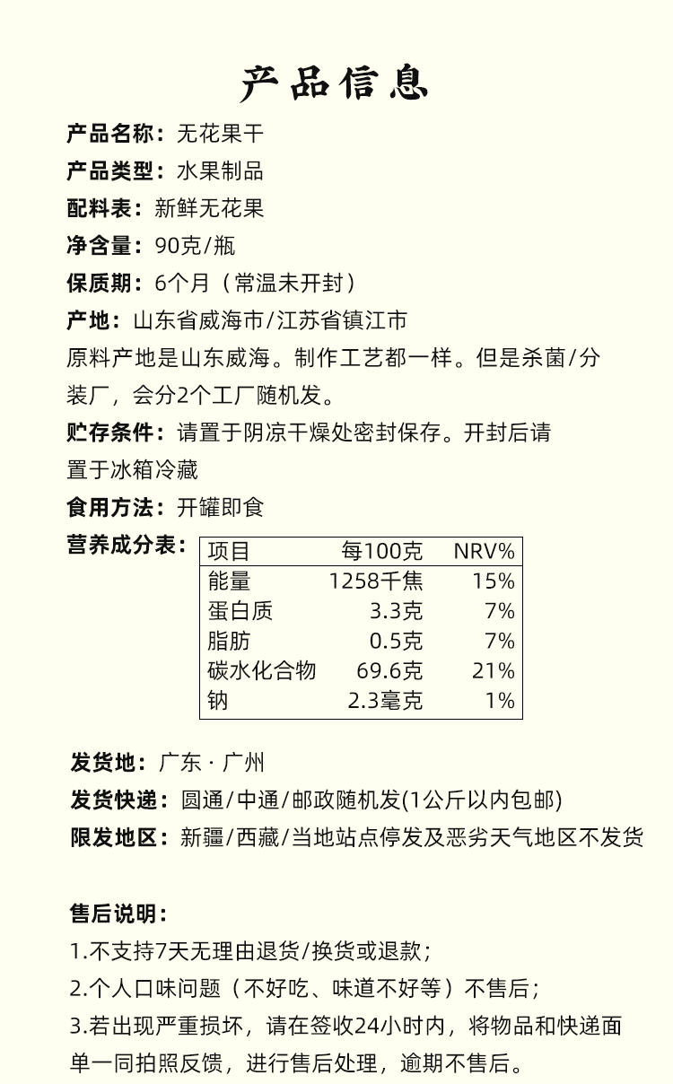 【产品产地】:无花果干是山东省威海市/江苏省镇江市(原料产地是山东威海,制作工艺都一样)