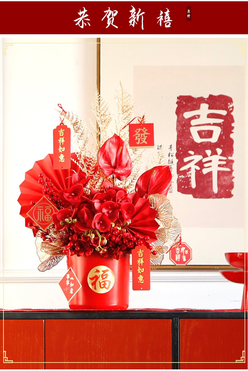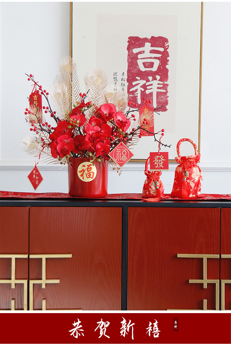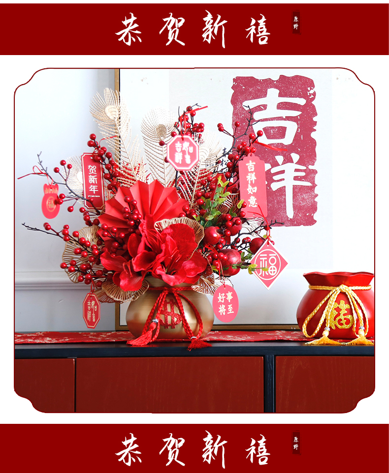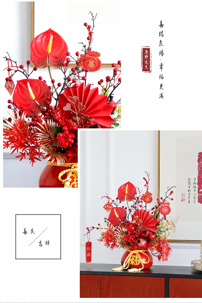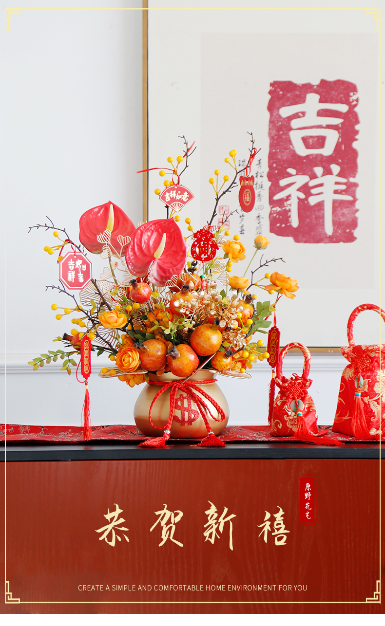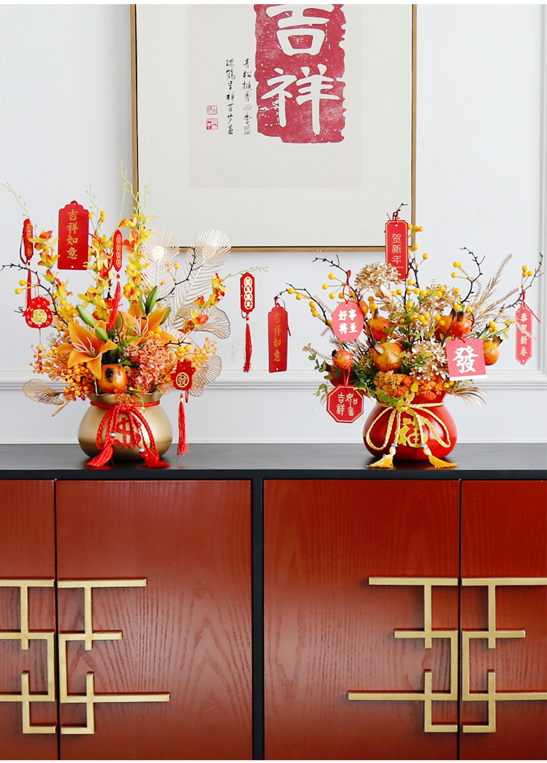 红色发财果仿真花福桶摆件客厅开业乔迁新居高档新房年宵花装饰品