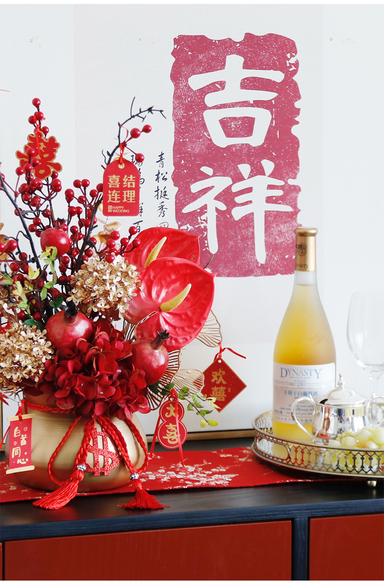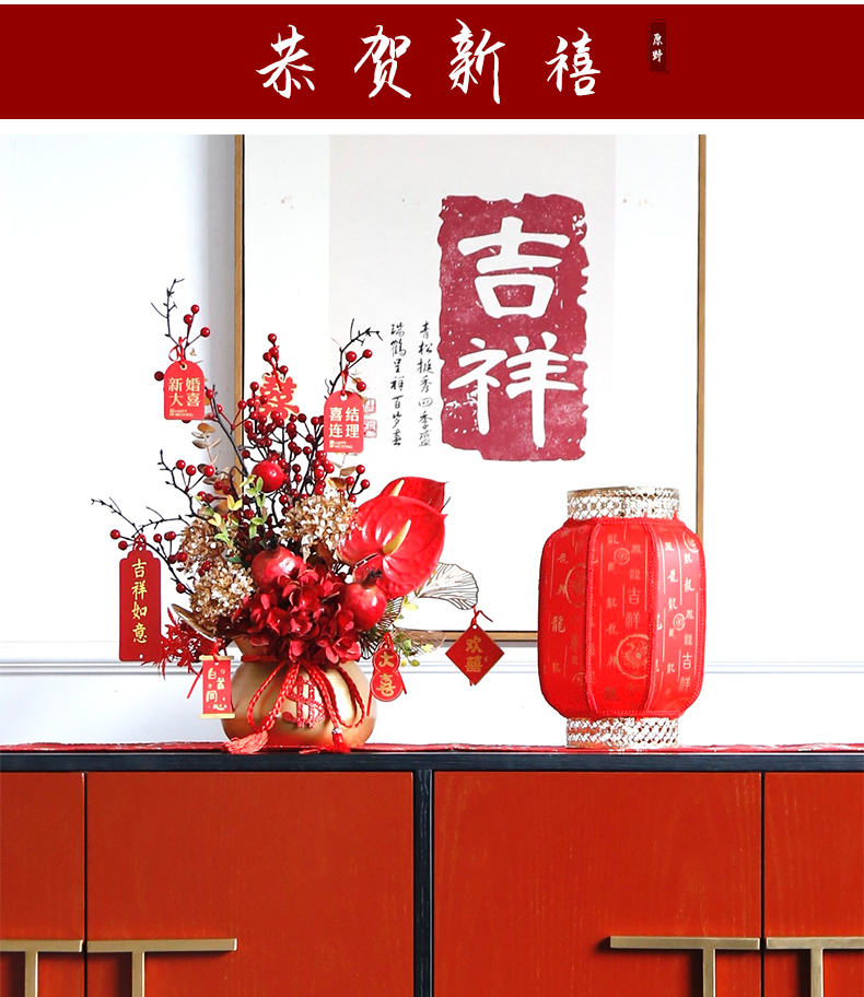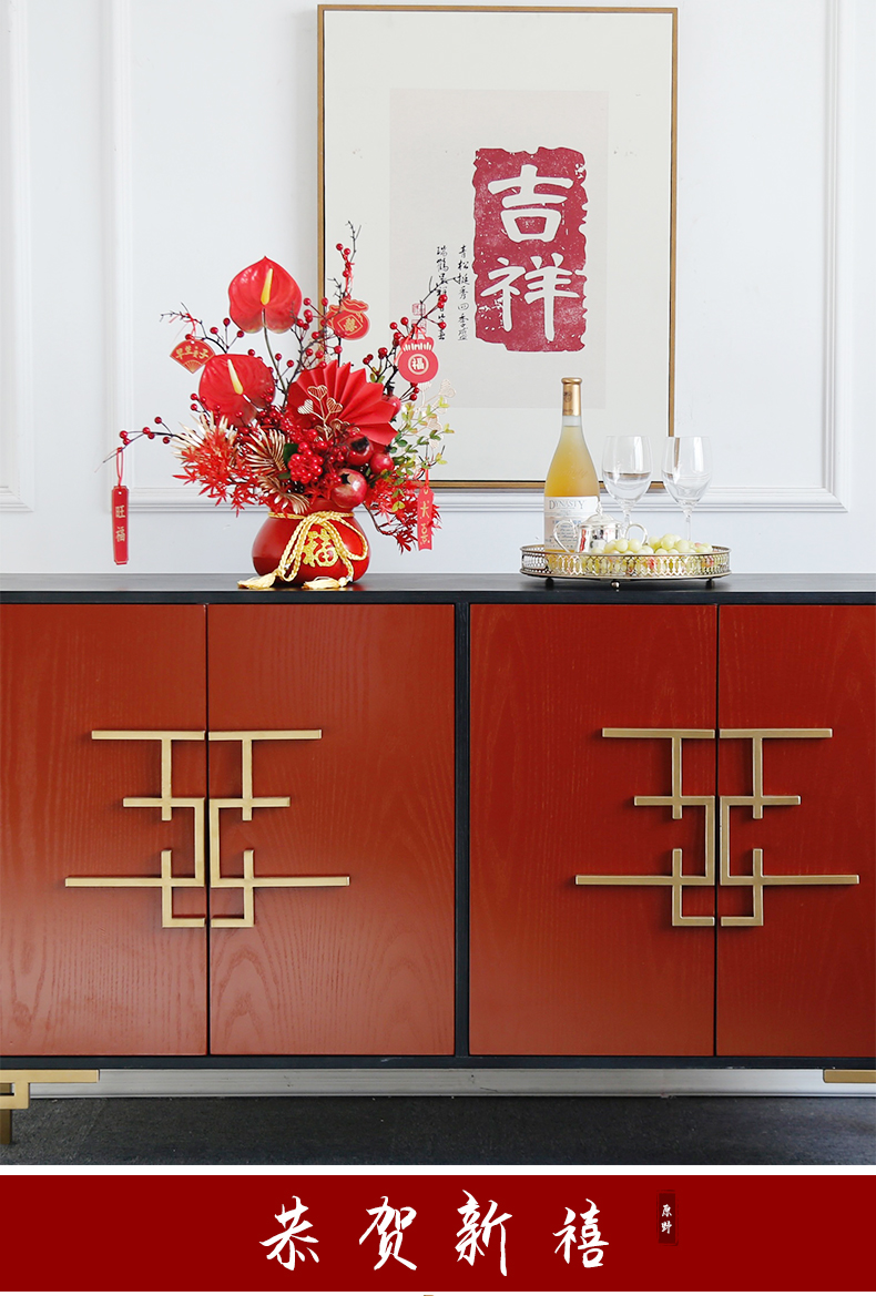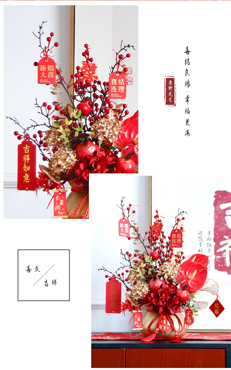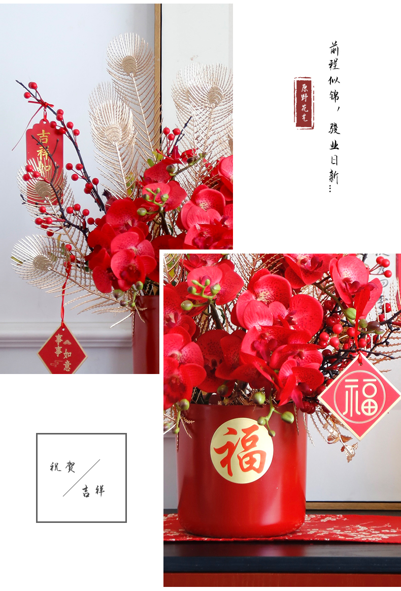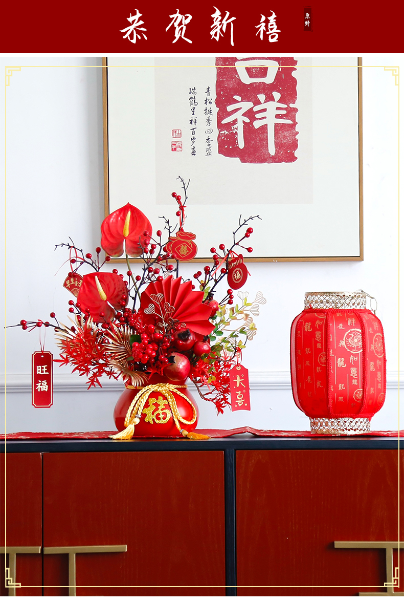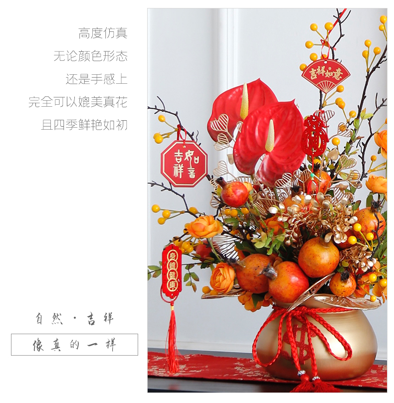 红色发财果仿真花福桶摆件客厅开业乔迁新居高档新房年宵花装饰品