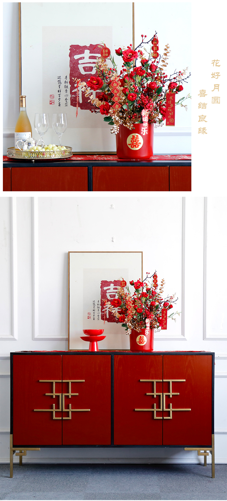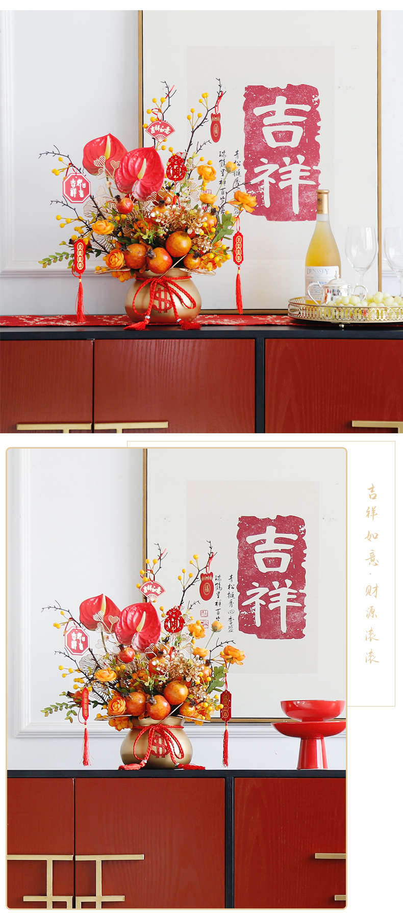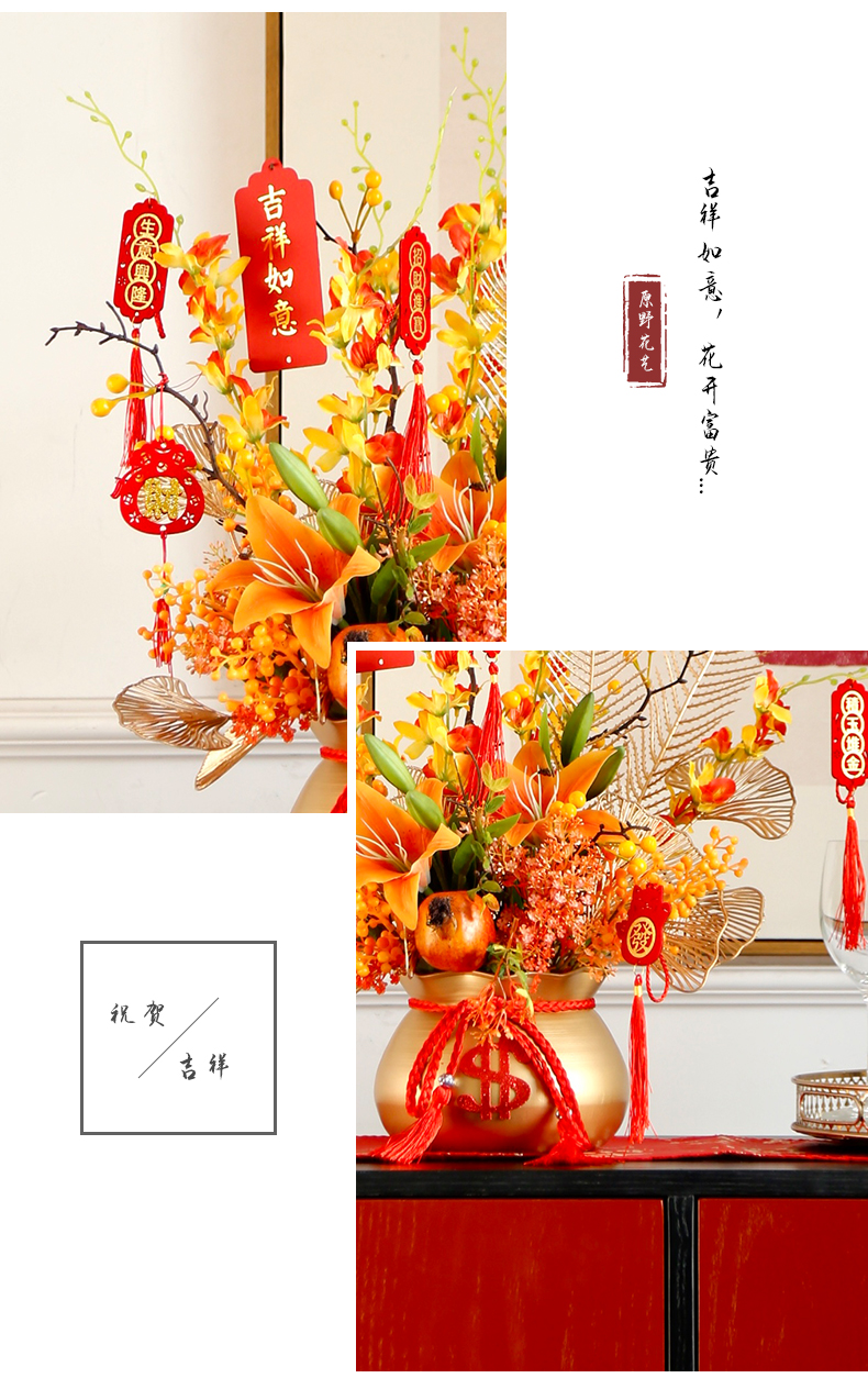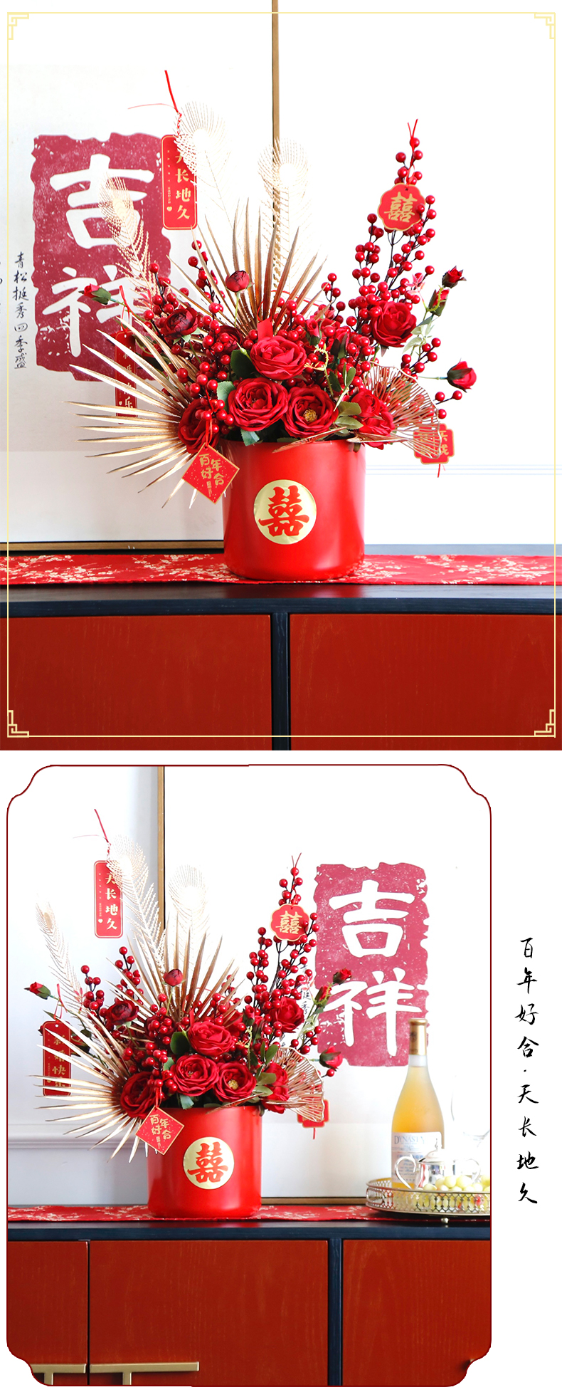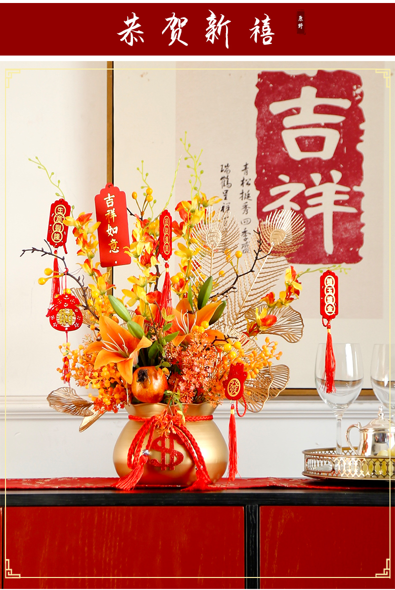红色发财果仿真花福桶摆件客厅开业乔迁新居高档新房年宵花装饰品