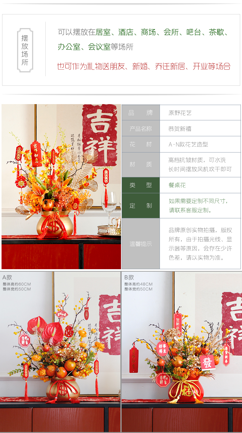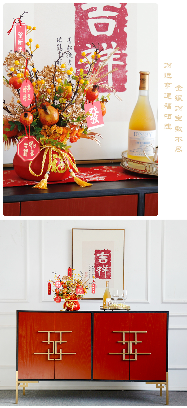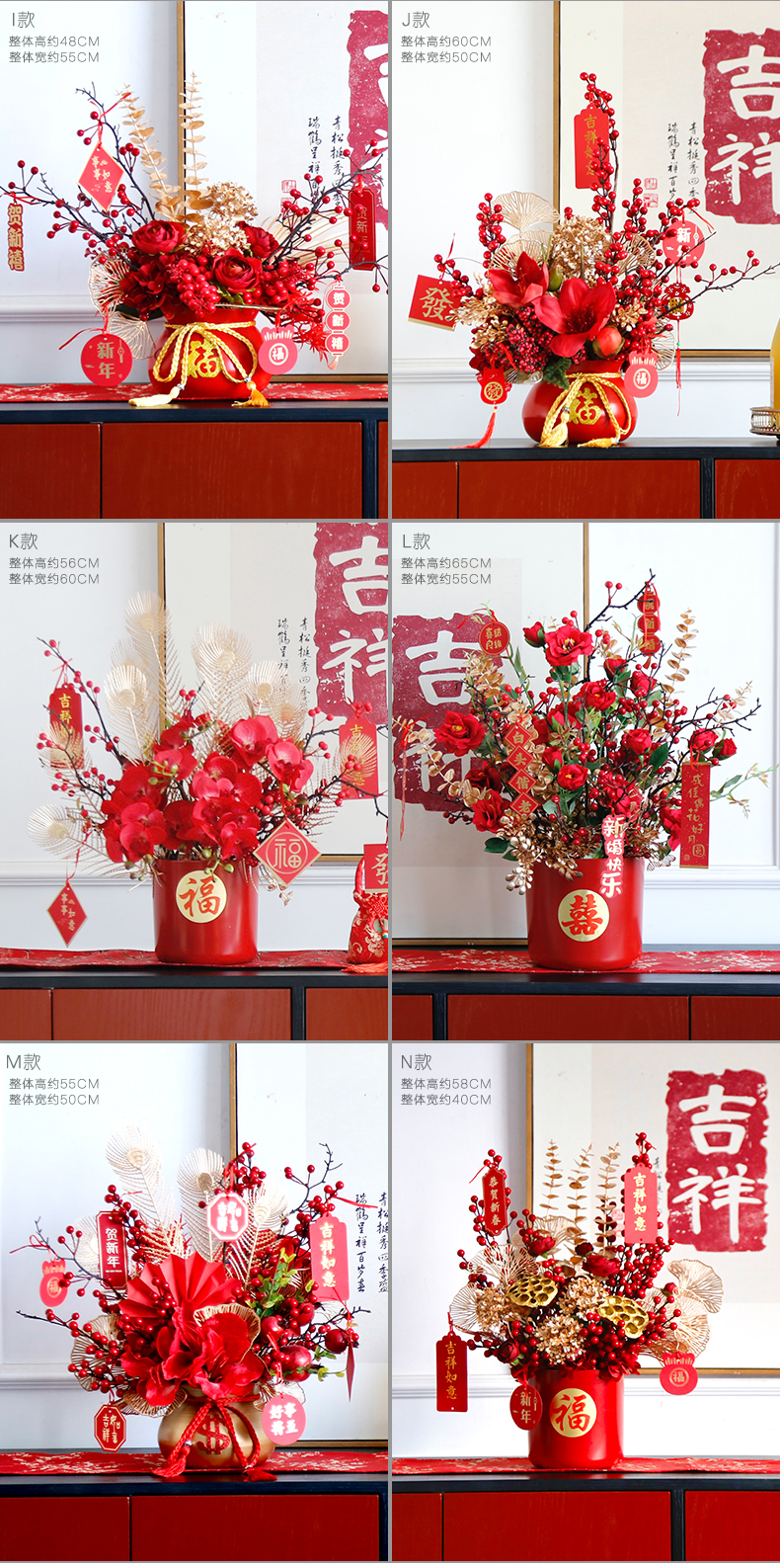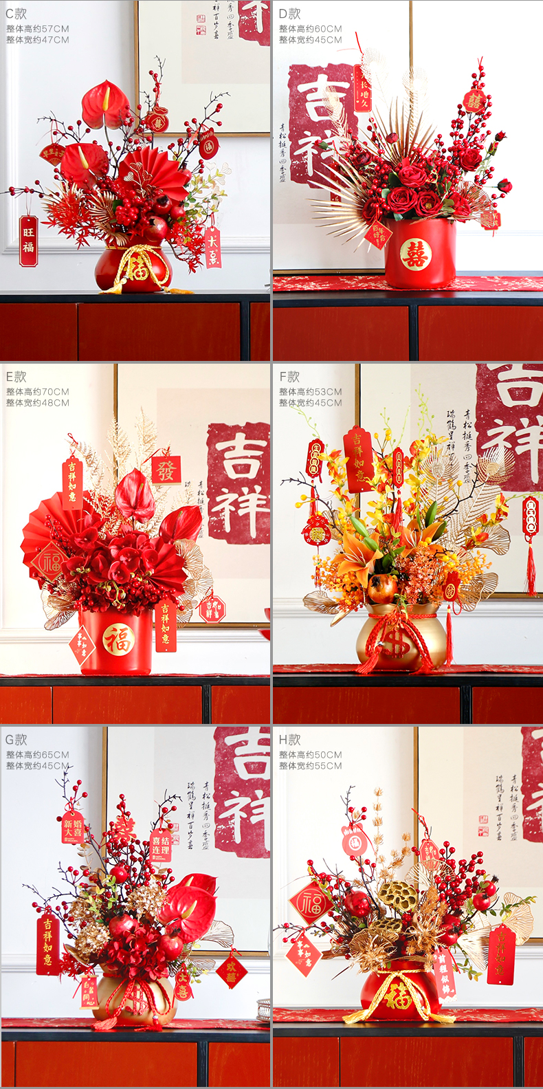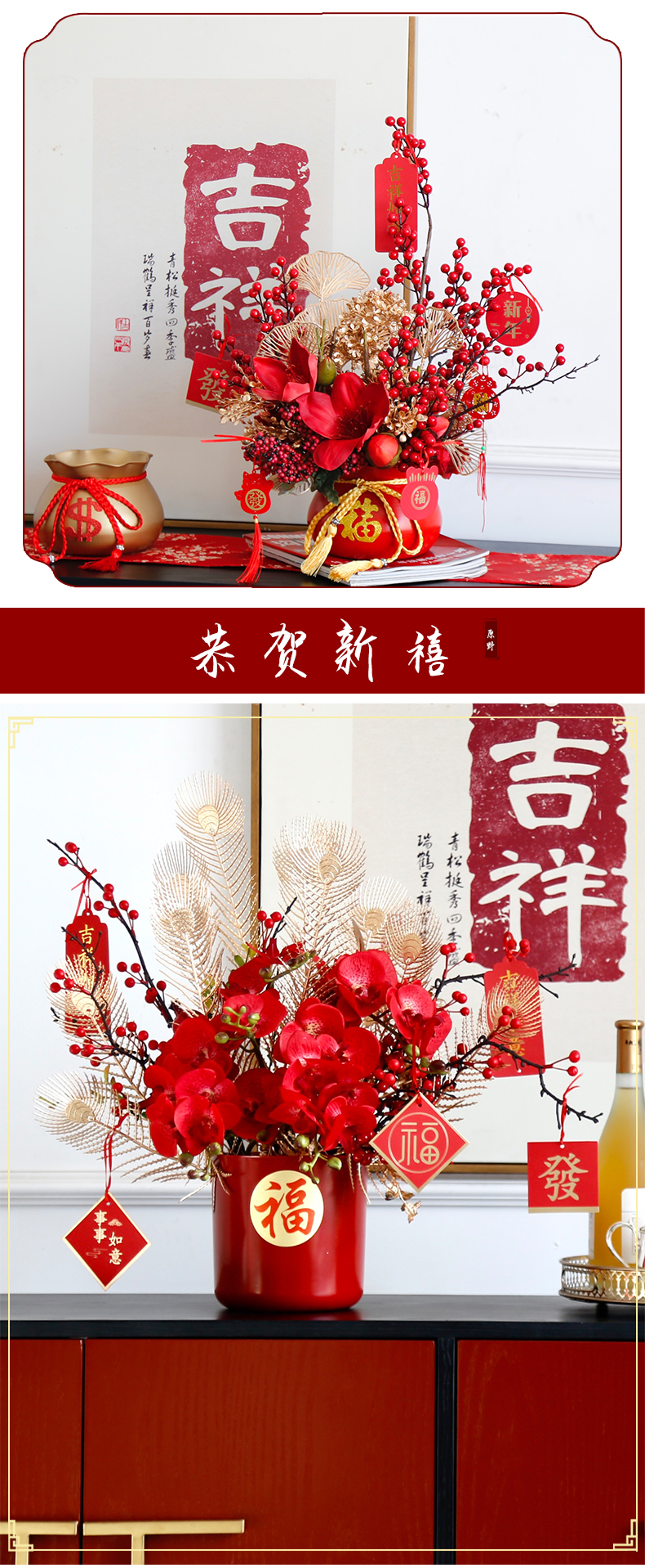 红色发财果仿真花福桶摆件客厅开业乔迁新居高档新房年宵花装饰品