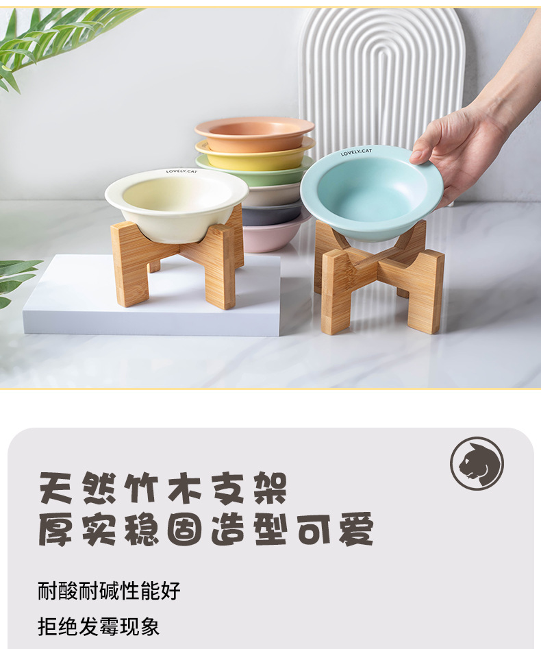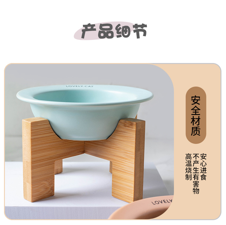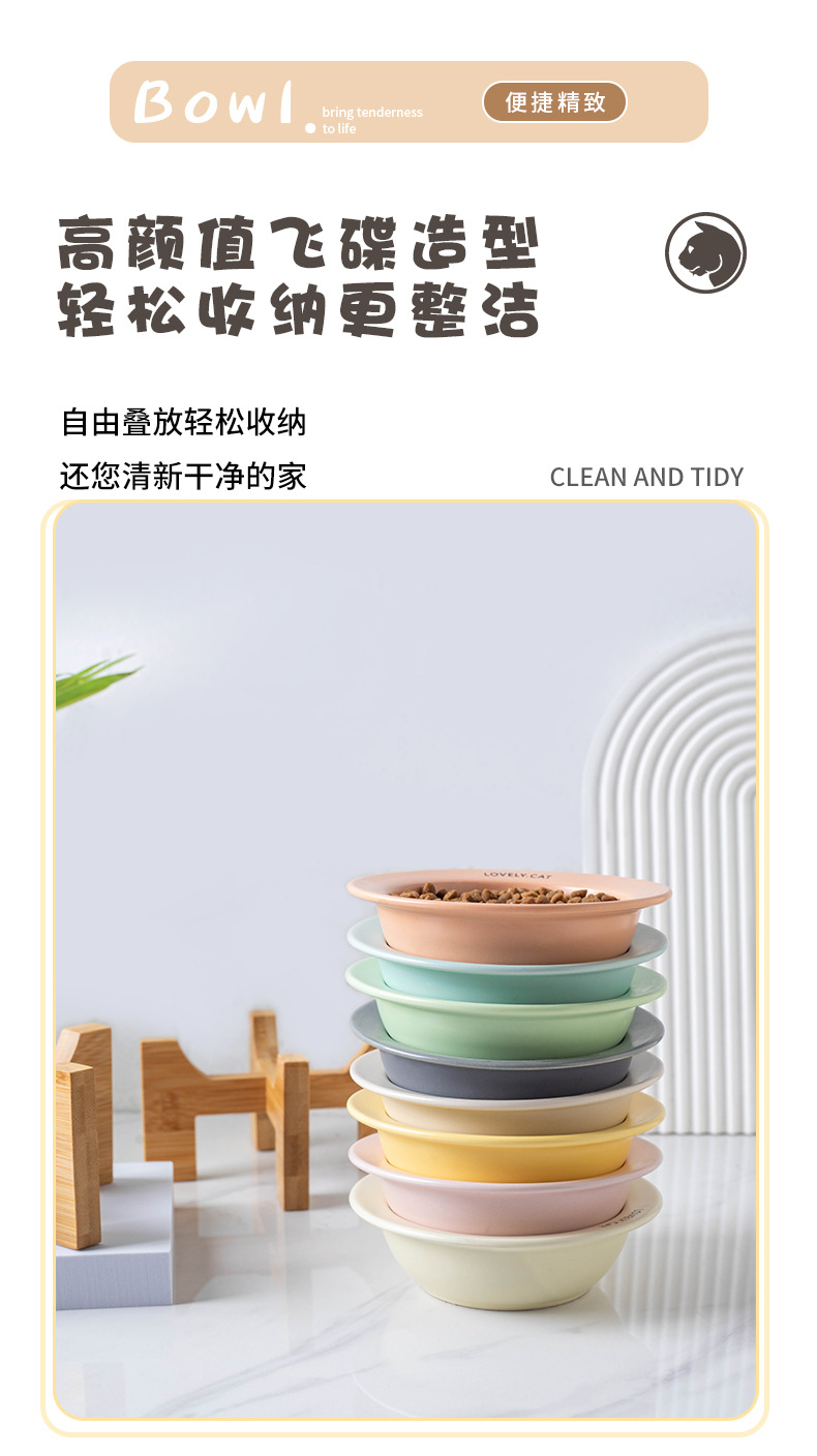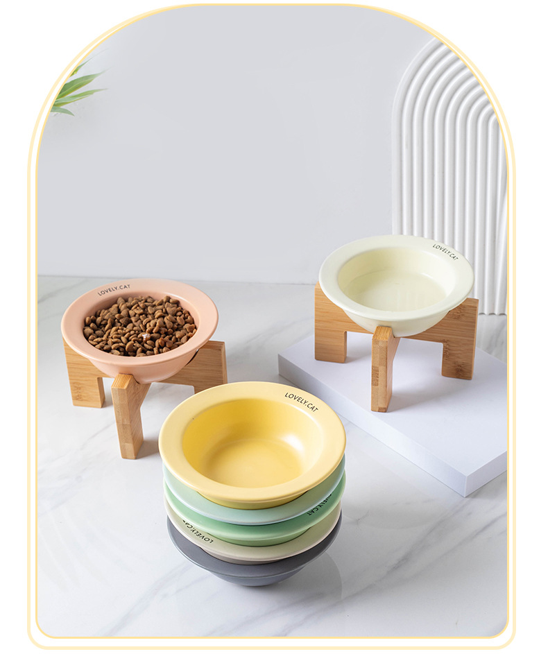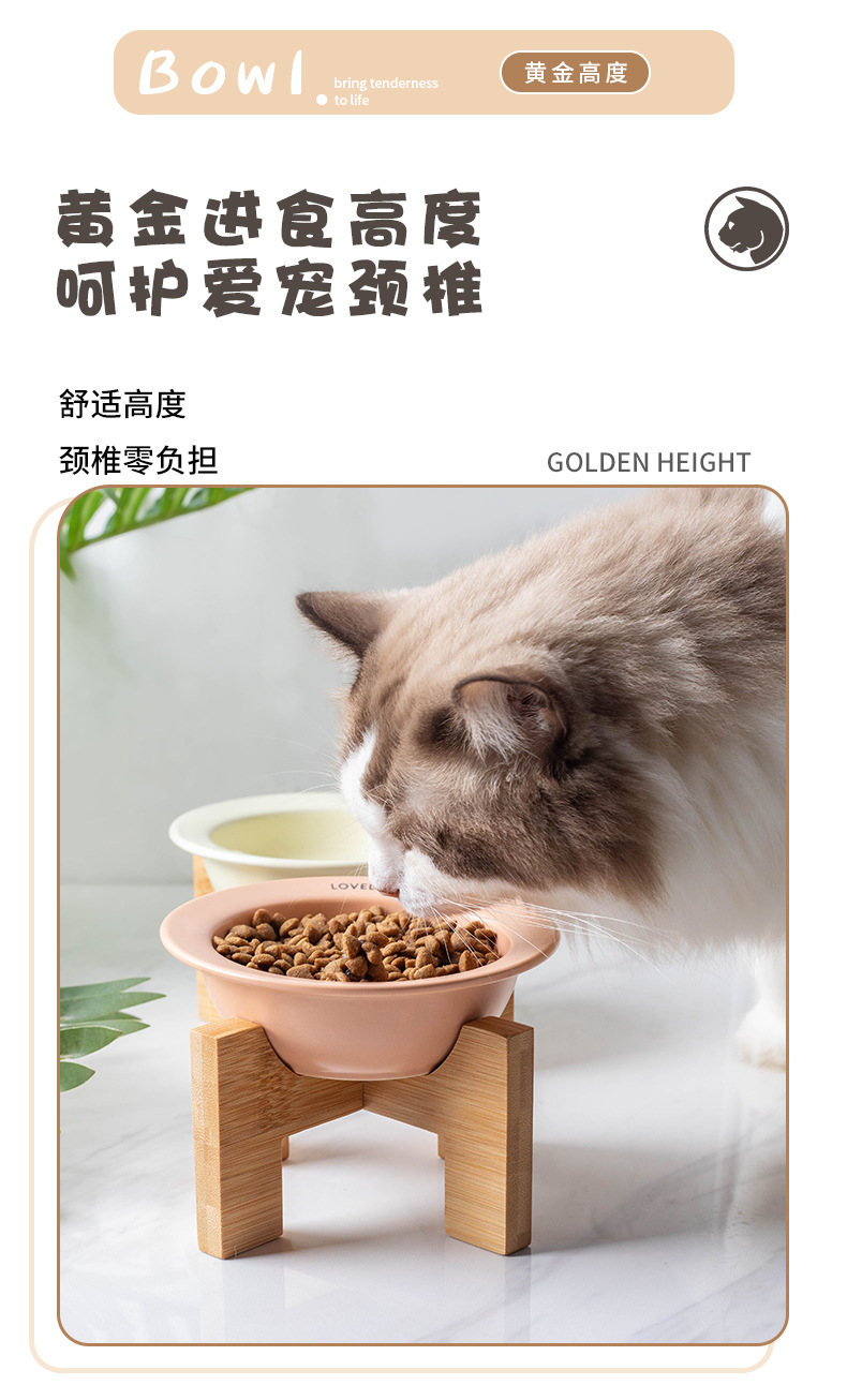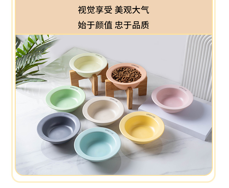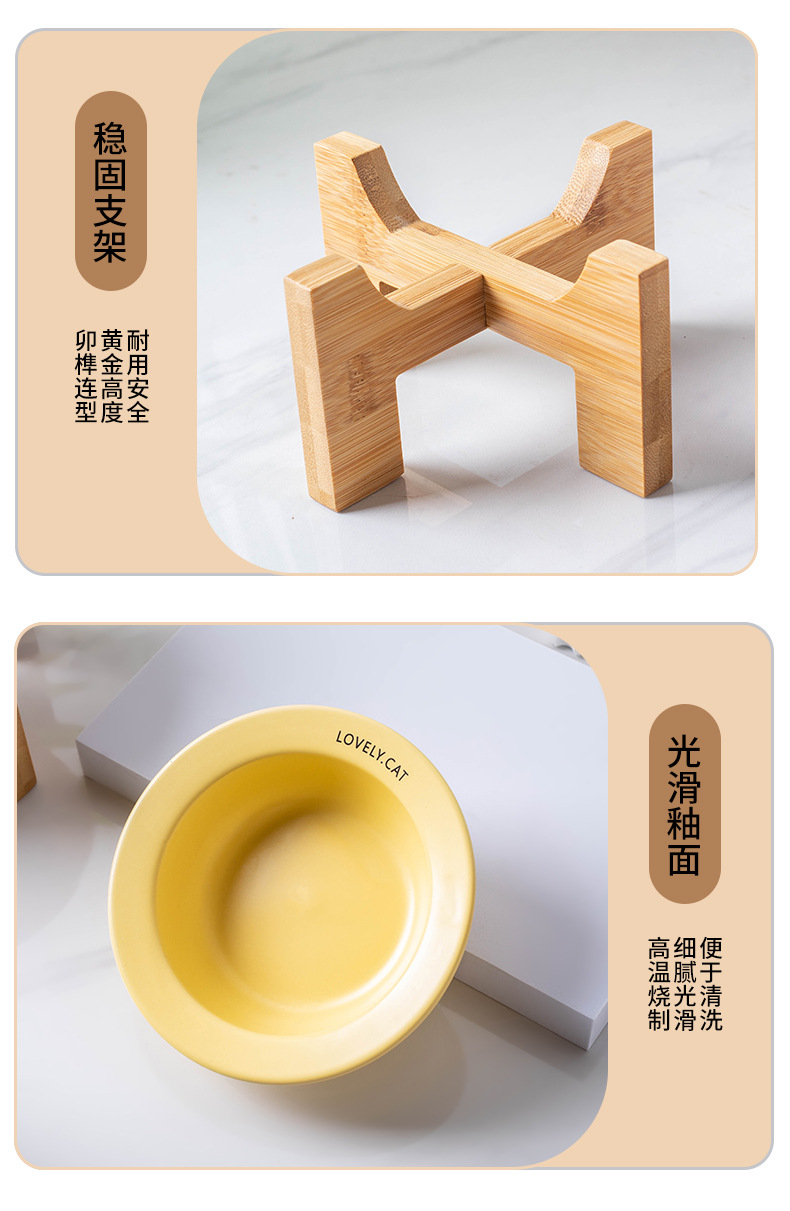 严选【黄色bd飞碟木架陶瓷猫碗】餐食碗宠物猫碗保护颈椎斜口猫饭碗宠物水碗狗狗碗1个