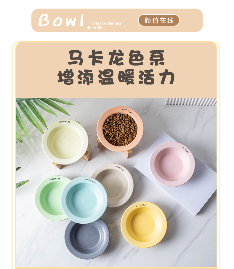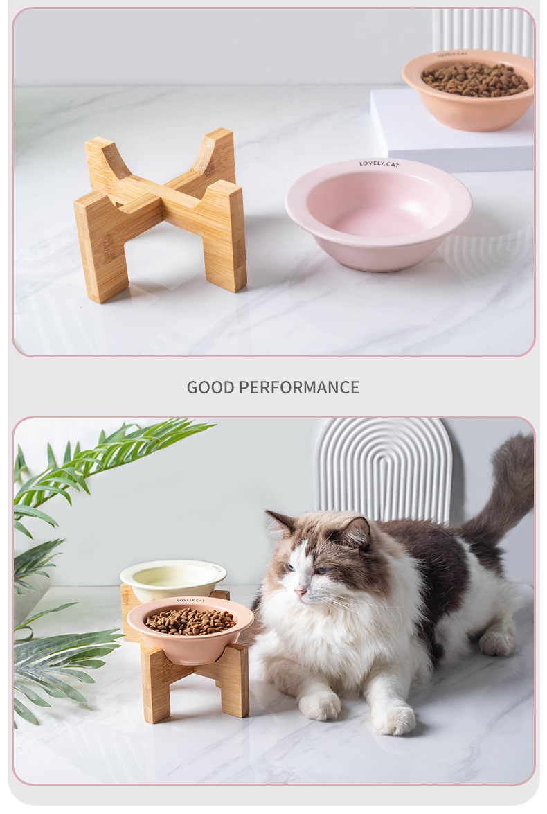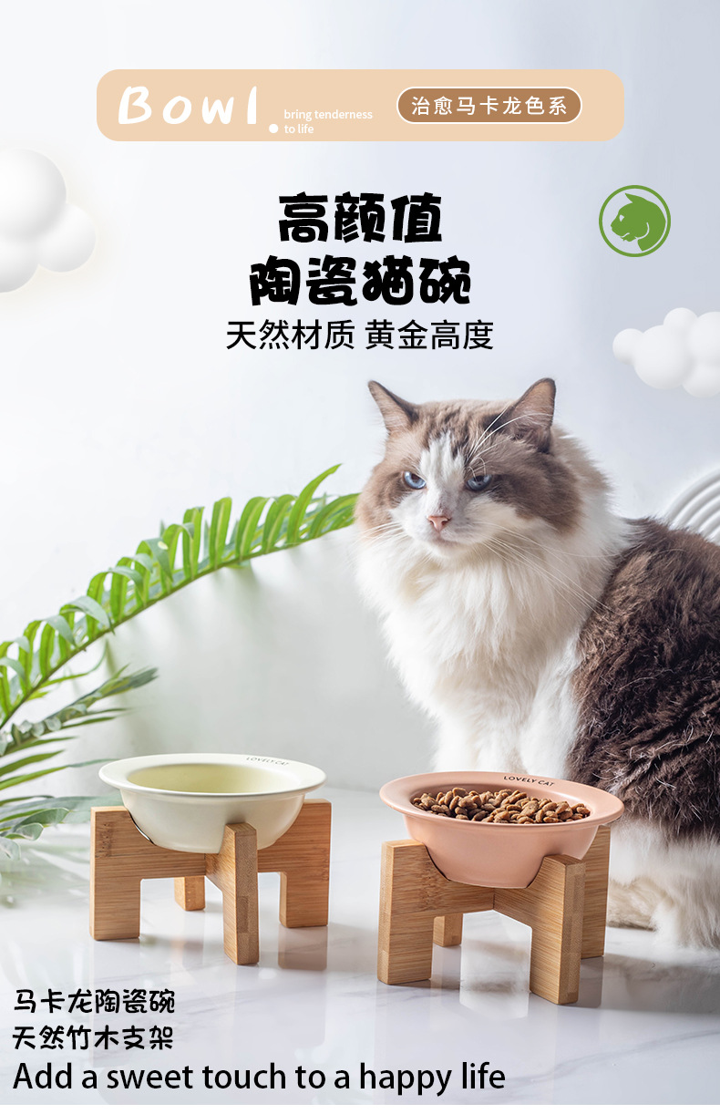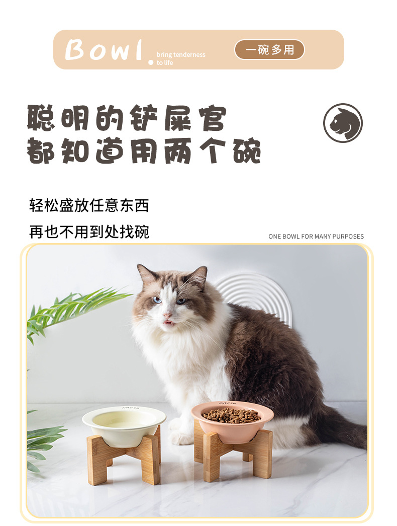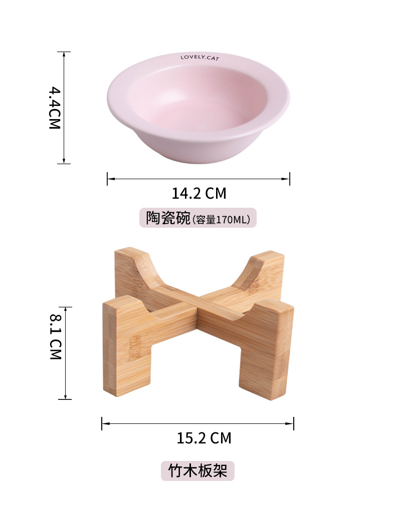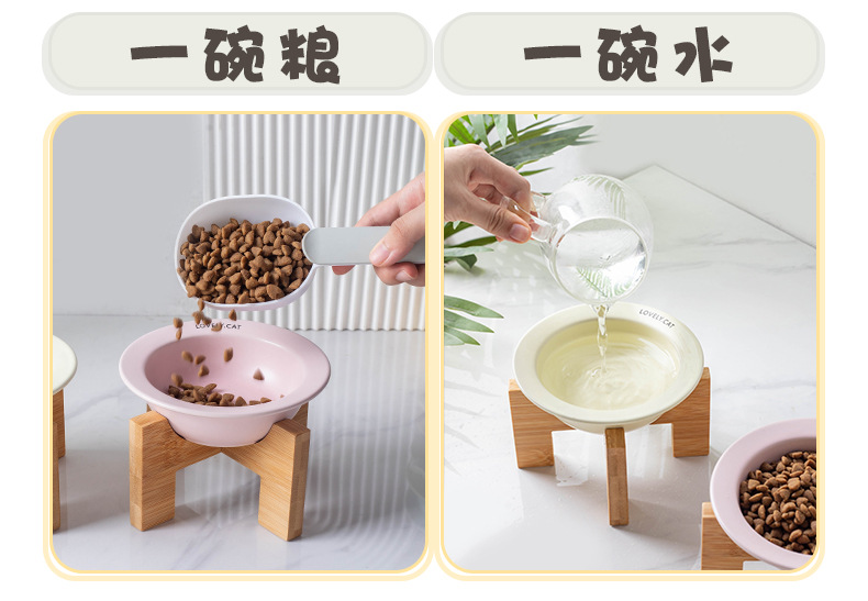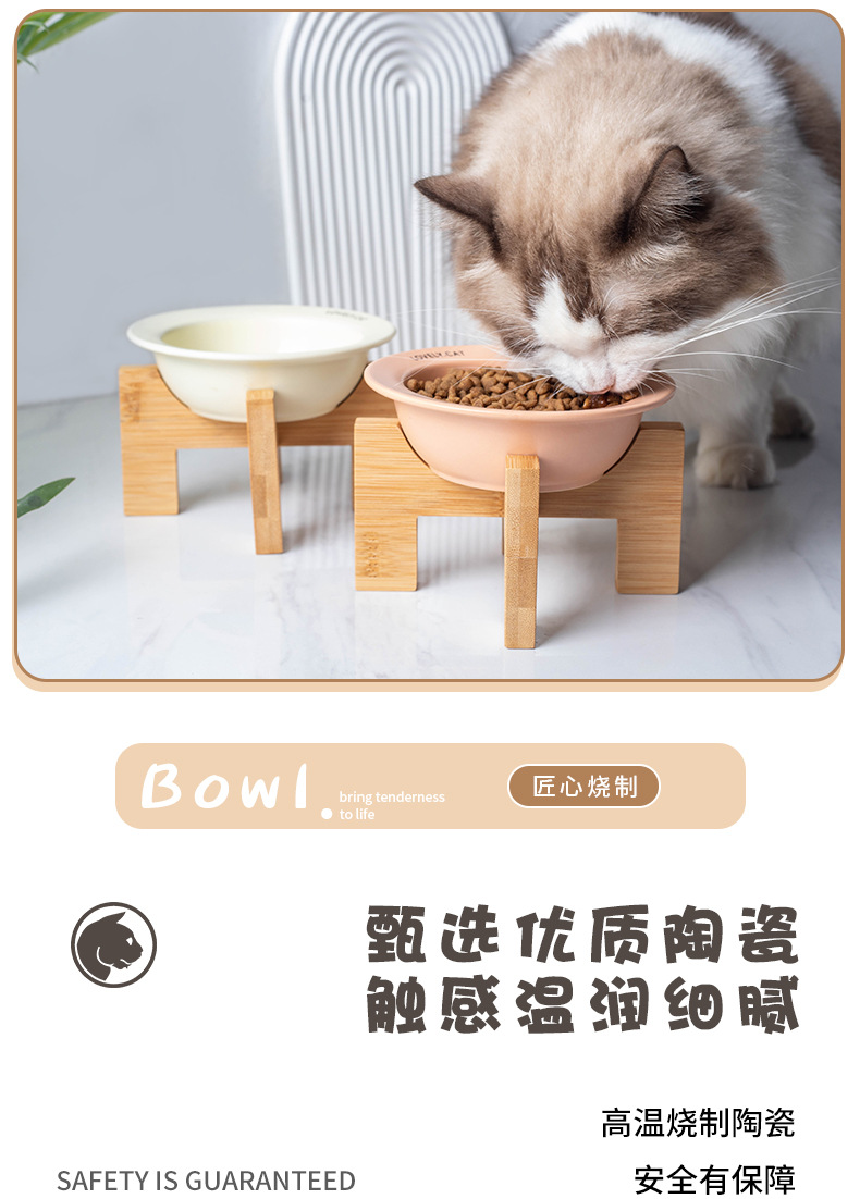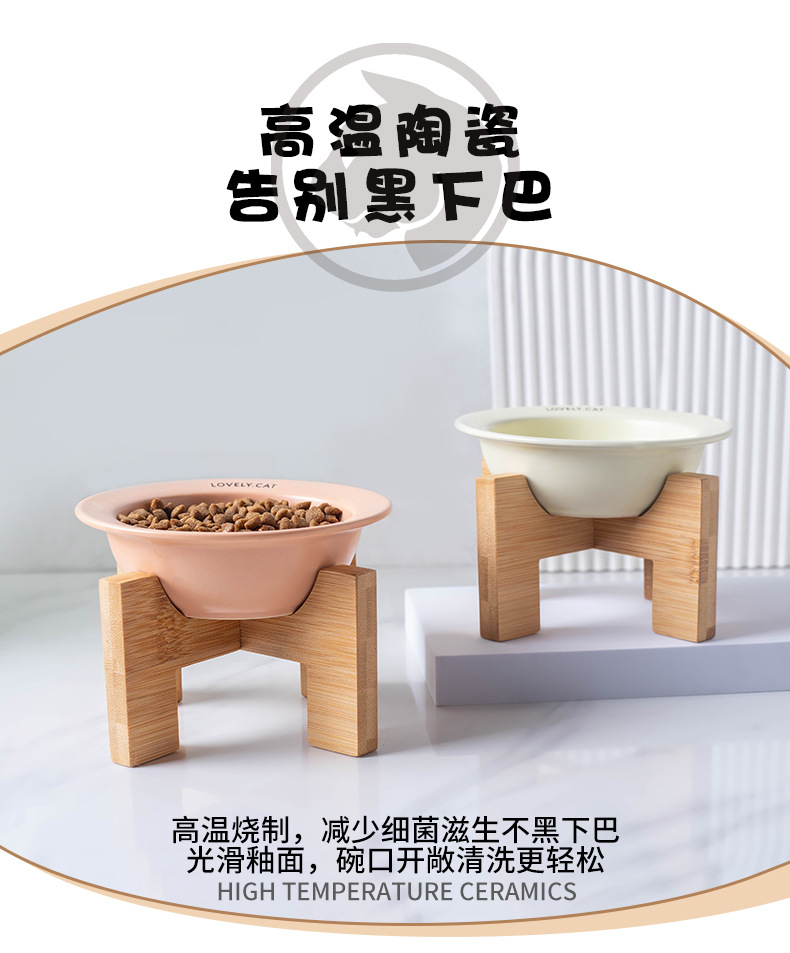 严选【黄色bd飞碟木架陶瓷猫碗】餐食碗宠物猫碗保护颈椎斜口猫饭碗宠物水碗狗狗碗1个