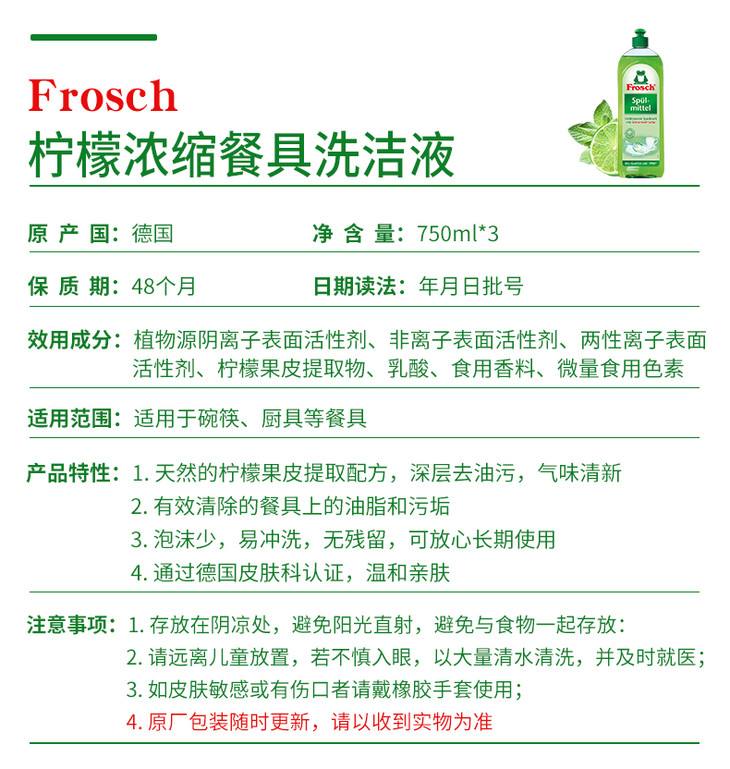 Frosch高效浓缩洗碗液(柠檬) 易好