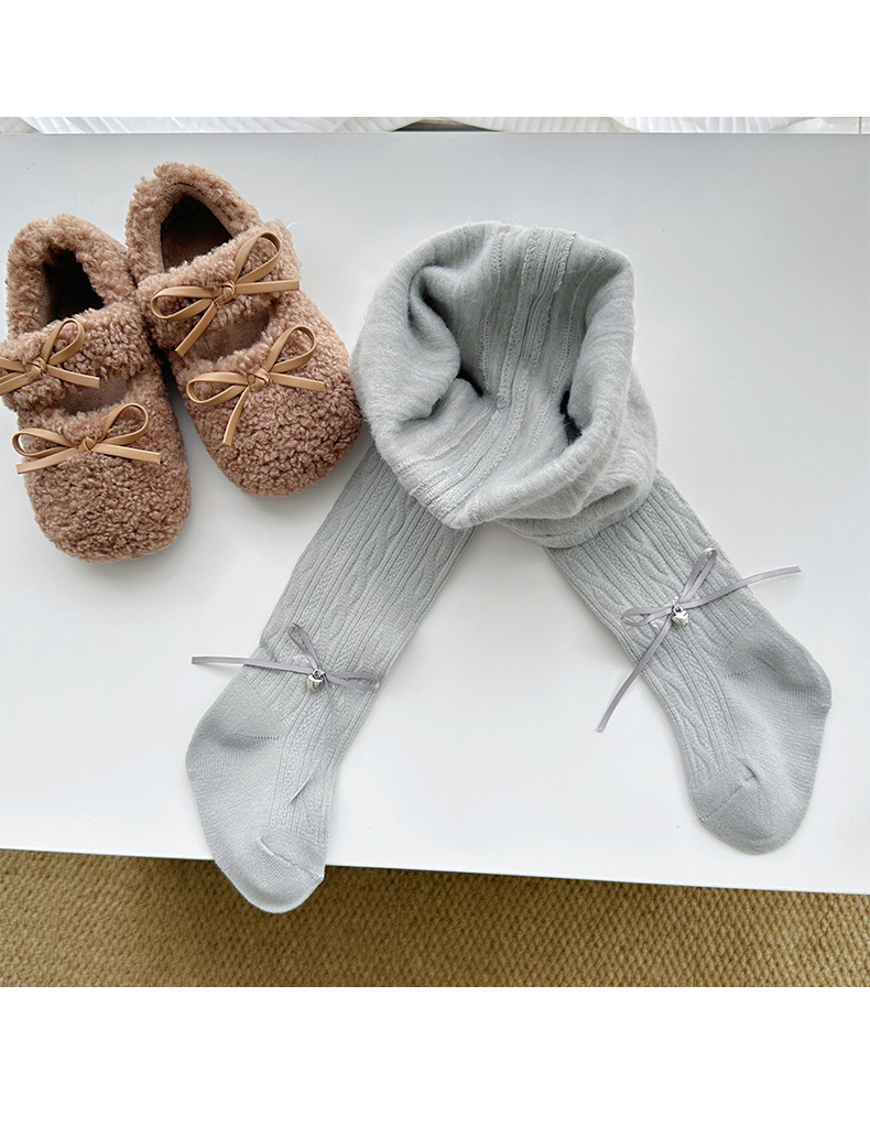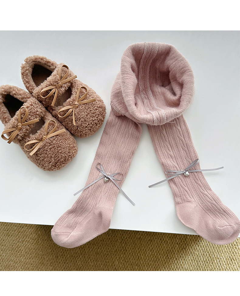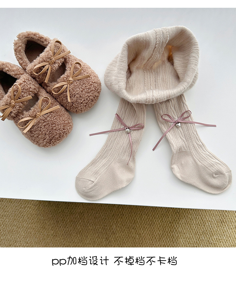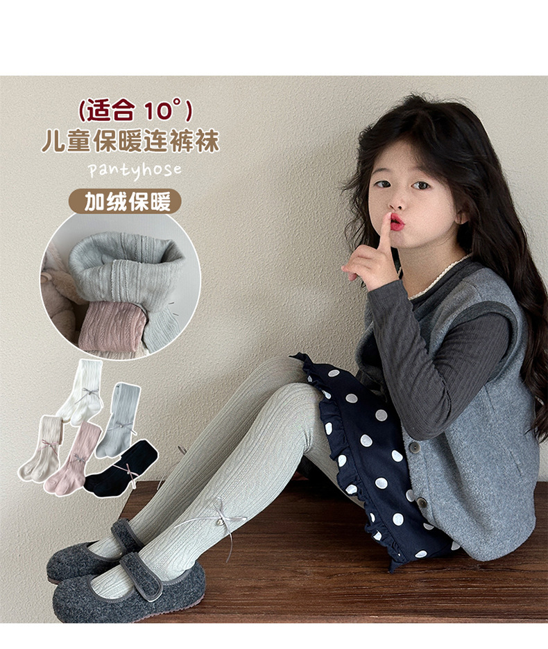 保暖加绒~儿童连裤袜秋冬薄绒蝴蝶结女童打底裤甜美外穿磨绒裤80-140cm