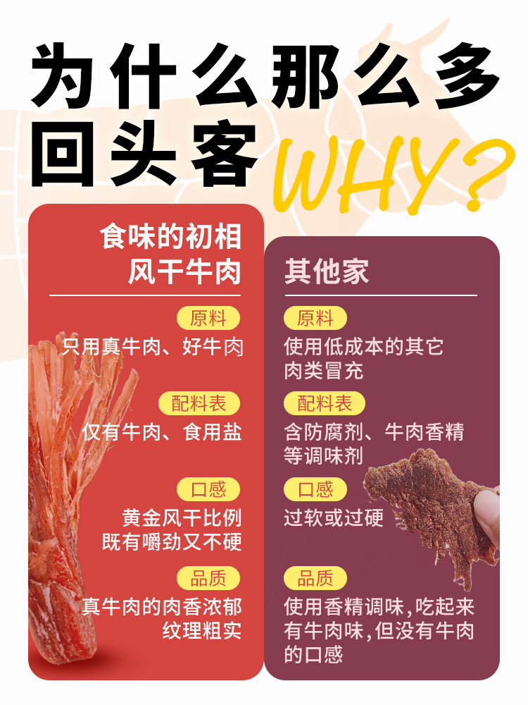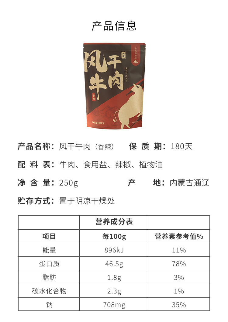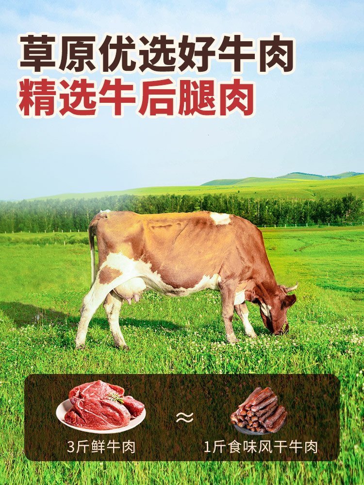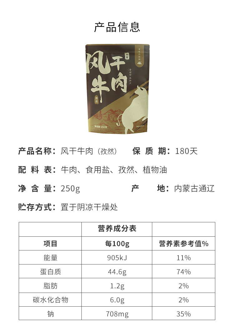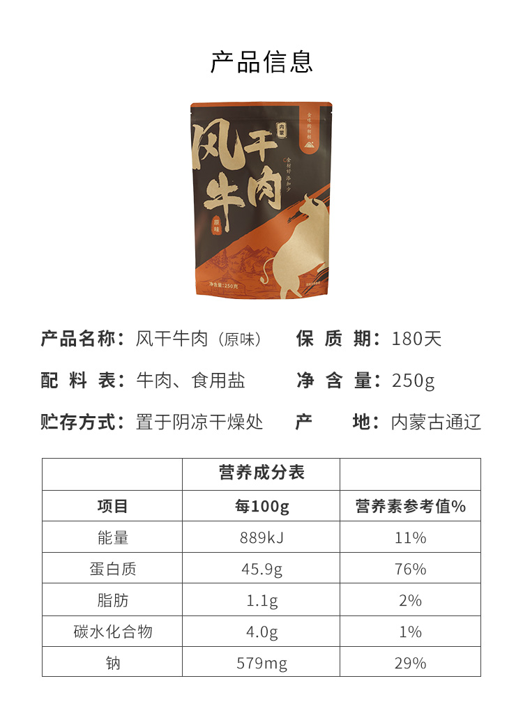 食味的初相*内蒙古风干牛肉250g*1袋/2袋 0添加剂 0色素 原味、孜然、辣味 三种口味可选