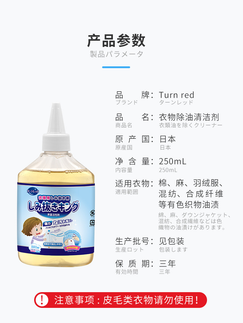 【轻松去油渍 强劲去污不留痕】turn red衣物去油剂去污渍衣服去油渍神器去油王去油印去除顽固油渍清洁剂