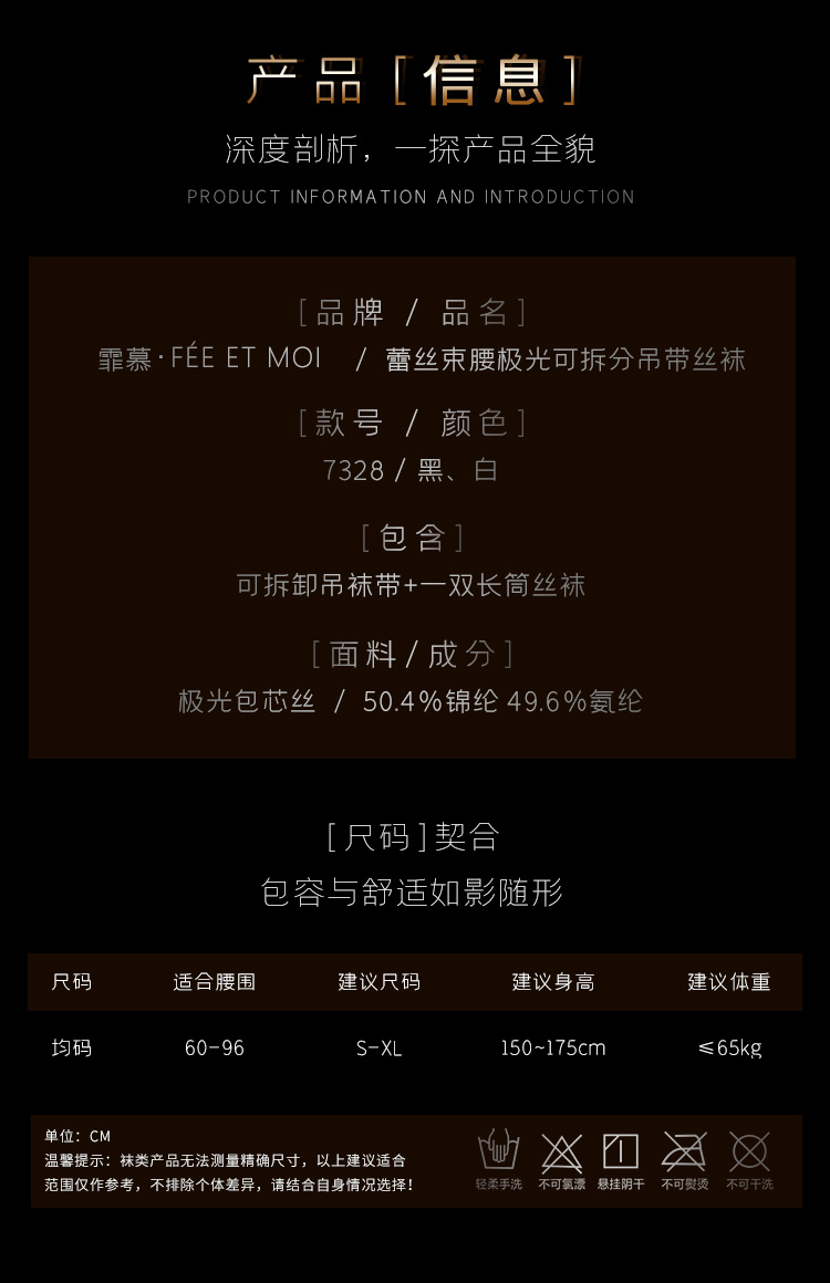 霏慕 蕾丝束腰极光可拆分吊带丝袜7328