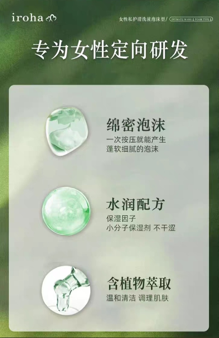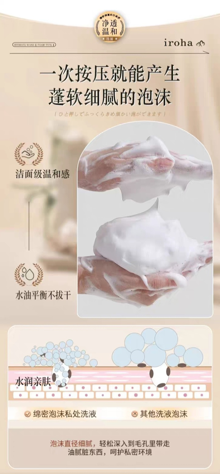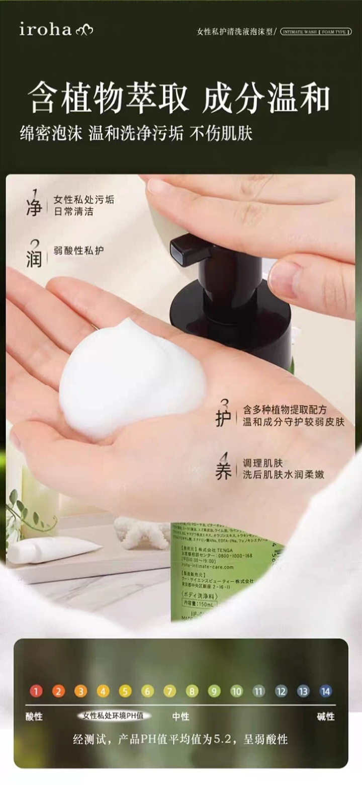 日本进口iroha私处洗护液女抑菌去异味 女士私处弱酸护理液护理液泡沫型