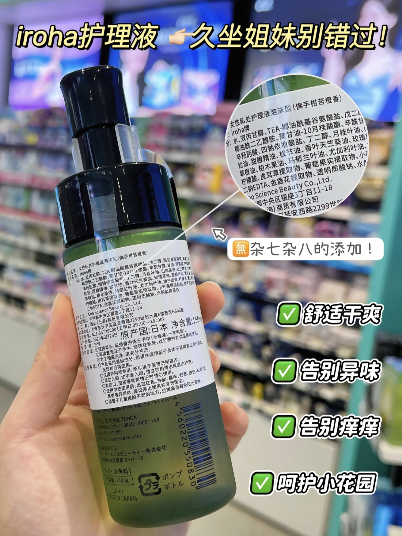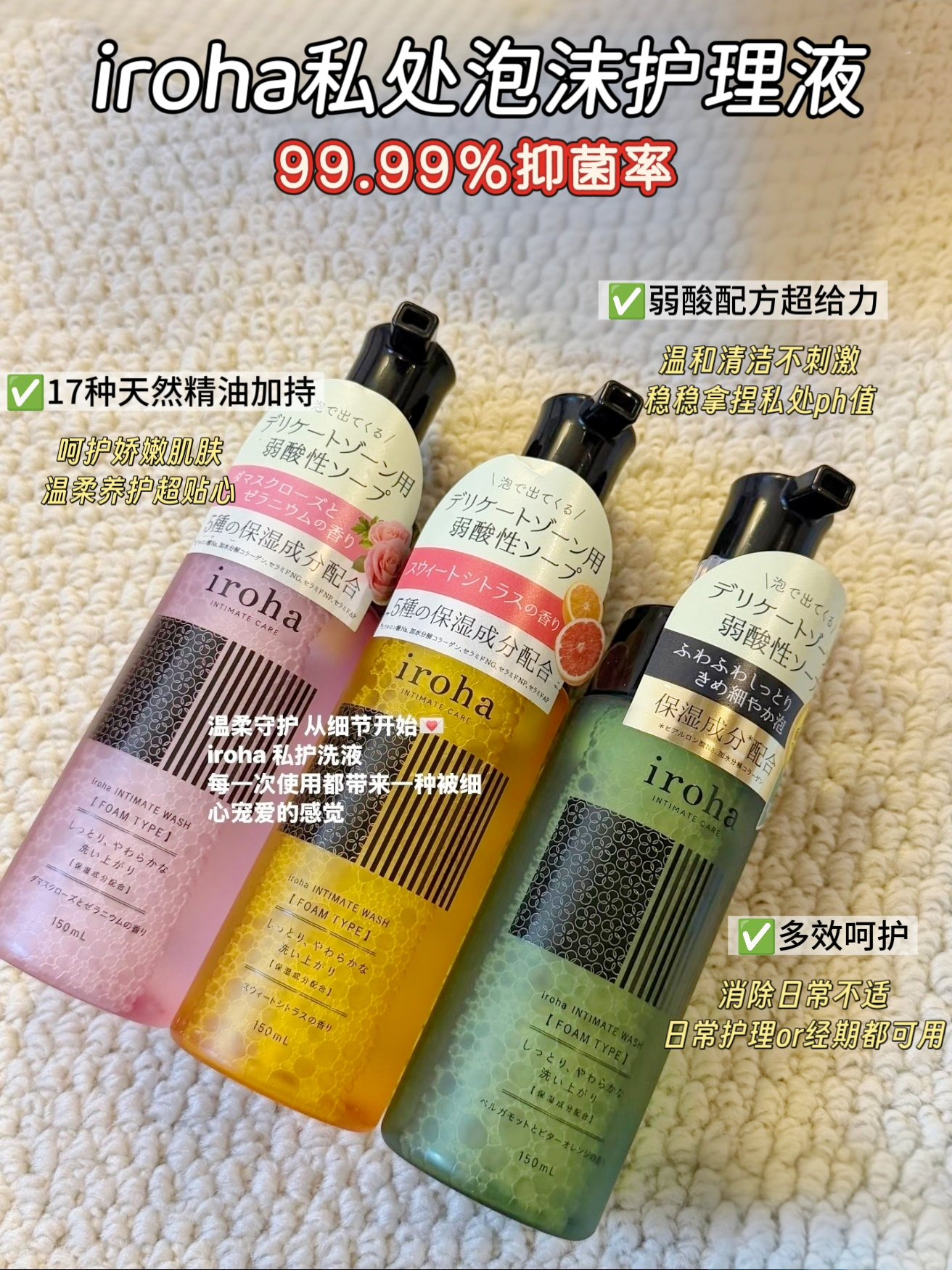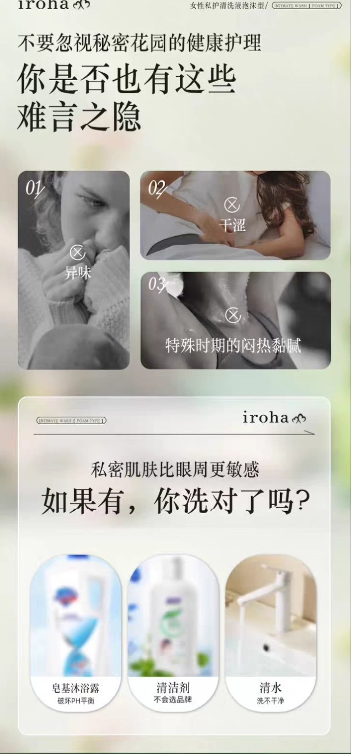 日本进口iroha私处洗护液女抑菌去异味 女士私处弱酸护理液护理液泡沫型