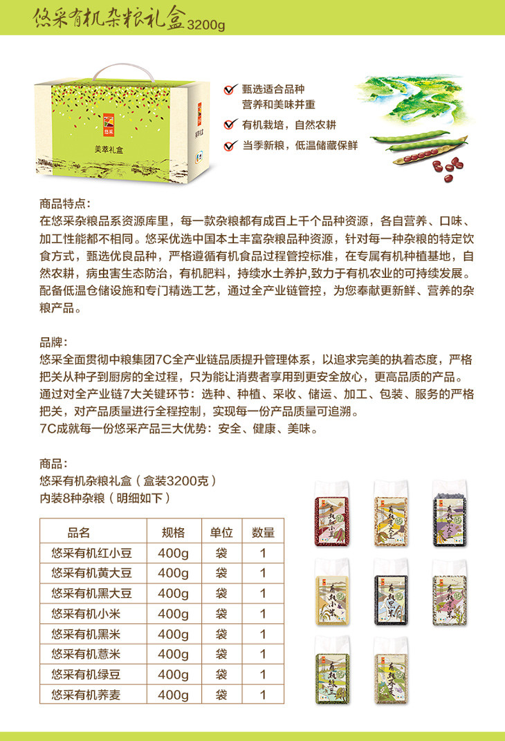 【品牌直发】中粮悠采 有机杂粮礼盒 3200g