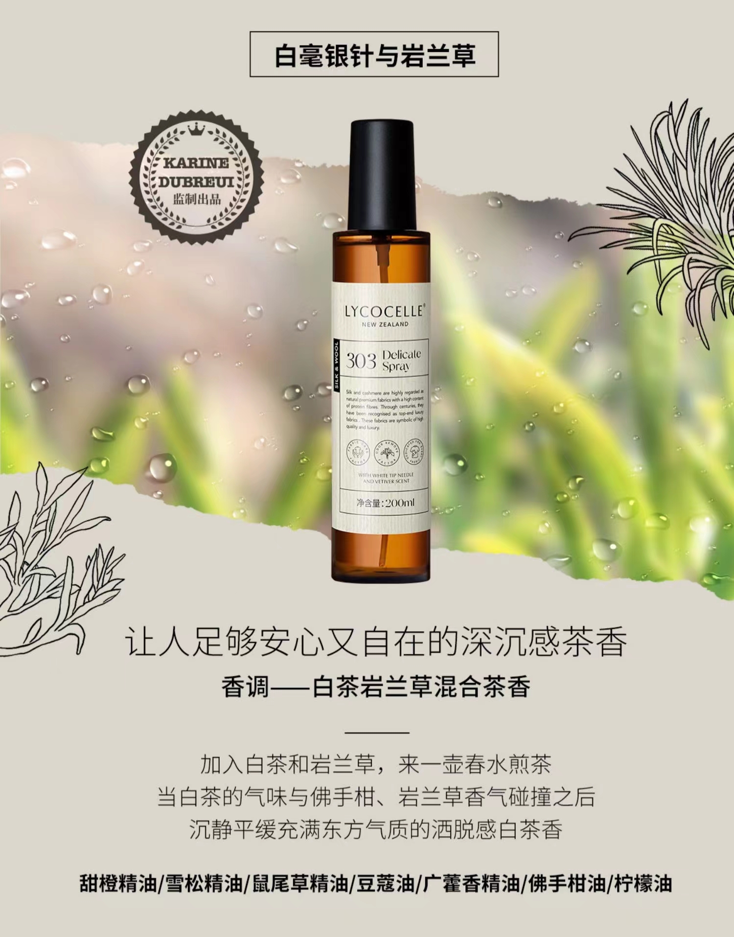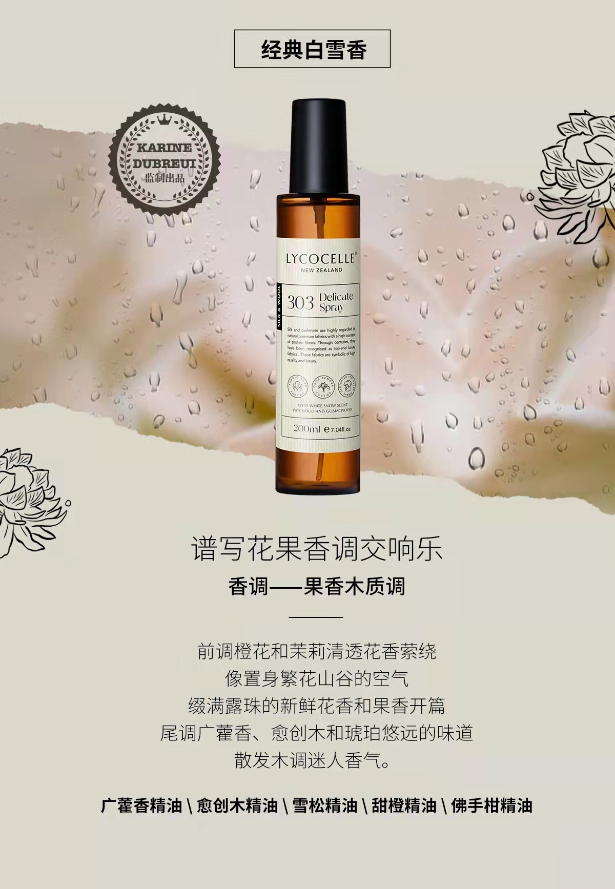 【拍2瓶,即赠110ml中样1瓶,味道随机】新西兰LYCOCELLE绽家 除臭、除味、除菌、除螨植萃香氛护衣喷雾200ml|品牌直发