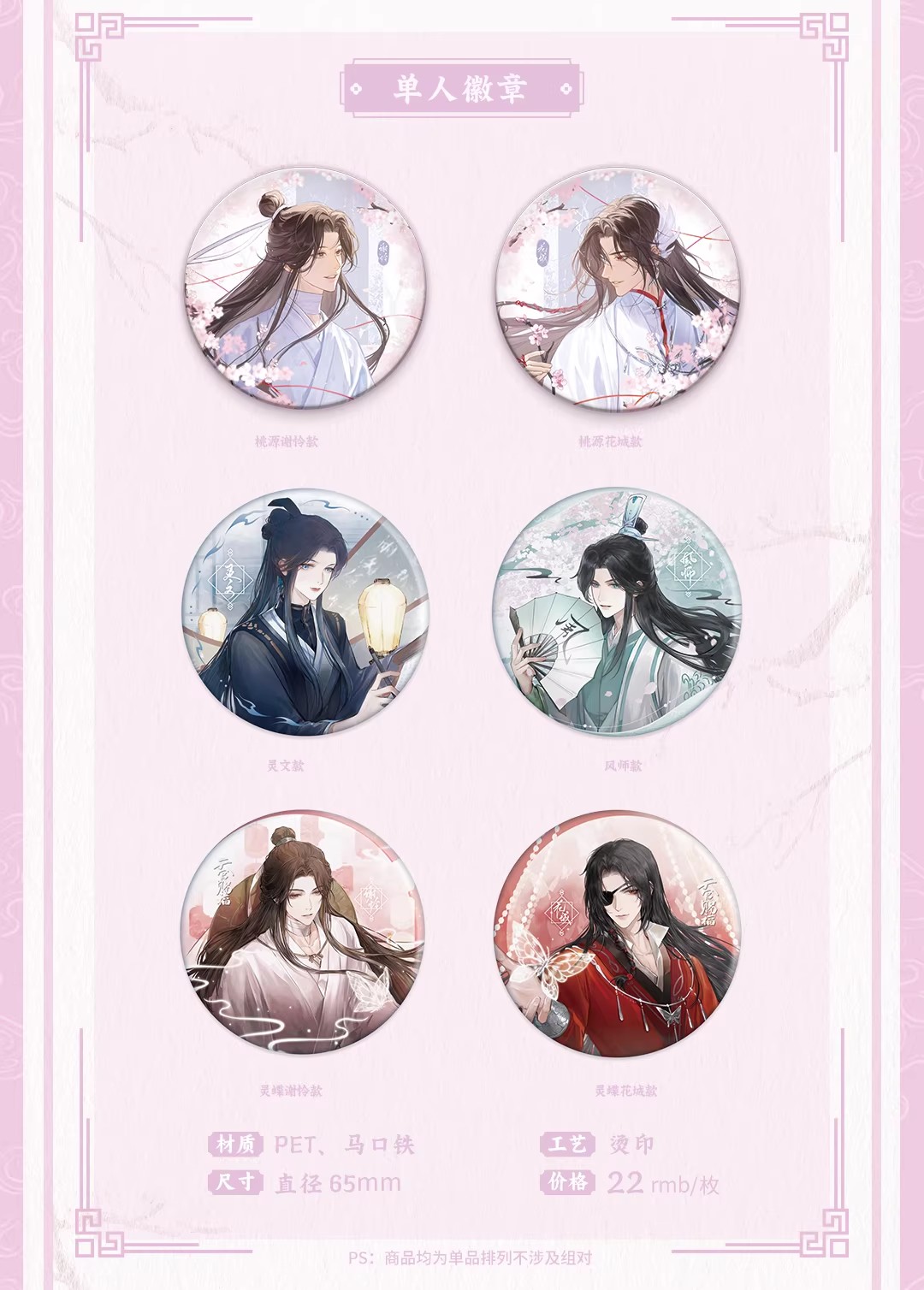 天官赐福 心在桃源系列 徽章 吧唧 国谷 耽美
