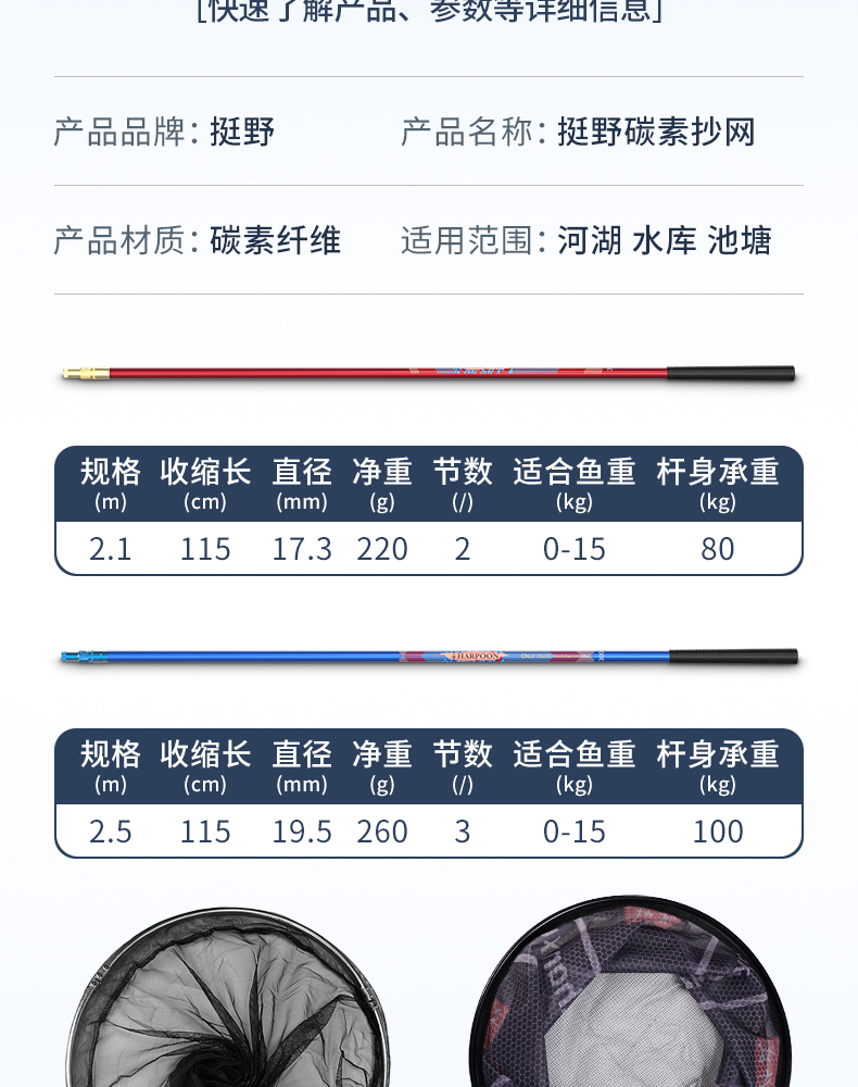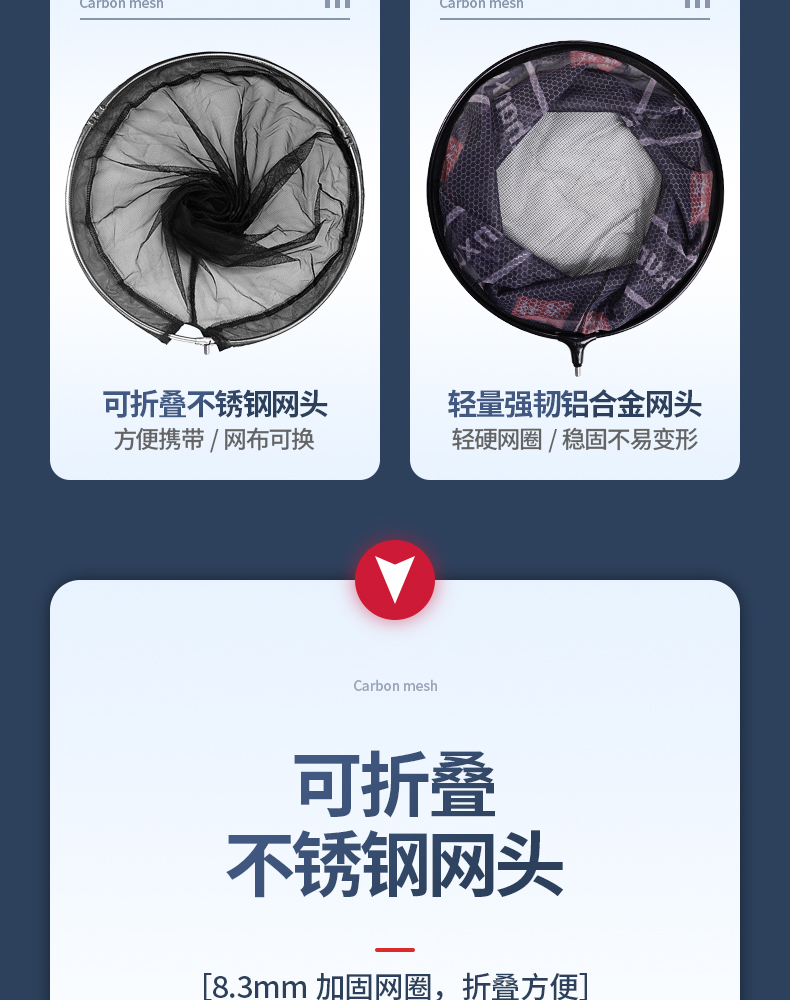 抄网竿碳素轻硬钓鱼网抄折叠伸缩野钓大物捞鱼网兜抄网杆套装 dyl21