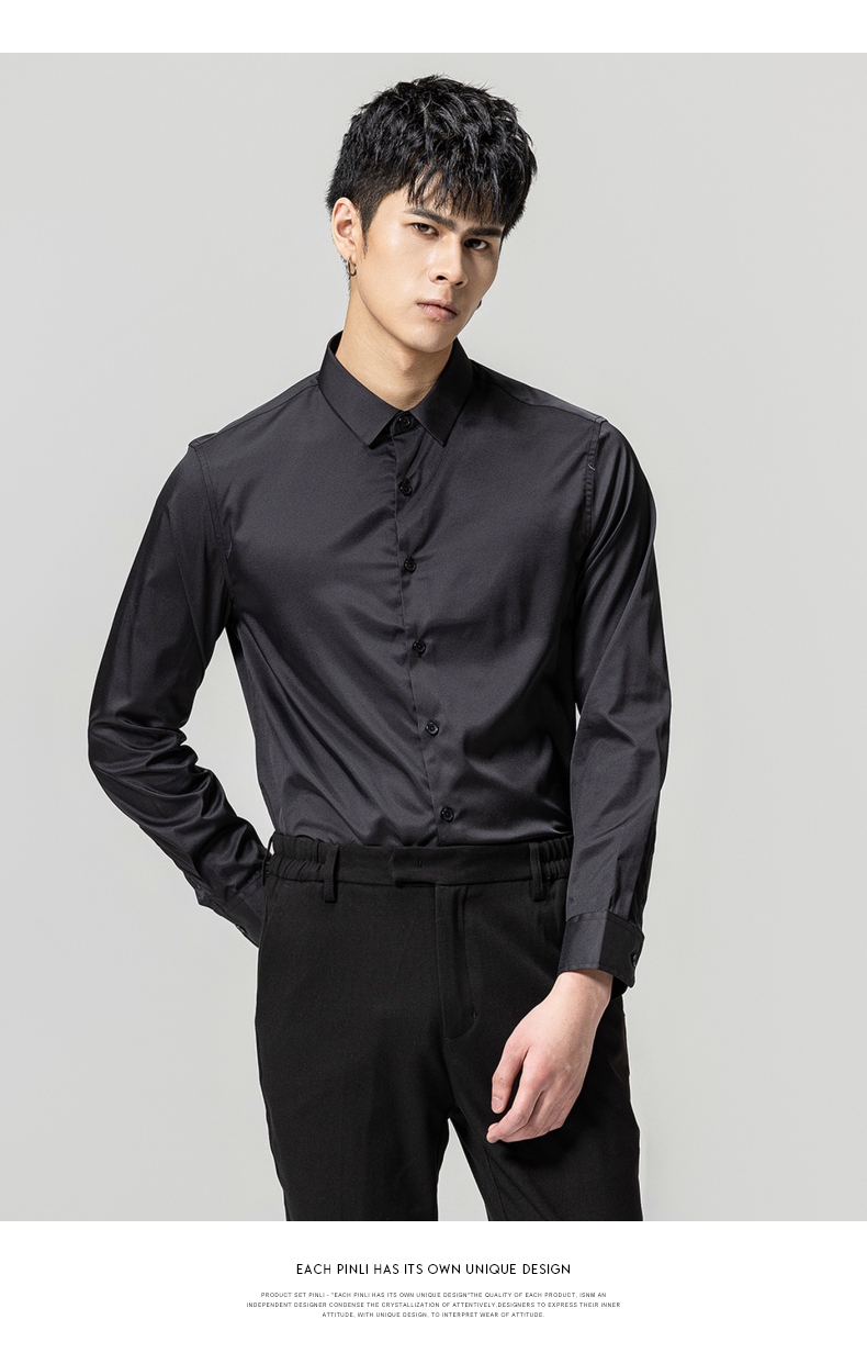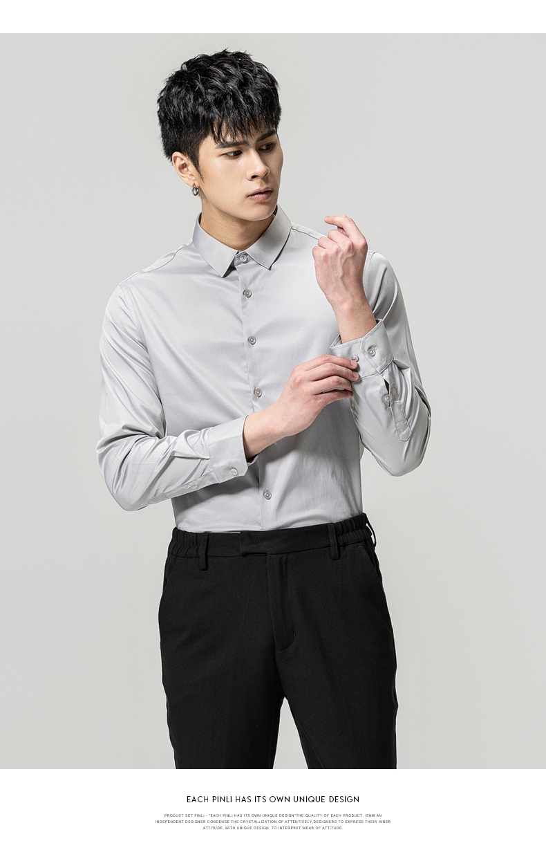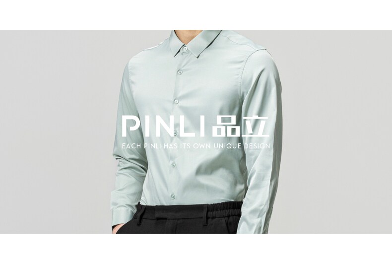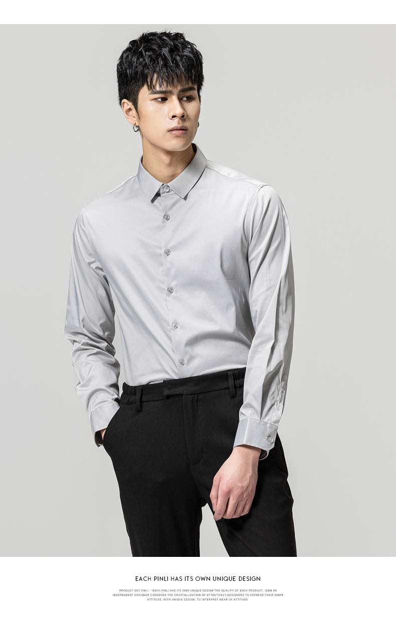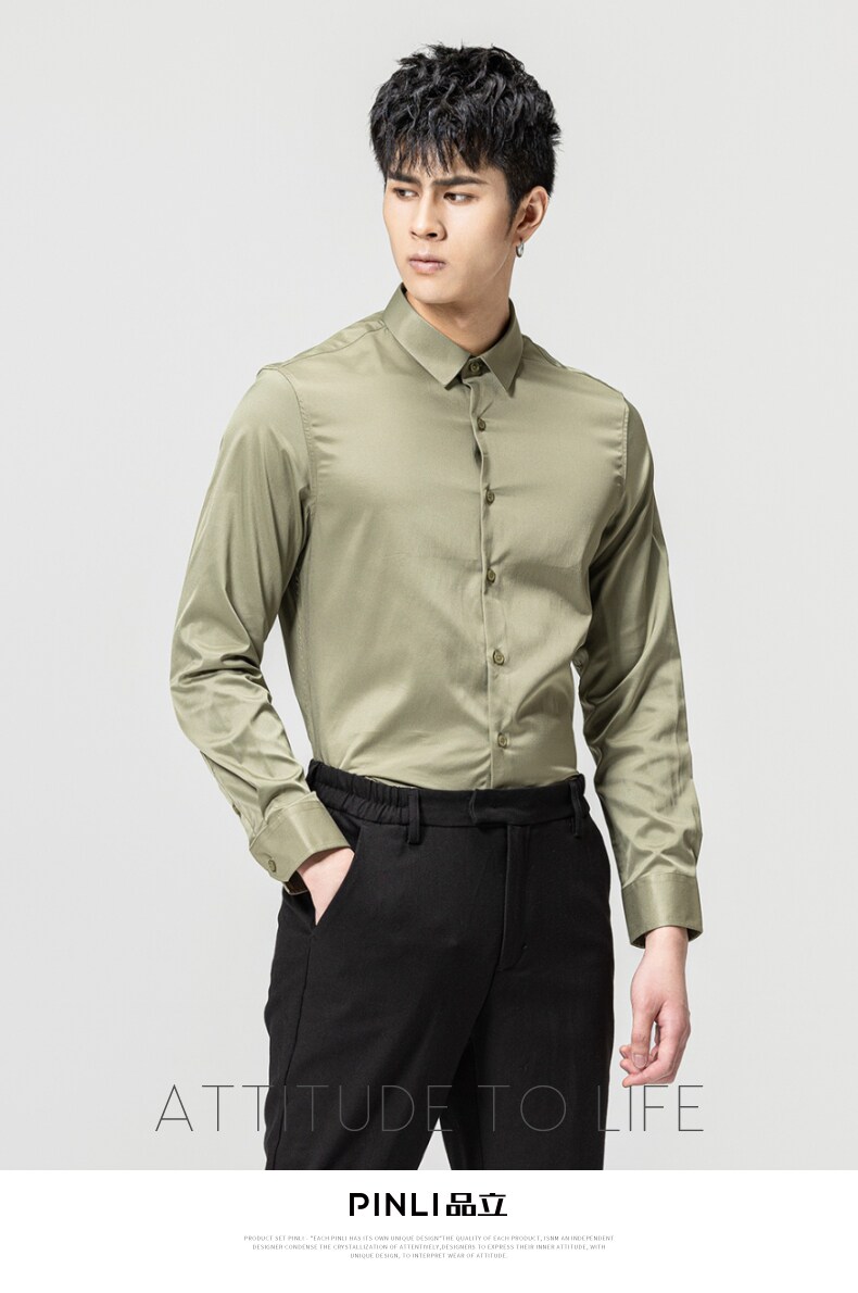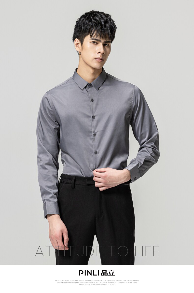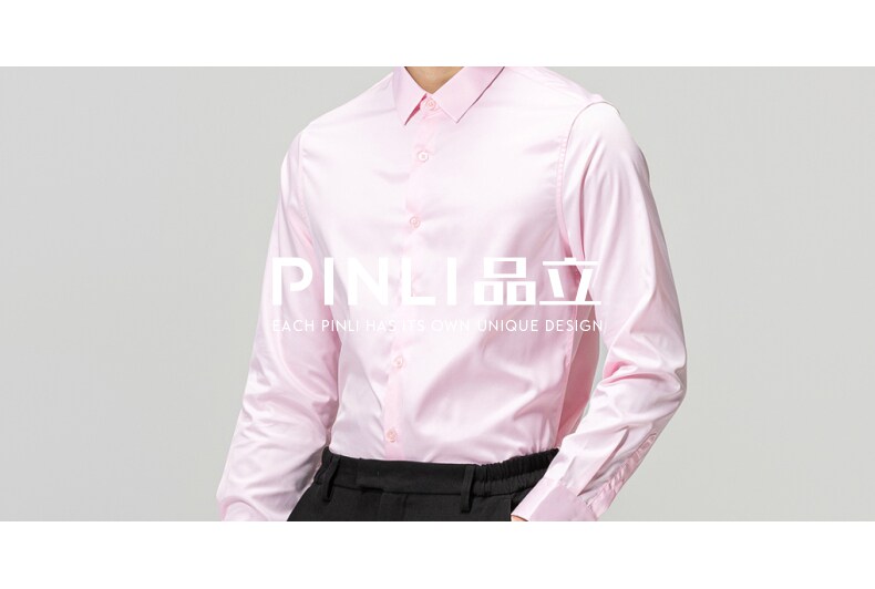 【福利款】PINLI品立秋冬新款男修身商务衬衫纯色休闲长袖衬衣潮GD223413482