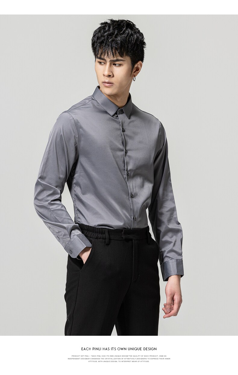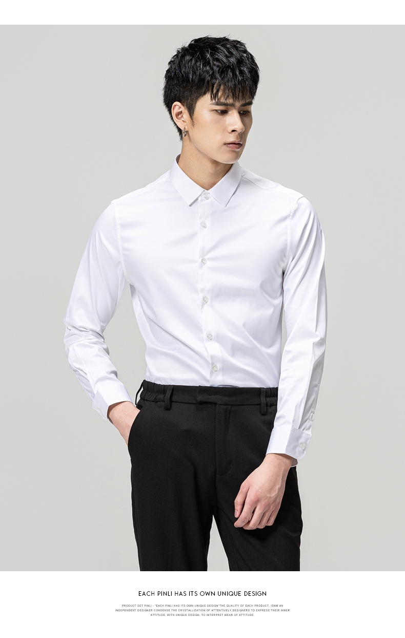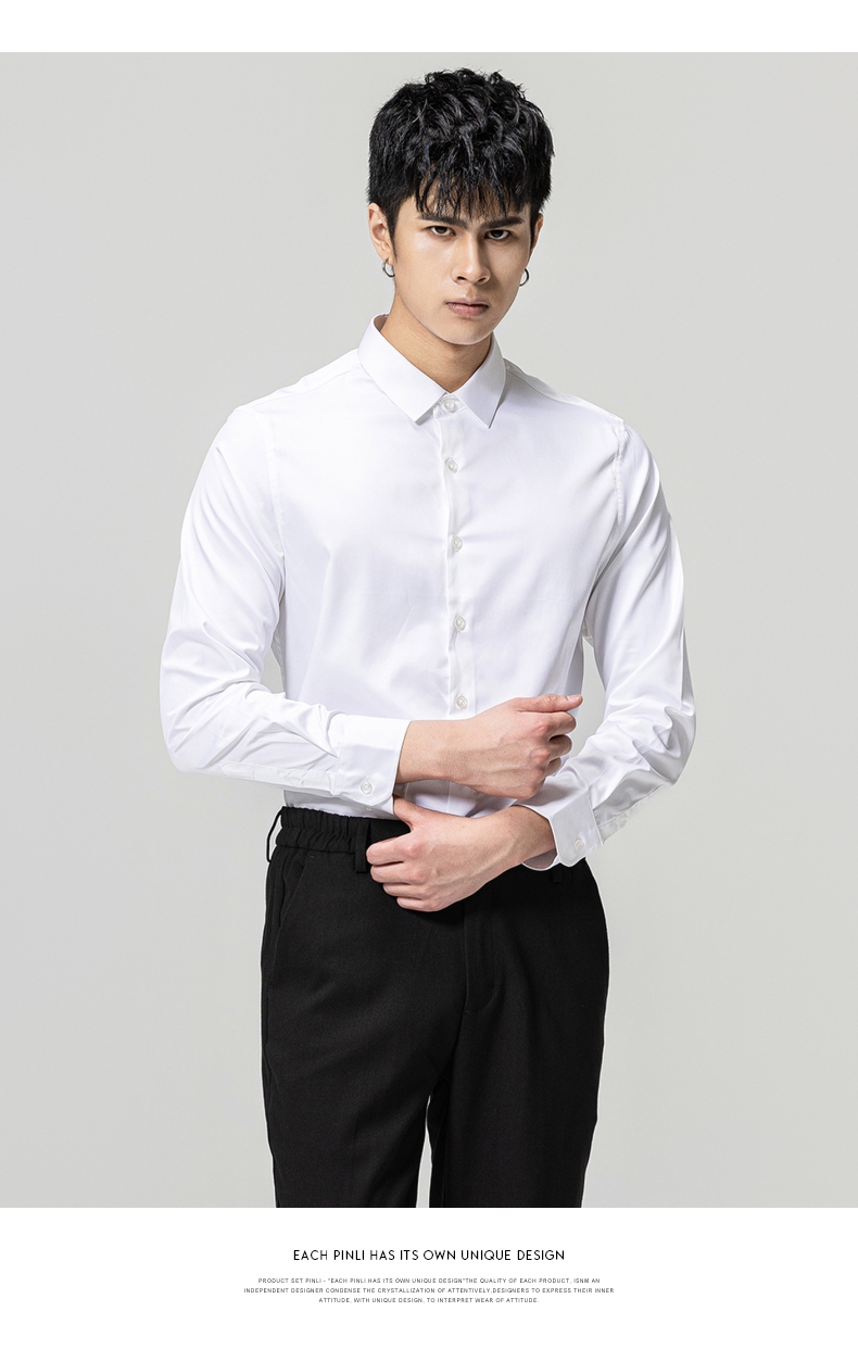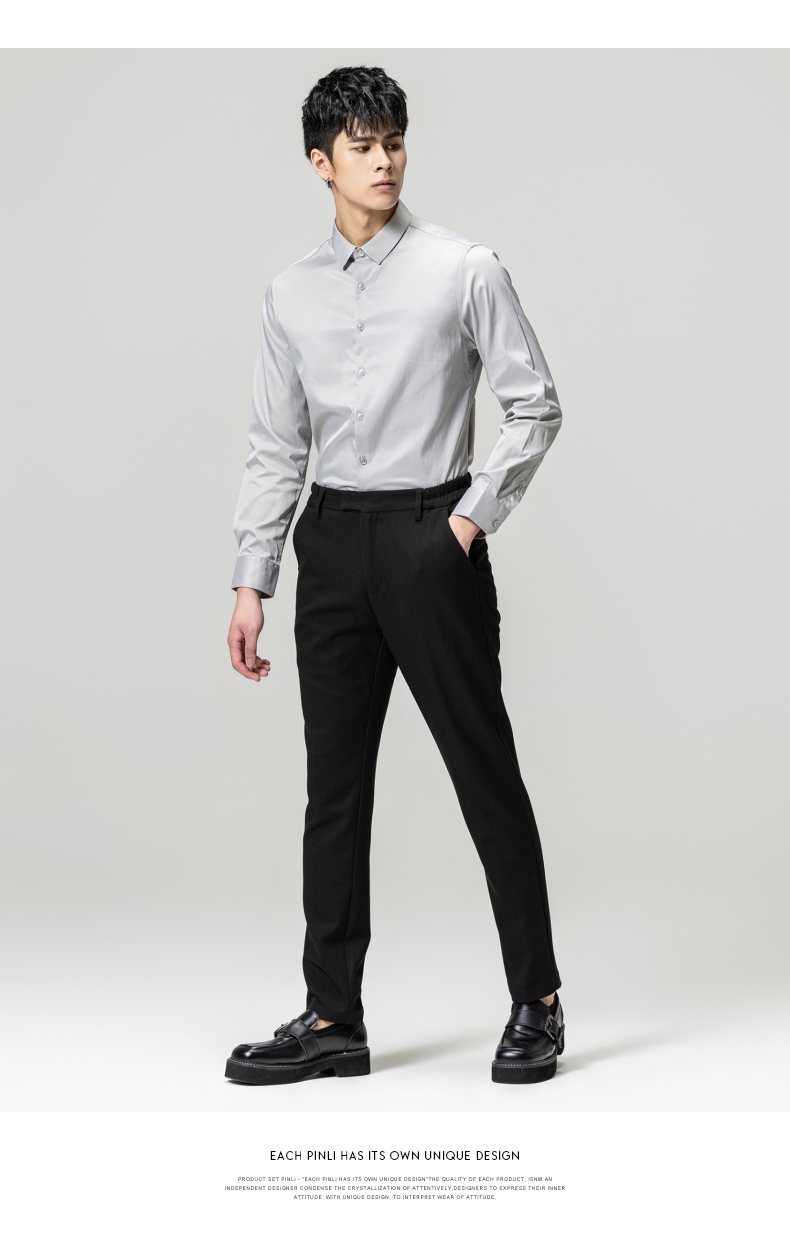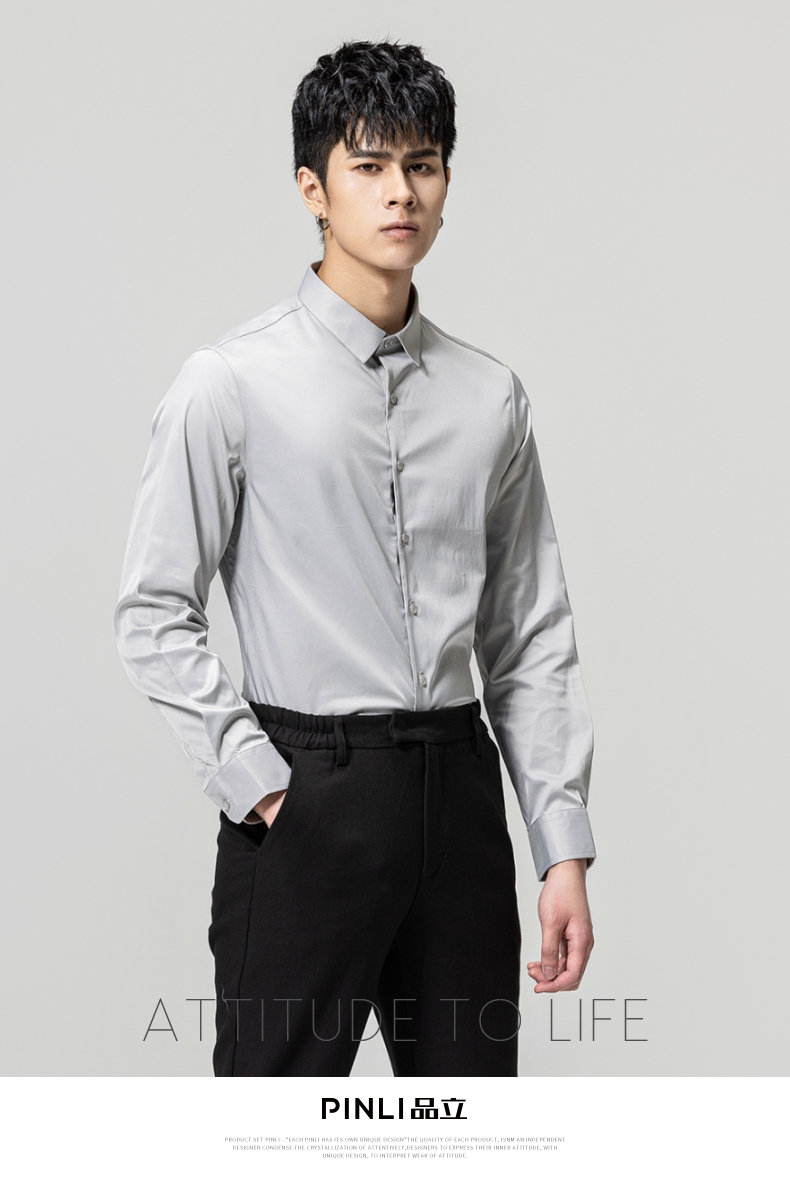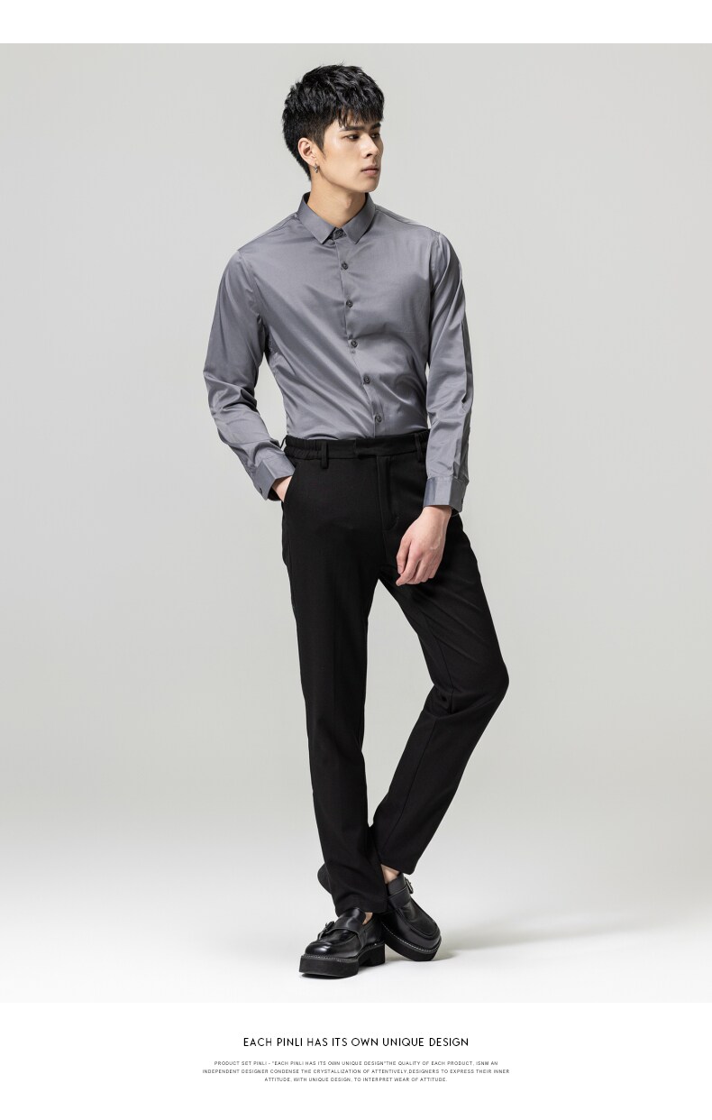 【福利款】PINLI品立秋冬新款男修身商务衬衫纯色休闲长袖衬衣潮GD223413482