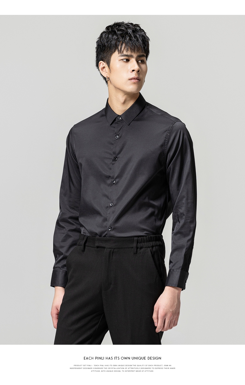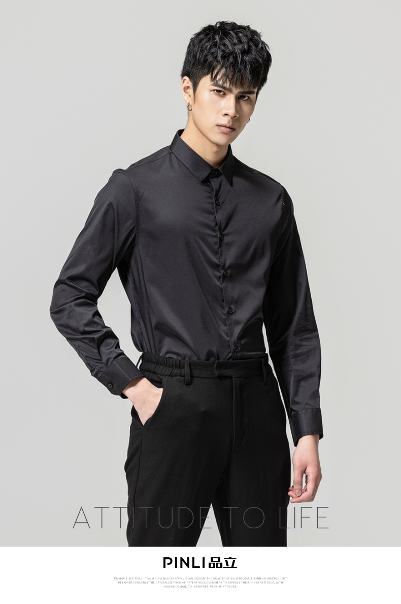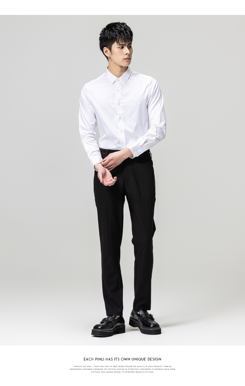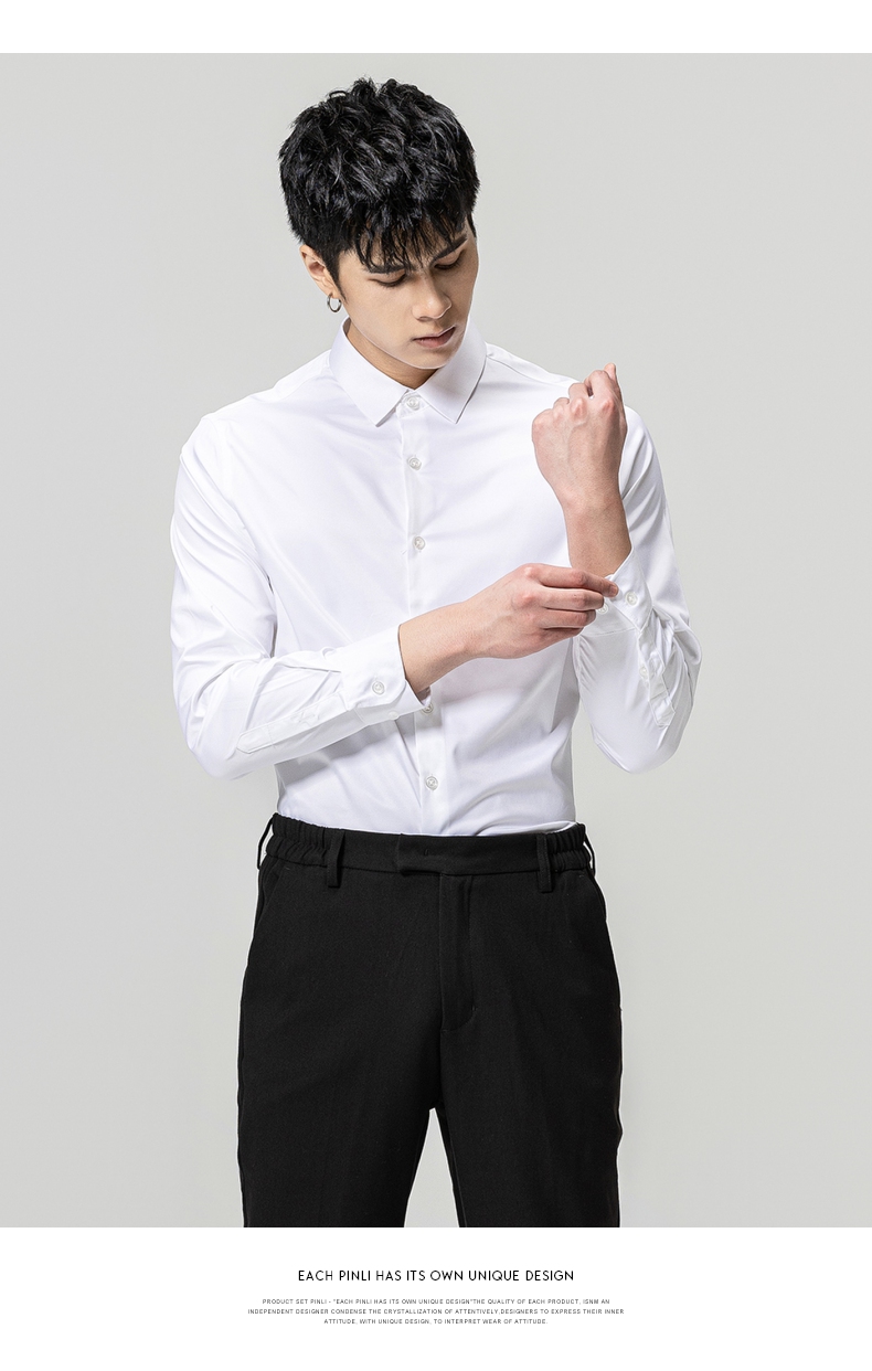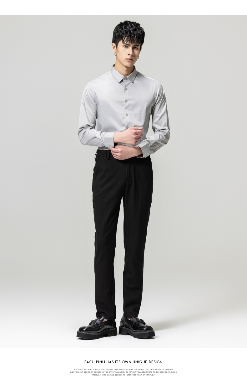 【福利款】PINLI品立秋冬新款男修身商务衬衫纯色休闲长袖衬衣潮GD223413482