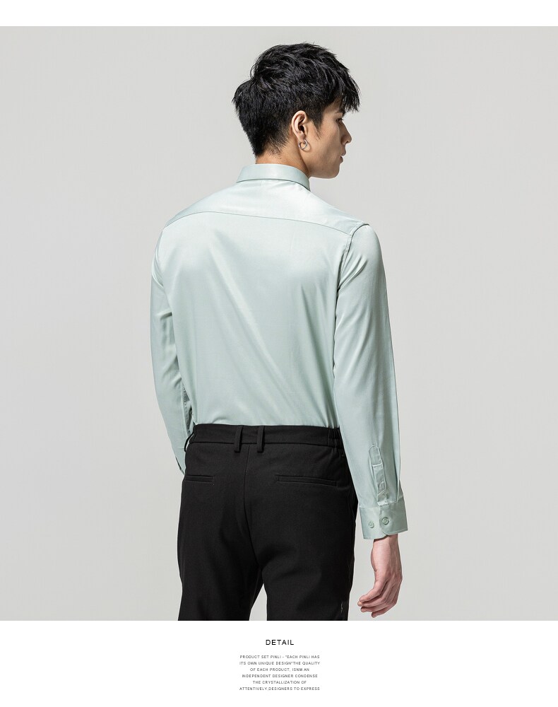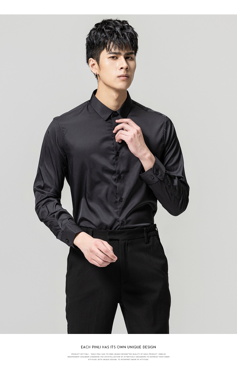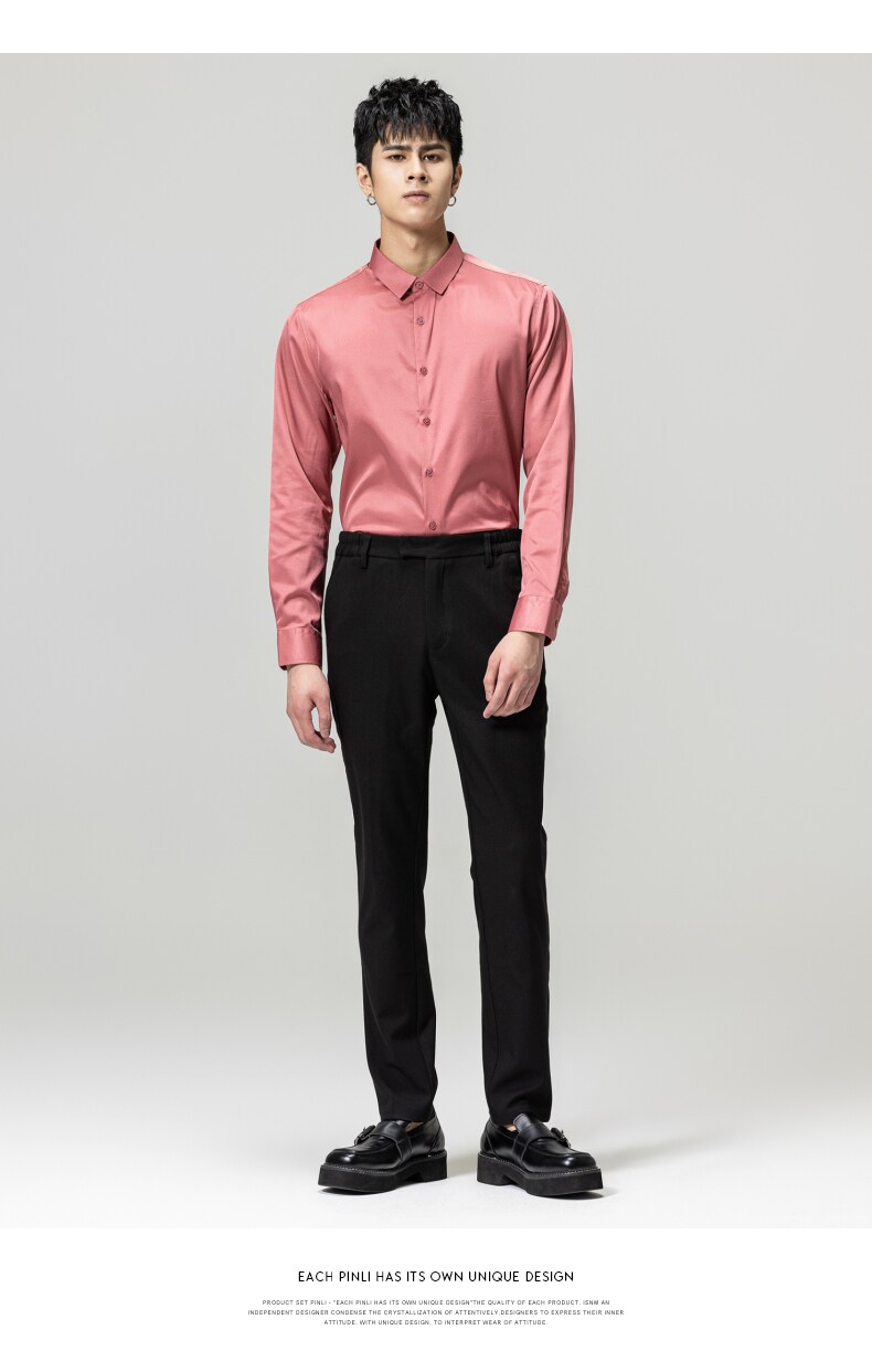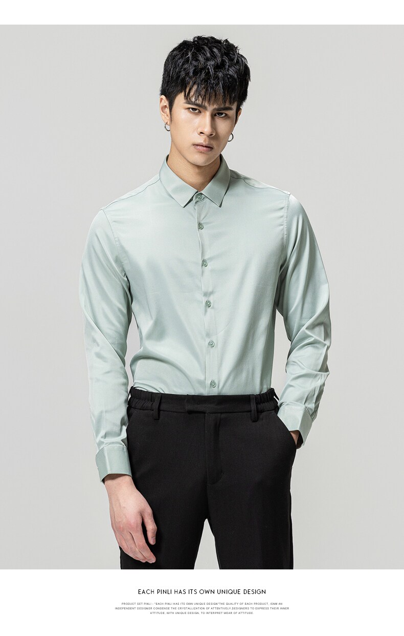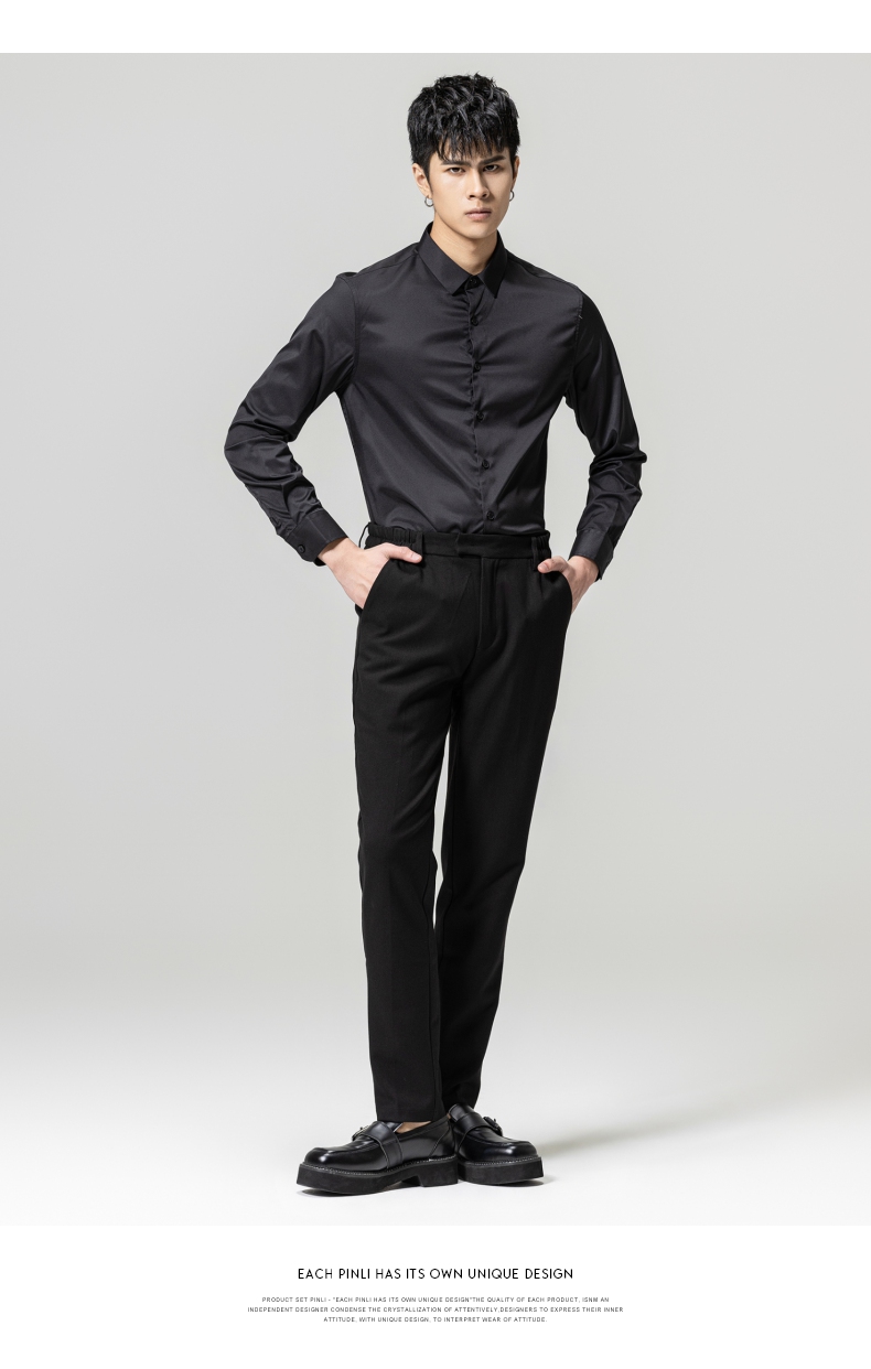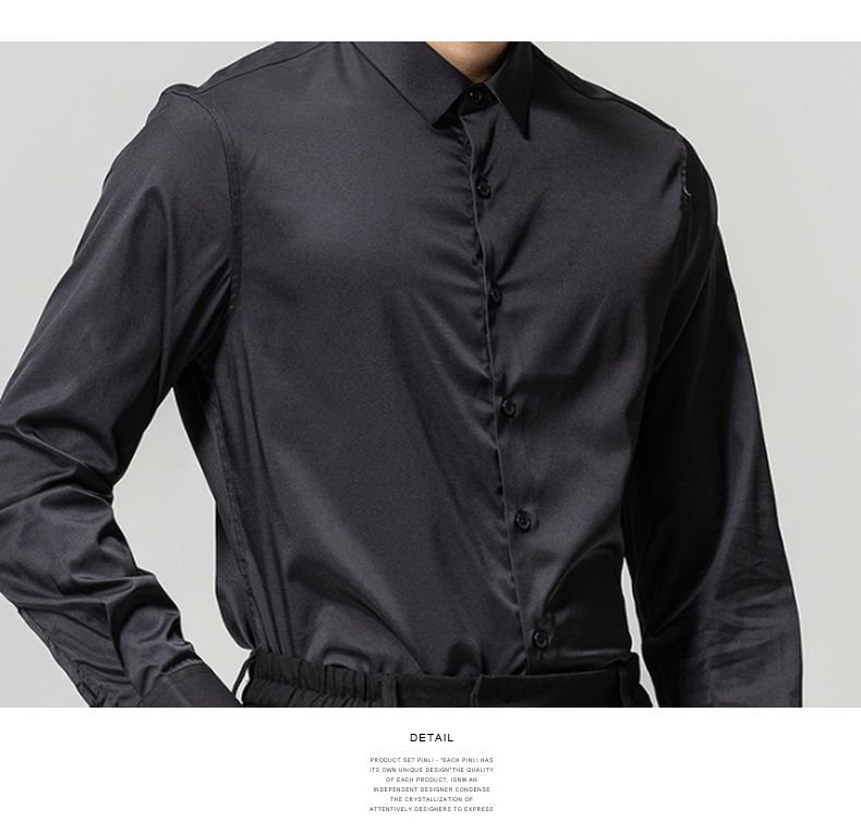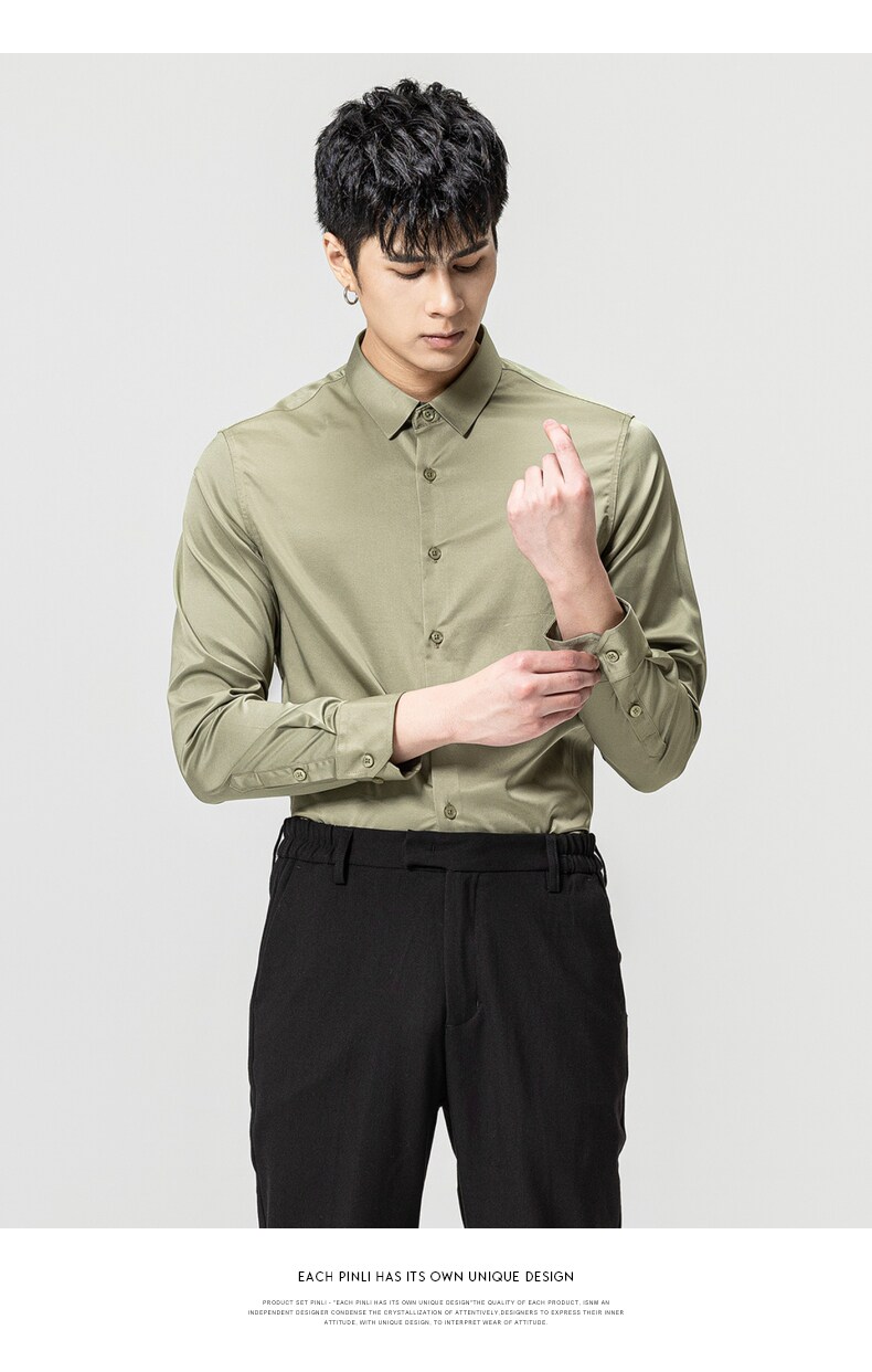 【福利款】PINLI品立秋冬新款男修身商务衬衫纯色休闲长袖衬衣潮GD223413482
