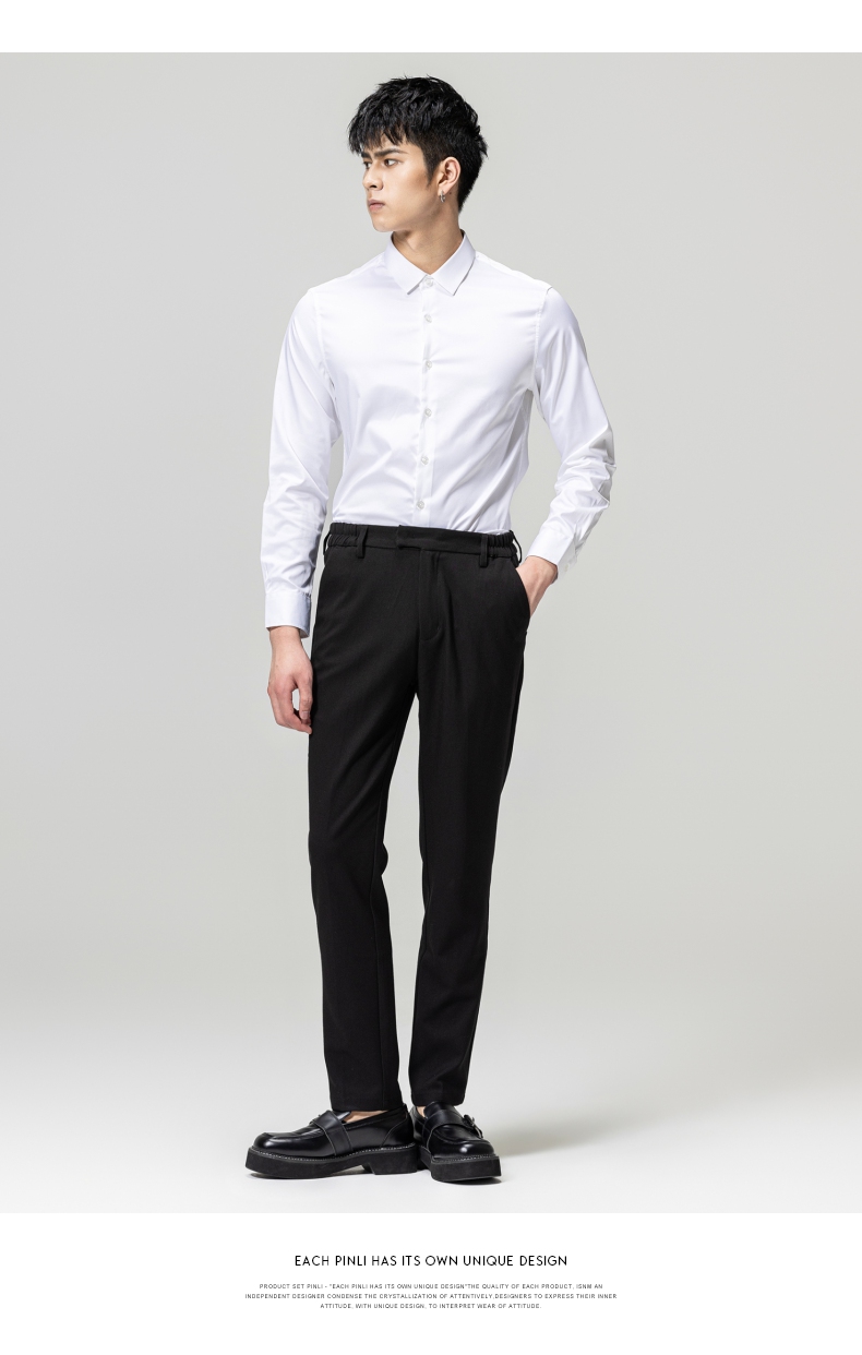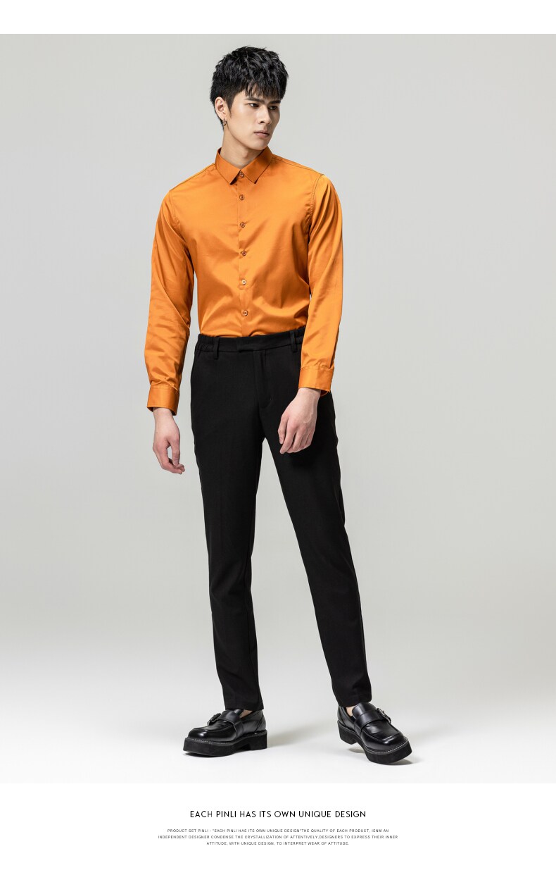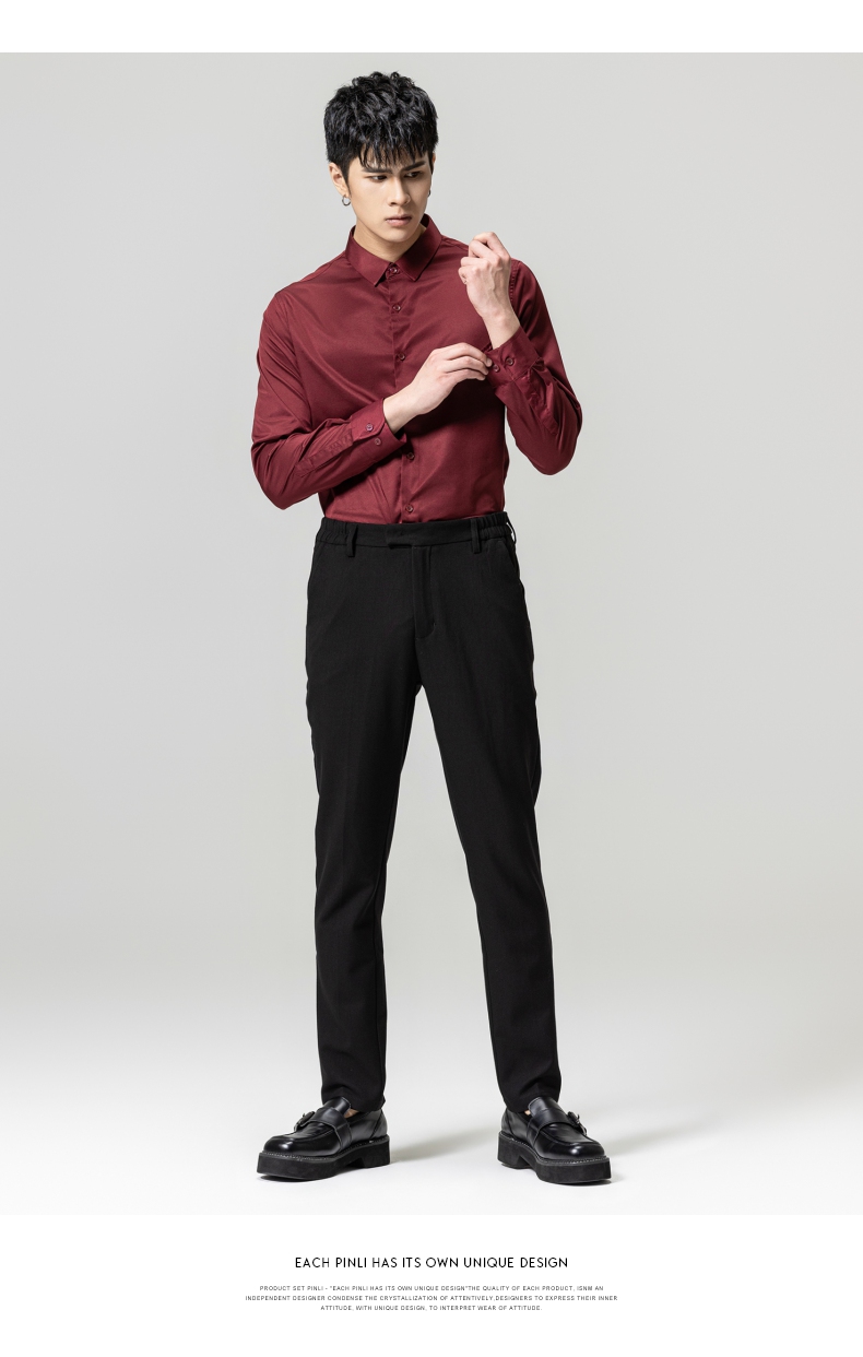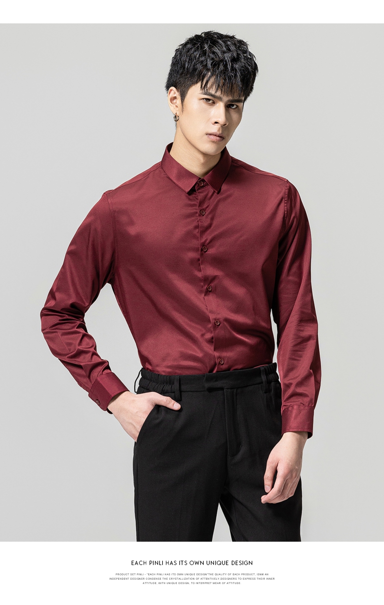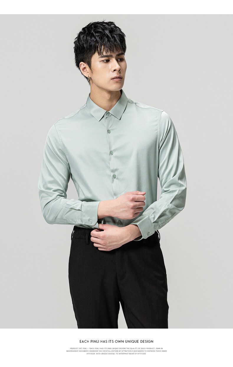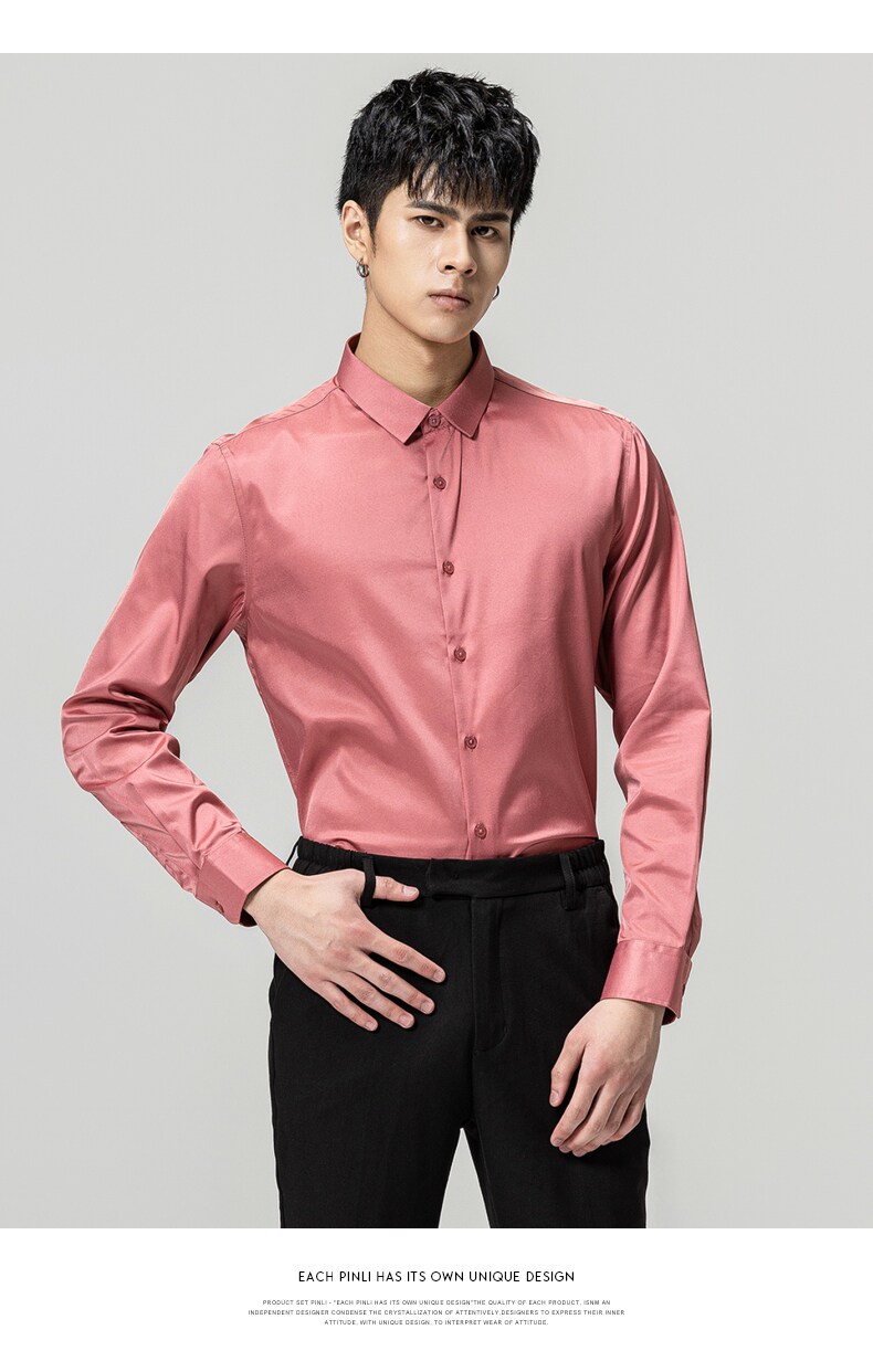 【福利款】PINLI品立秋冬新款男修身商务衬衫纯色休闲长袖衬衣潮GD223413482