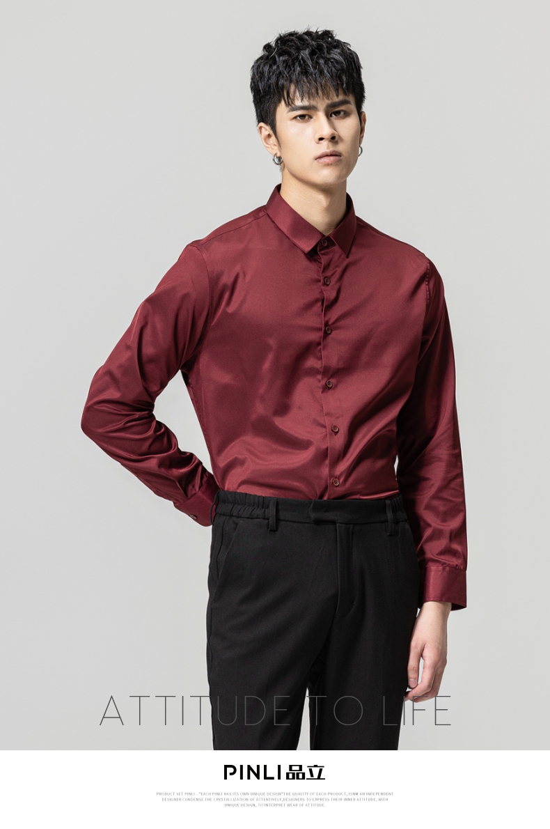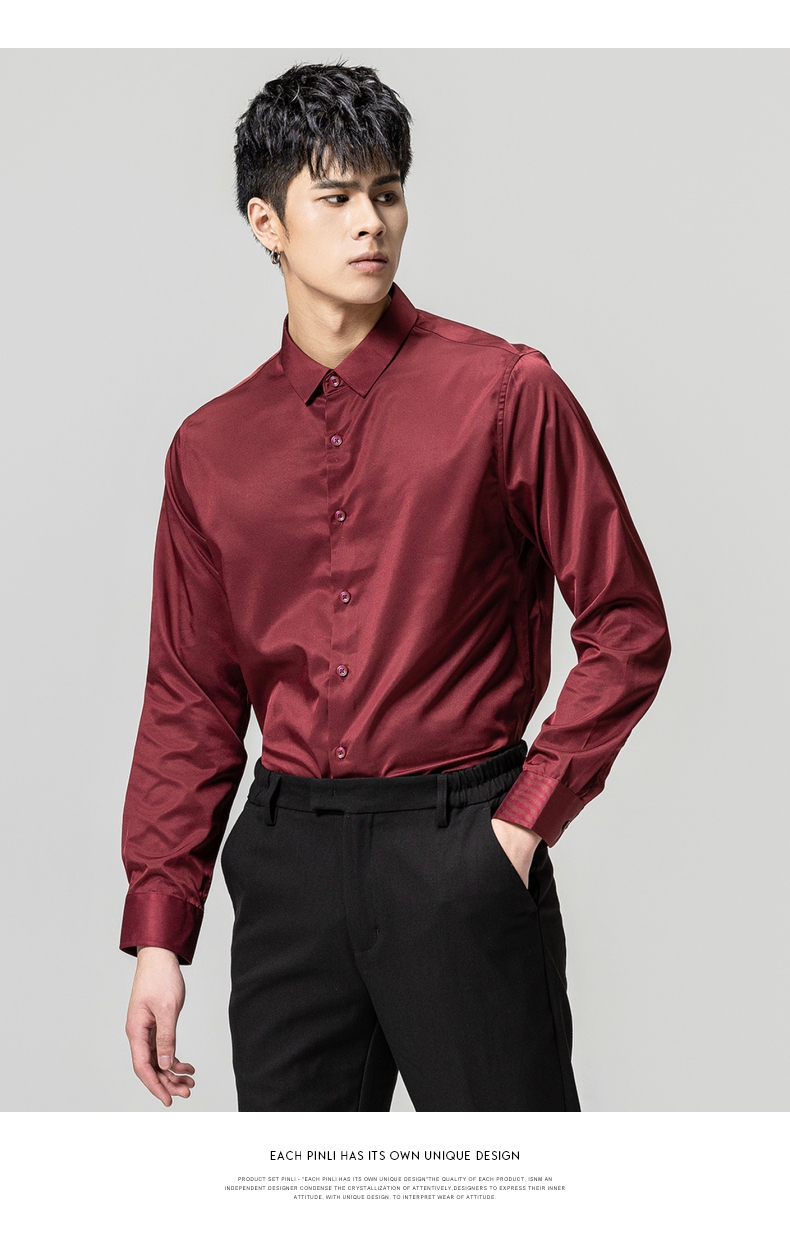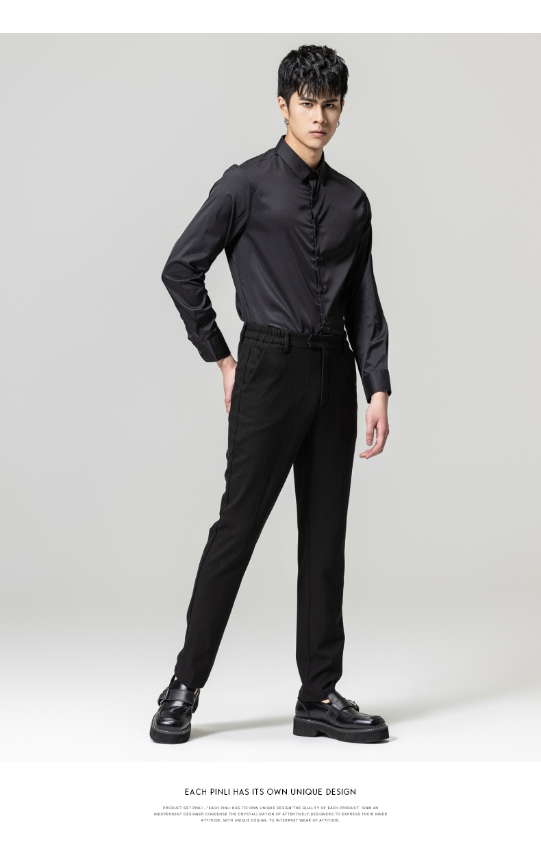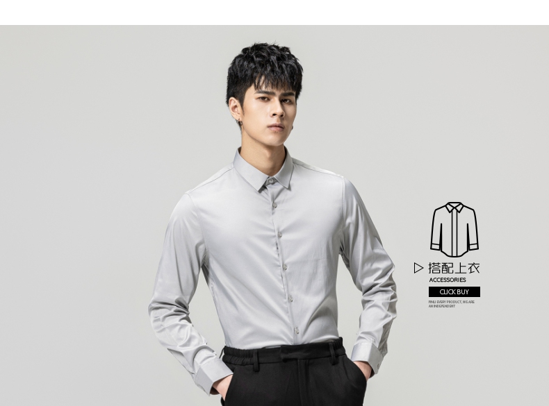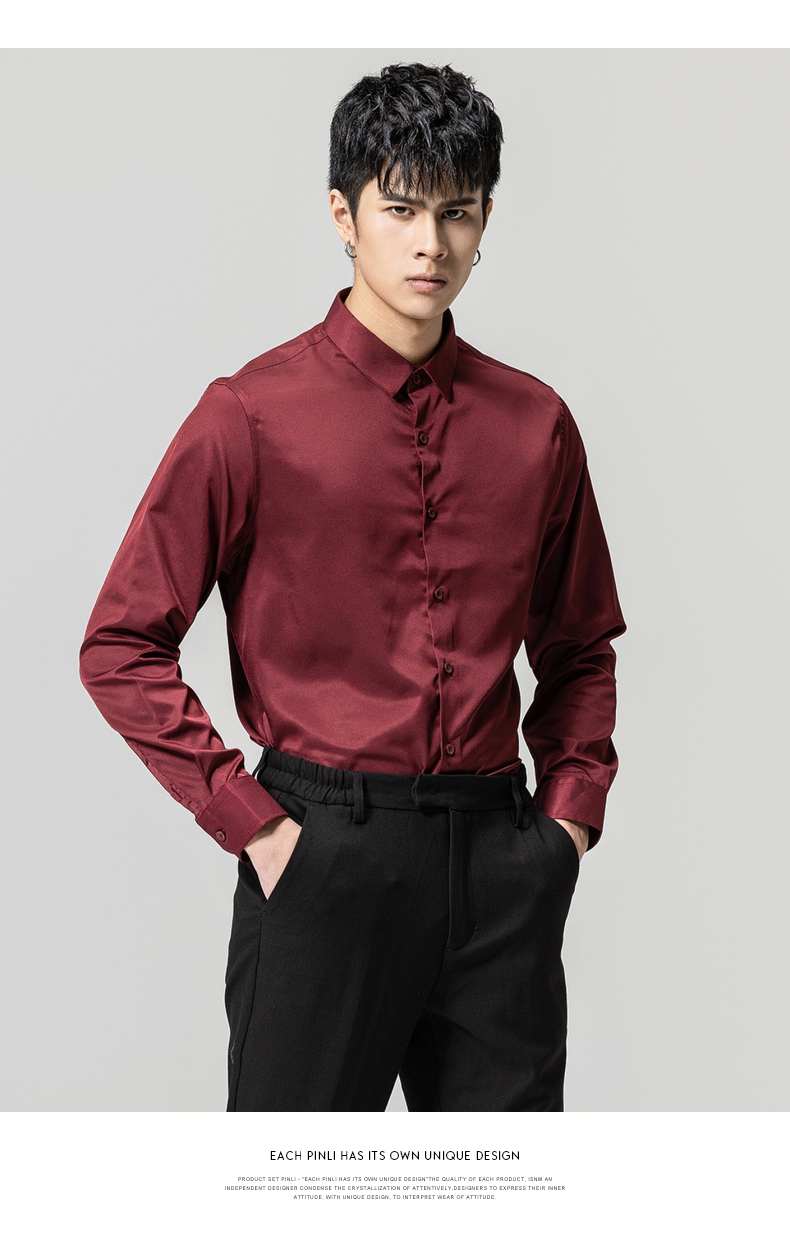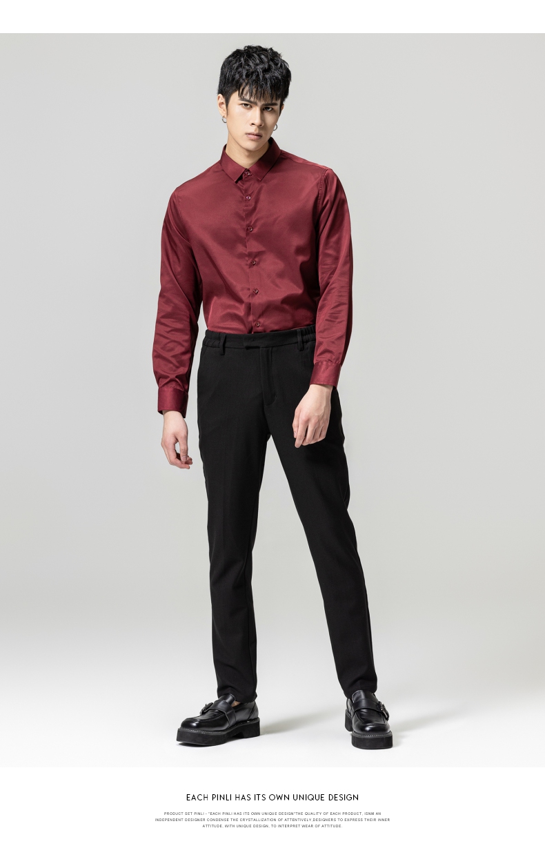 【福利款】PINLI品立秋冬新款男修身商务衬衫纯色休闲长袖衬衣潮GD223413482