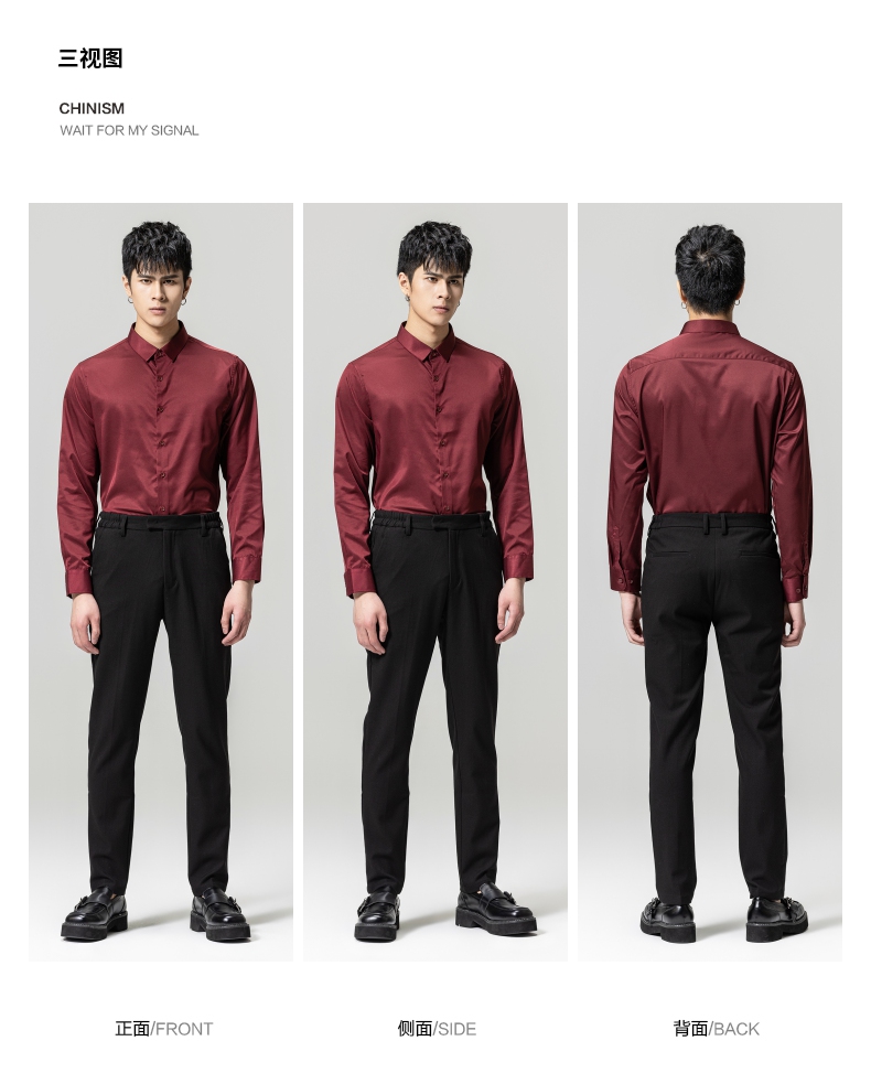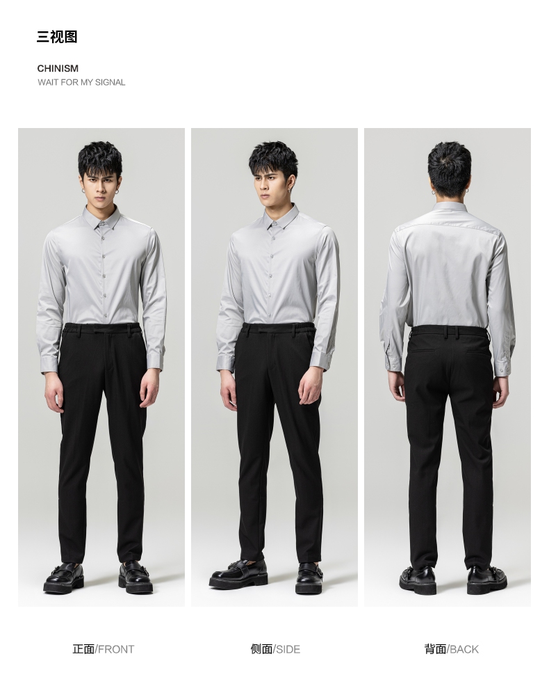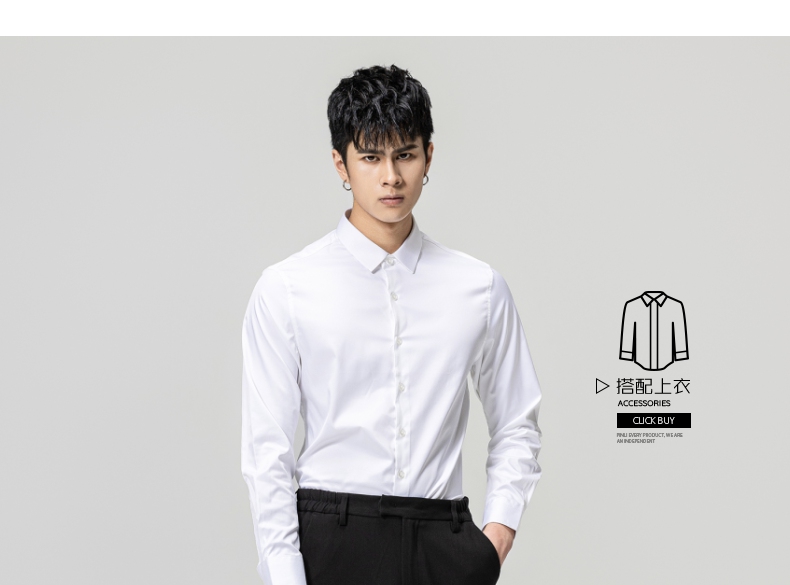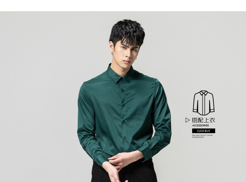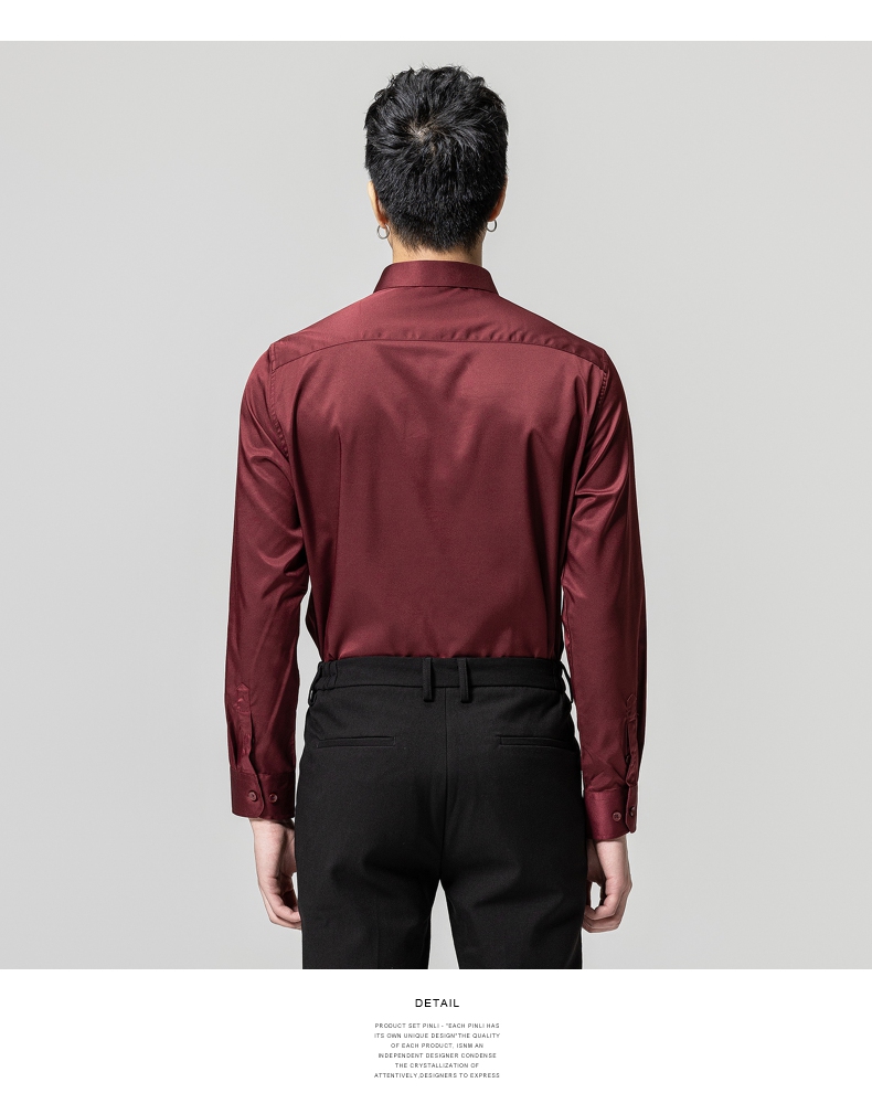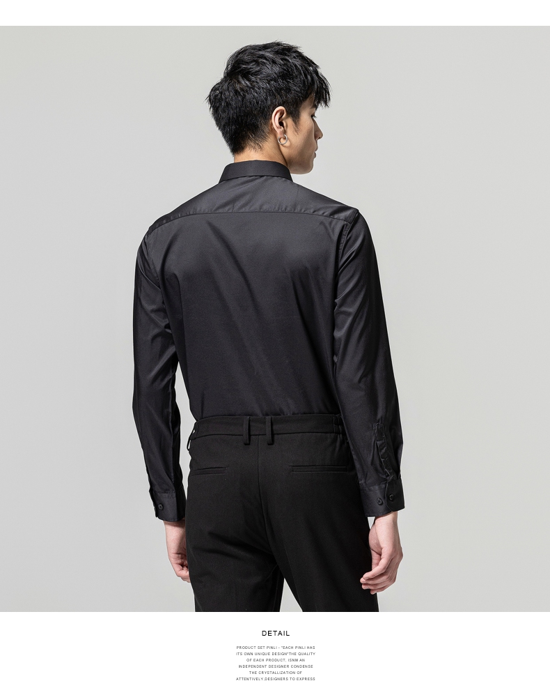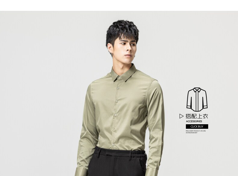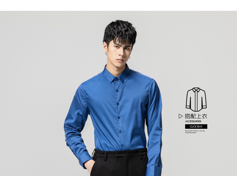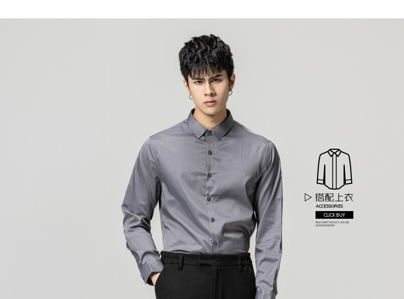【福利款】PINLI品立秋冬新款男修身商务衬衫纯色休闲长袖衬衣潮GD223413482