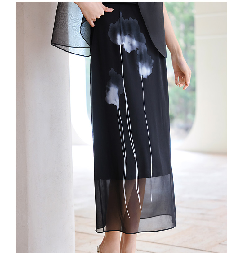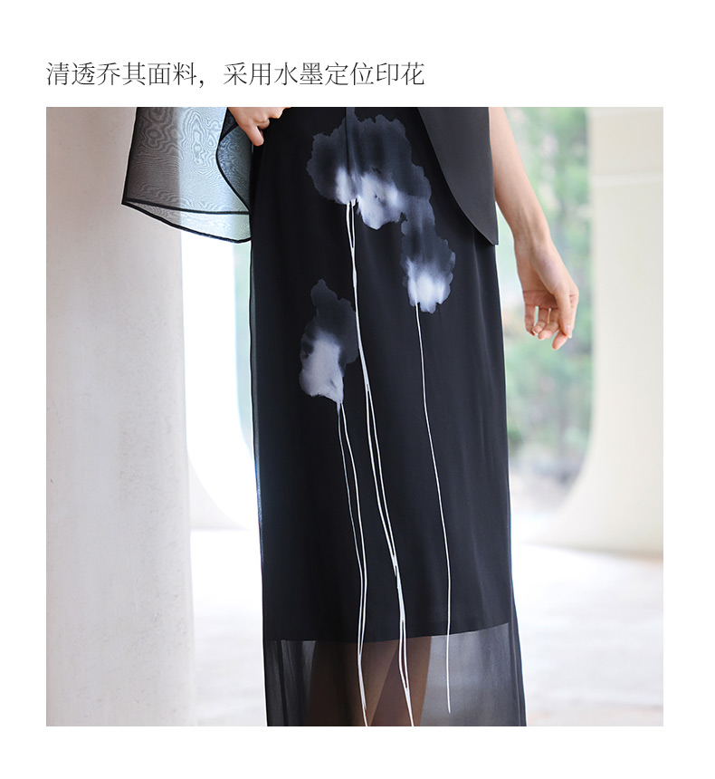 玳莎真丝乔其印花半裙显瘦国风优雅气质长款裙子2025年夏季新款 FB34307