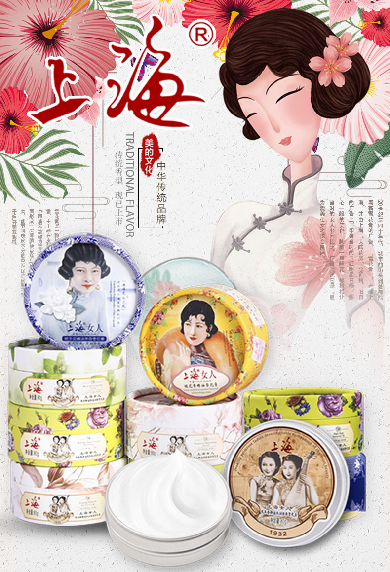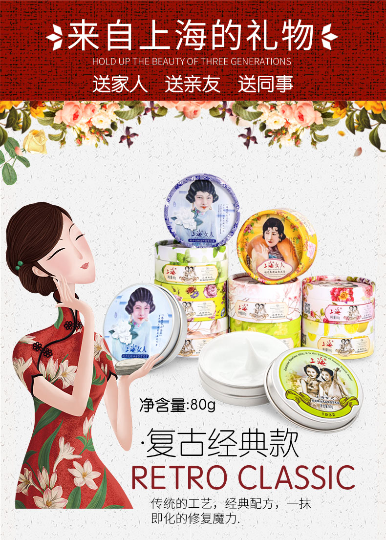 上海女人雪花膏套装正品国货老牌面霜护手霜
