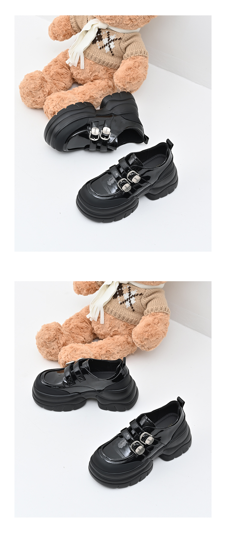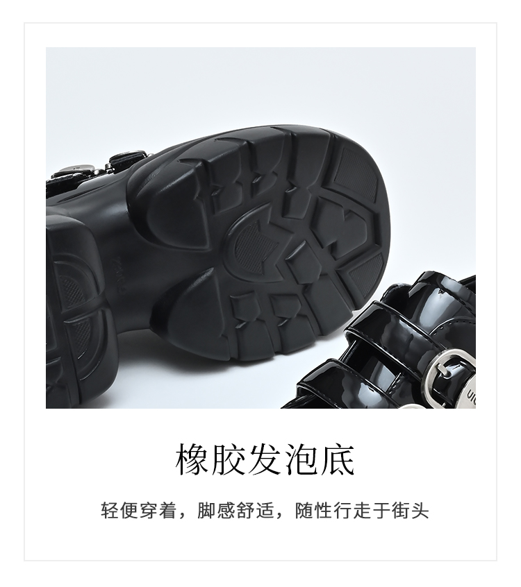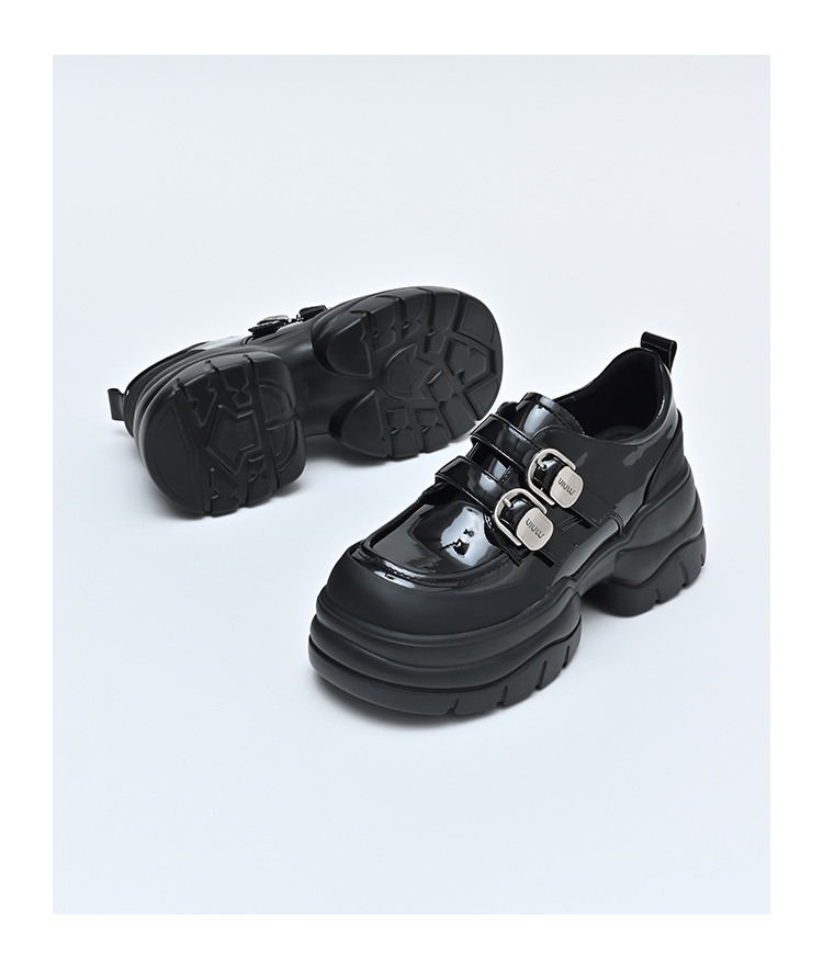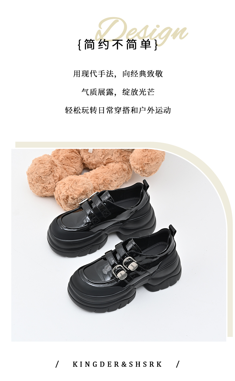 经典鲨女鞋2025年春季款百搭黑色圆头一脚蹬厚底粗跟时尚单鞋KW279-517071