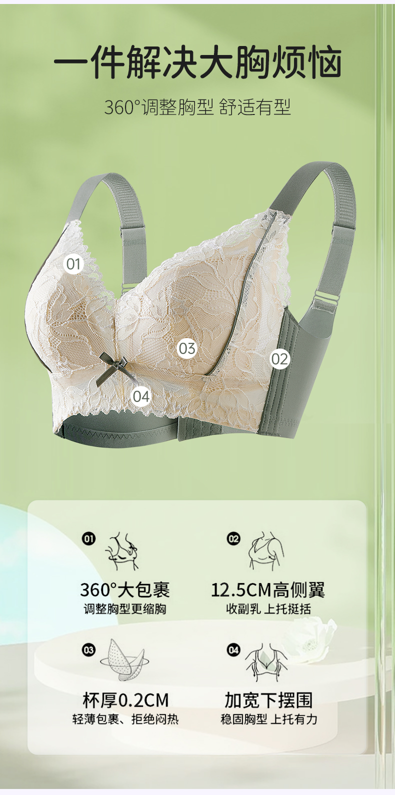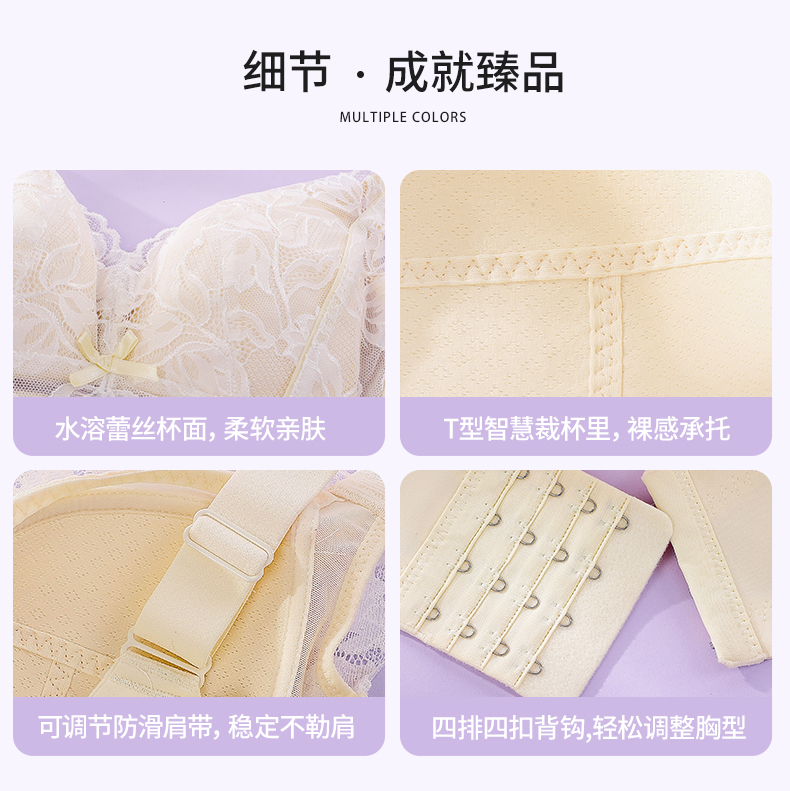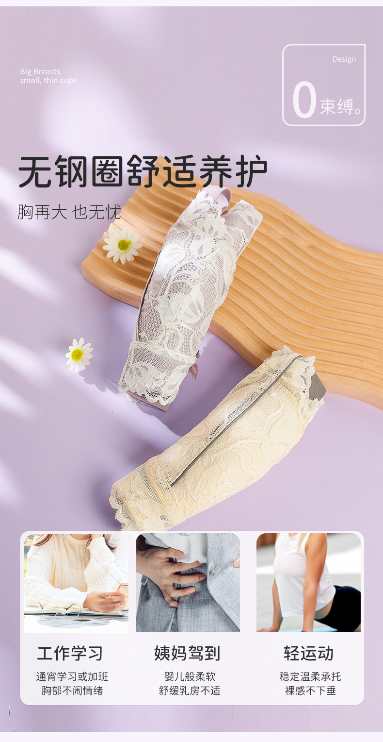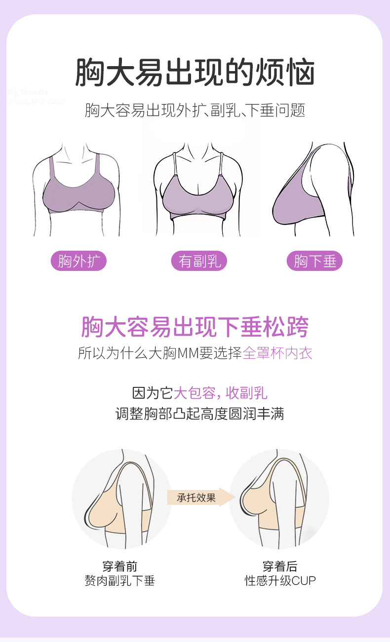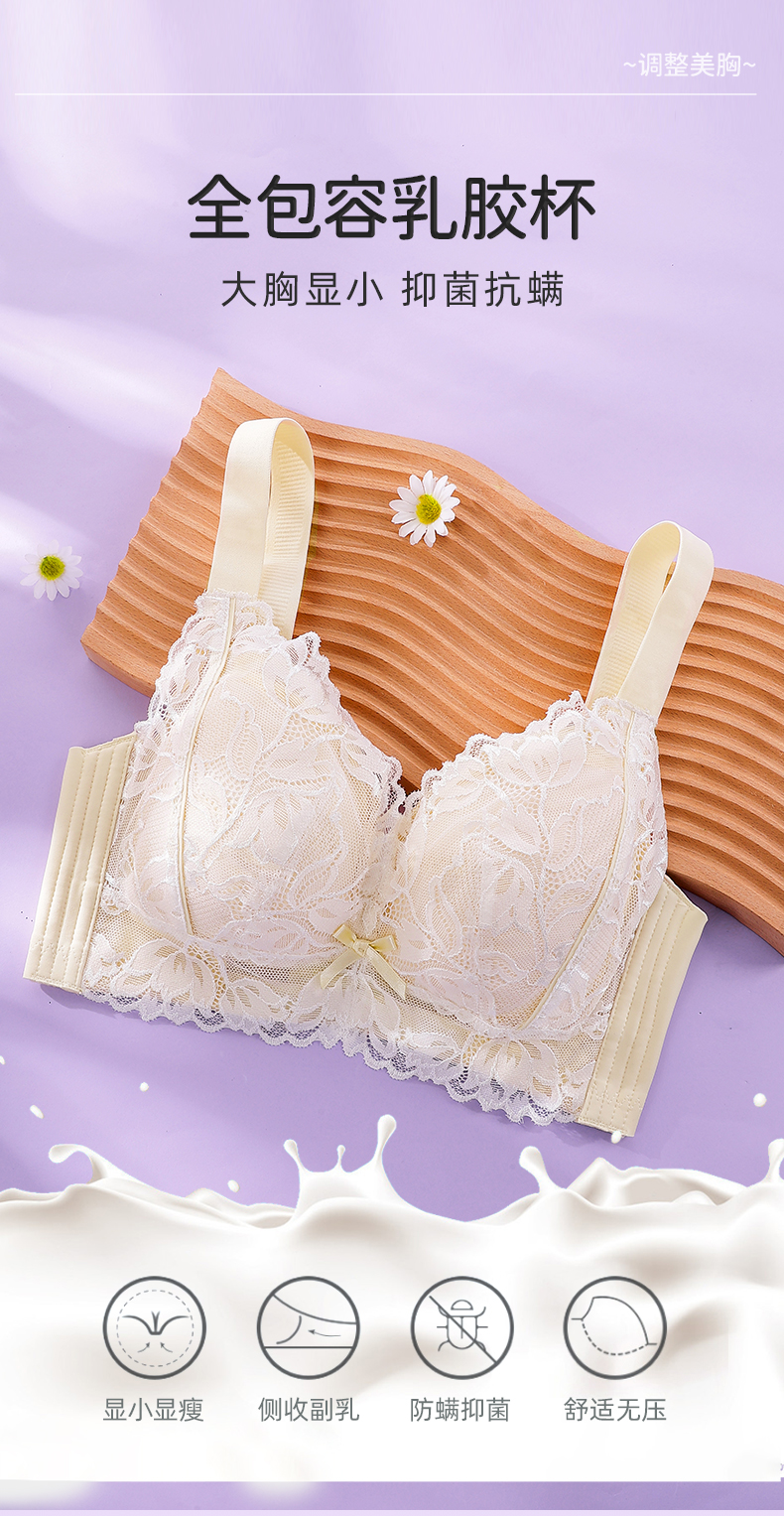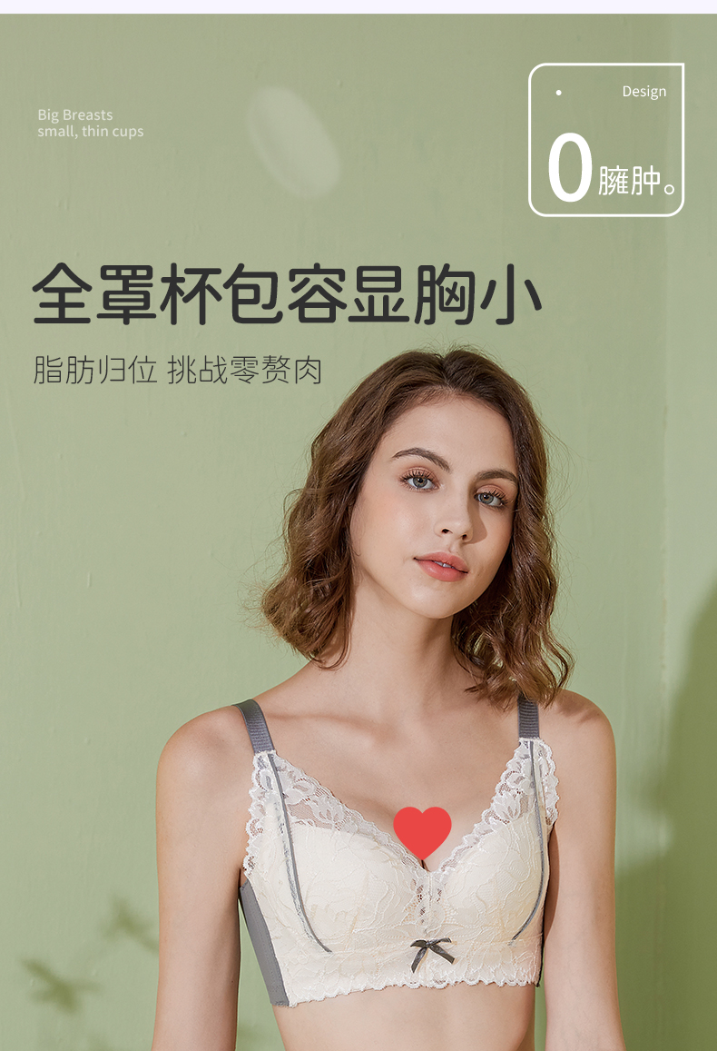 雅黛丽内衣女大胸显小薄款调整型文胸收副乳防下垂无钢圈女士胸罩