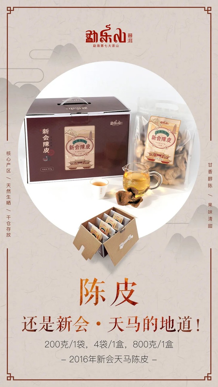 中医认为,陈皮性味辛、苦、温,入脾、肺经,有行气健脾、降逆止呕、调中开胃、燥湿化痰之功。勐乐山2016年新会天马陈皮,汤色清透,甘香醇陈,果味清甜,帮你的味蕾找到一个愉悦的栖身之所。