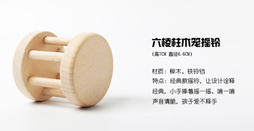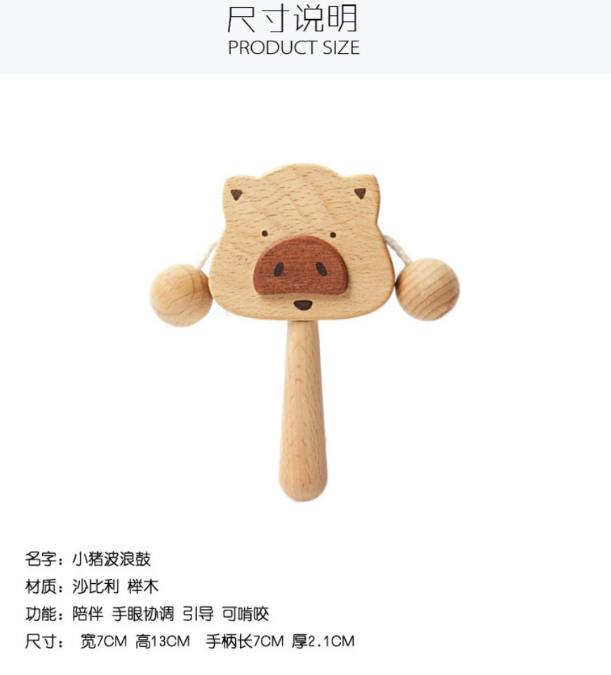 【婴儿磨牙器】猪宝宝实木可啃咬新生儿百天满月手摇铃拨浪鼓礼盒