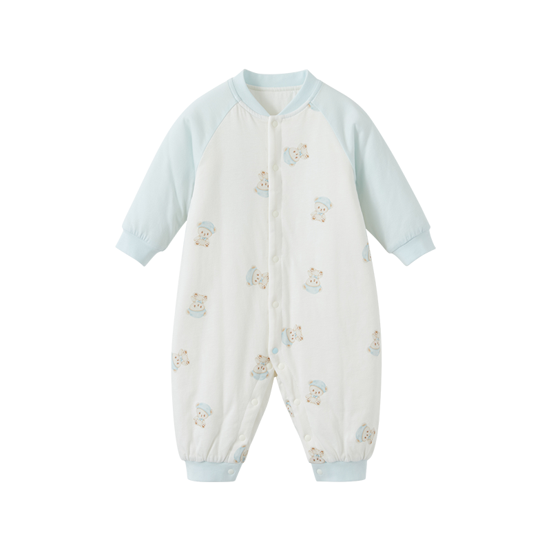 怡比晚安小熊长袖开襟哈衣HY25WIN021花蓝色调59#-90#