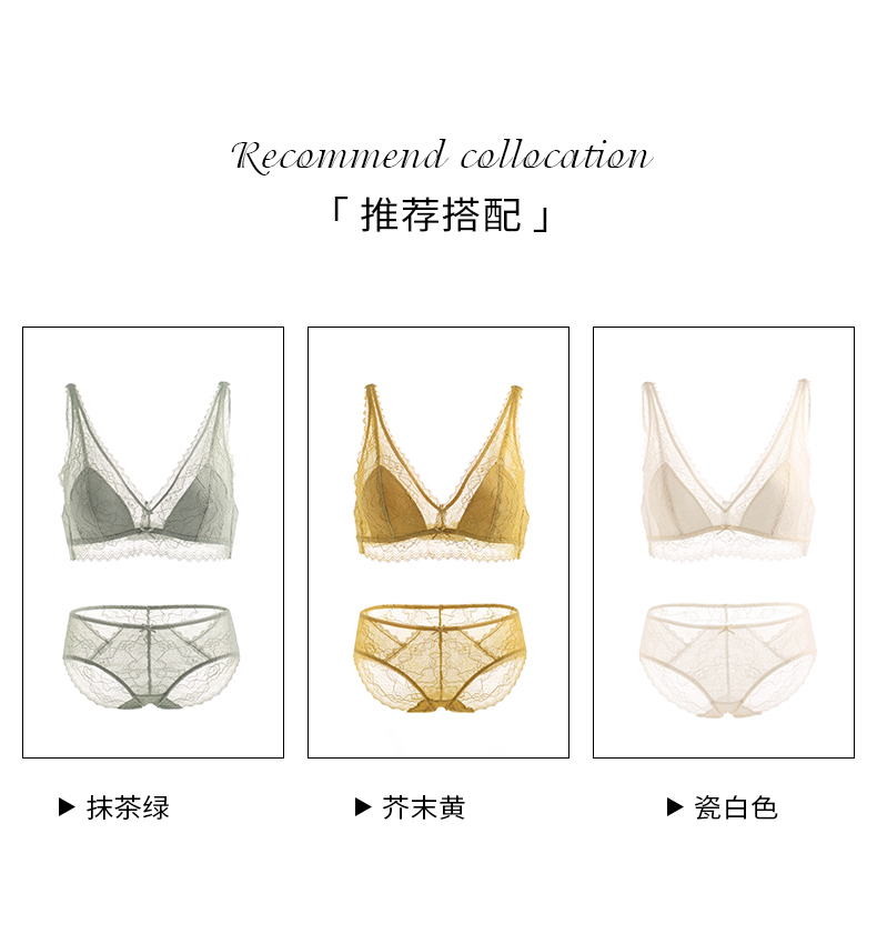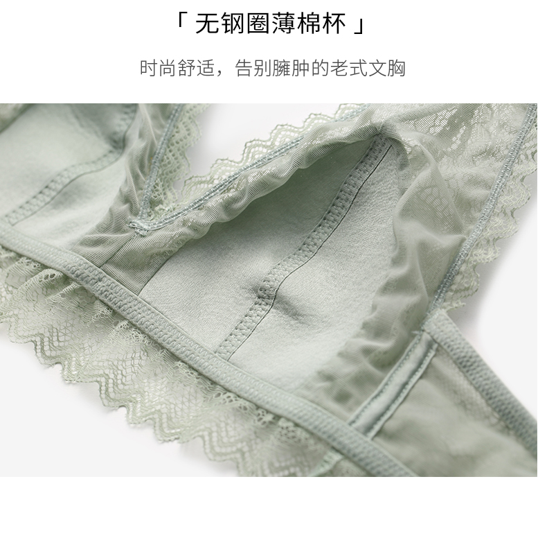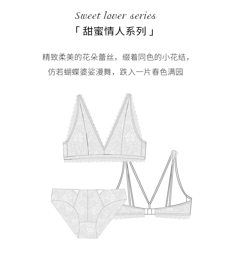 金三塔无钢圈内衣女性感甜蜜情人法式薄款蕾丝聚拢真丝文胸套装 NZFAA304
