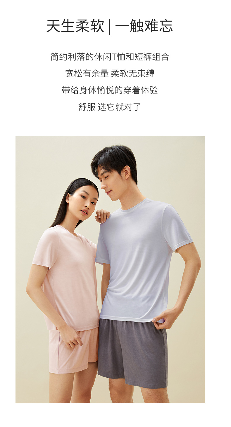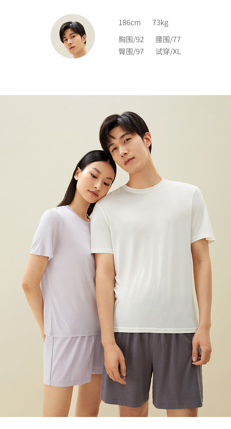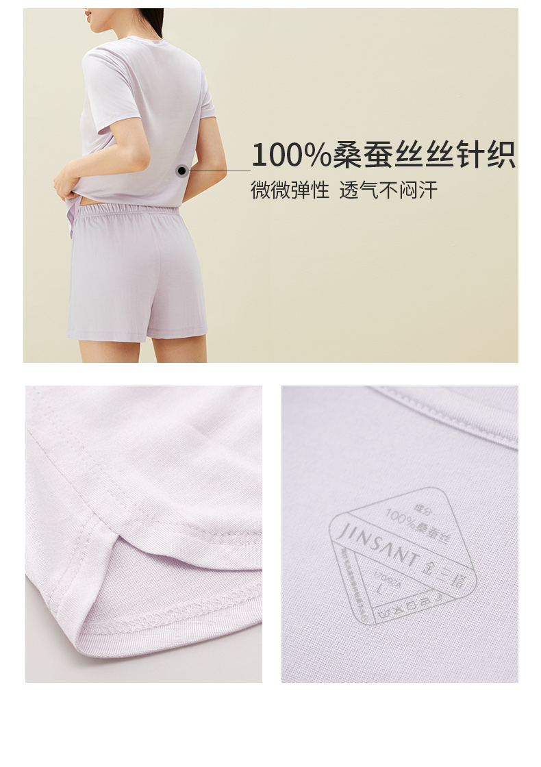 金三塔100%桑蚕丝真丝针织情侣舒适裸感T恤短裤睡衣可外穿家居服 YZFDA703/YZMDA701