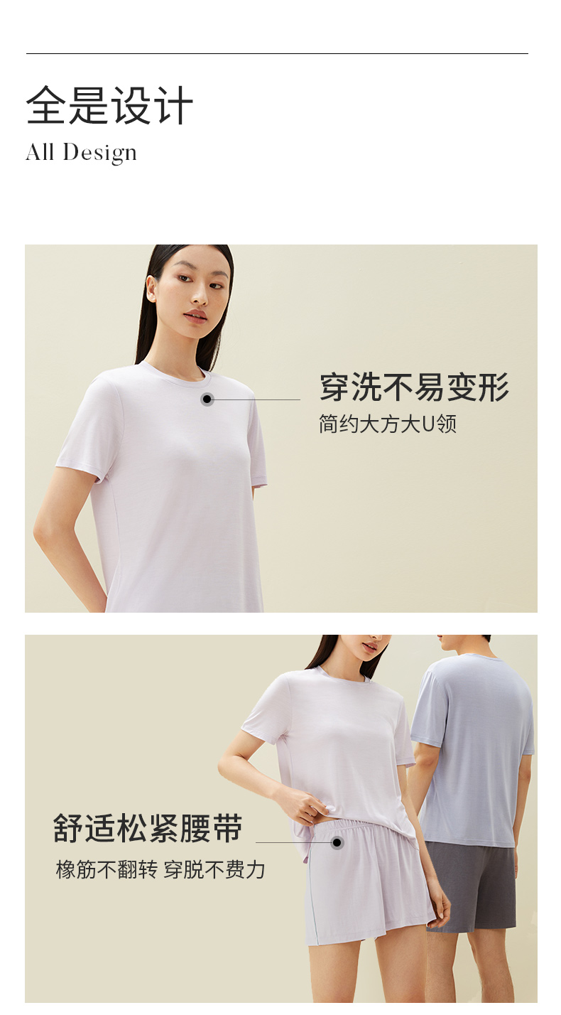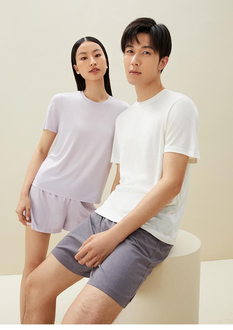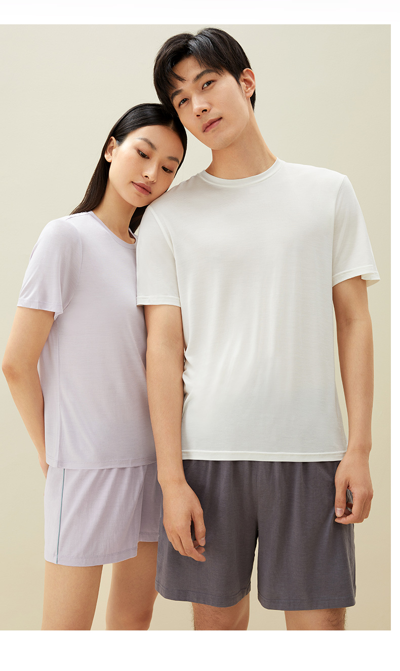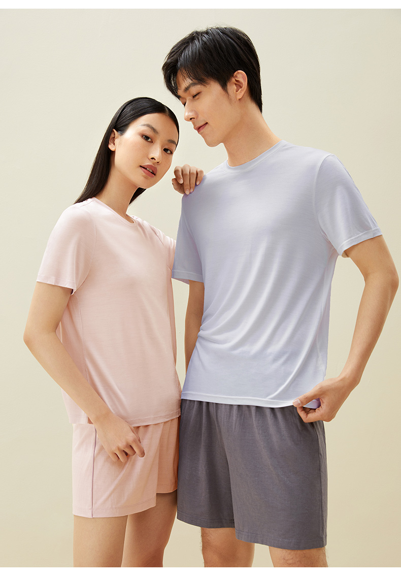 金三塔100%桑蚕丝真丝针织情侣舒适裸感T恤短裤睡衣可外穿家居服 YZFDA703/YZMDA701