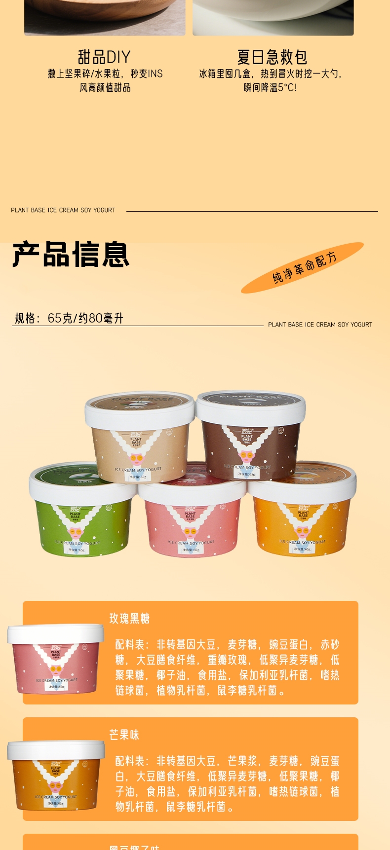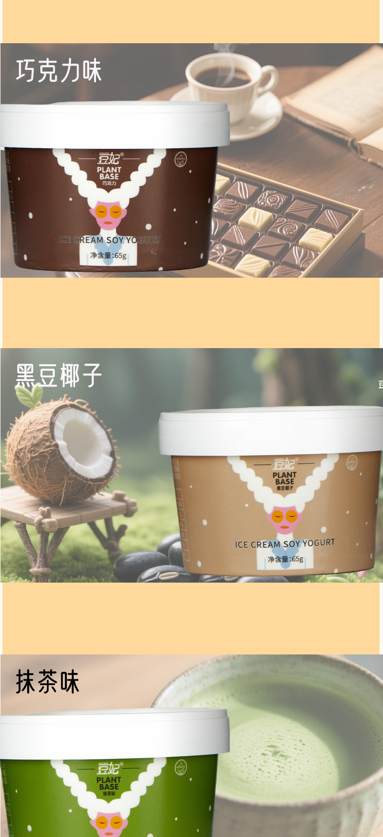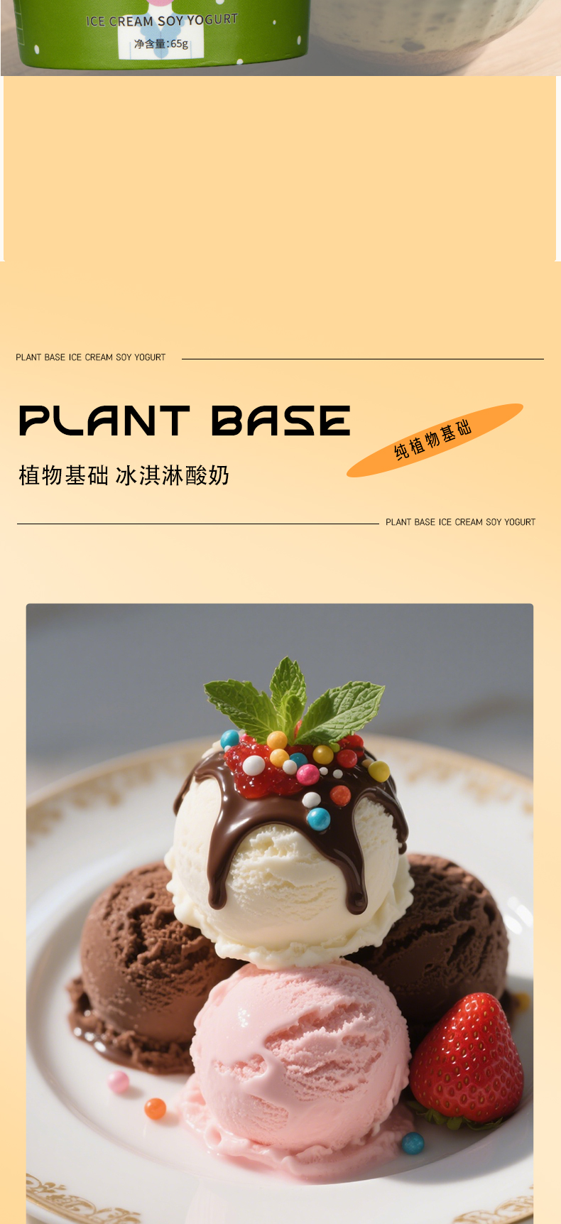 纯素冰淇淋酸奶 纯植物 口感丝滑 香甜可口