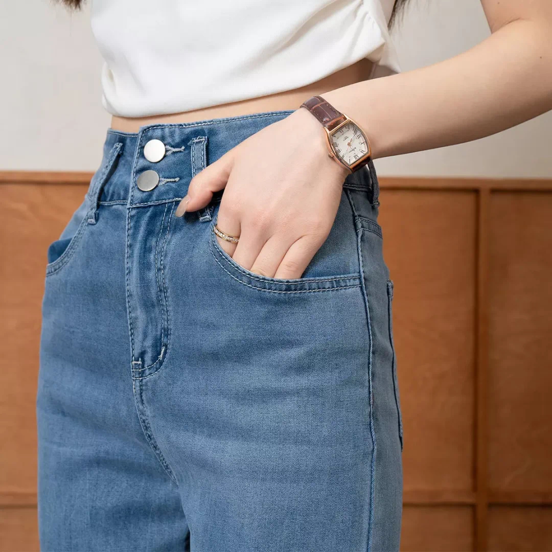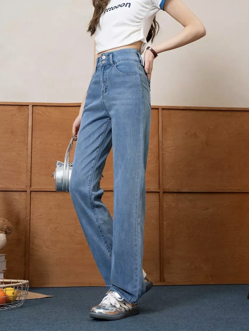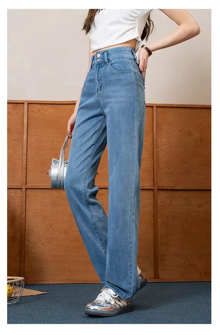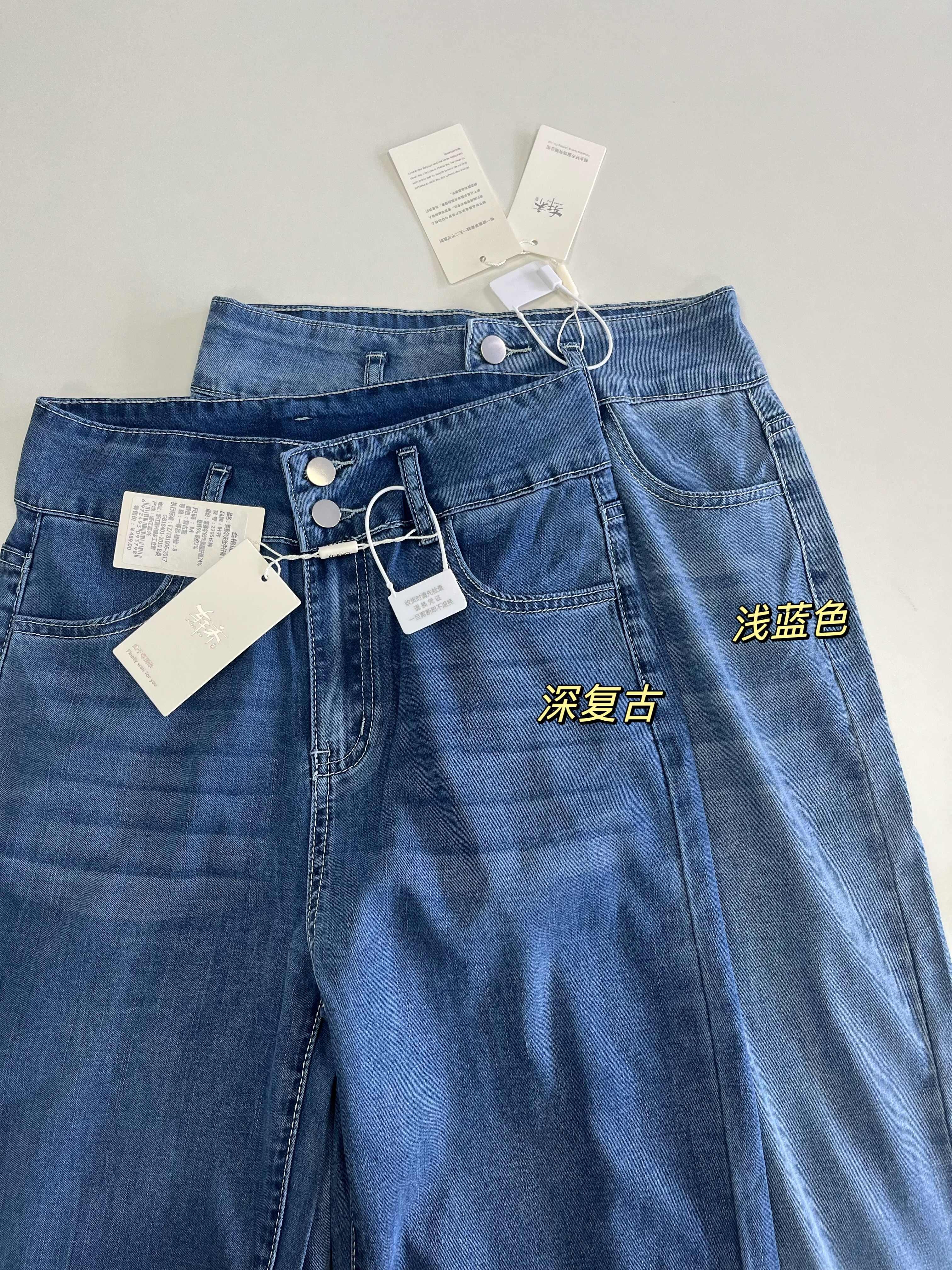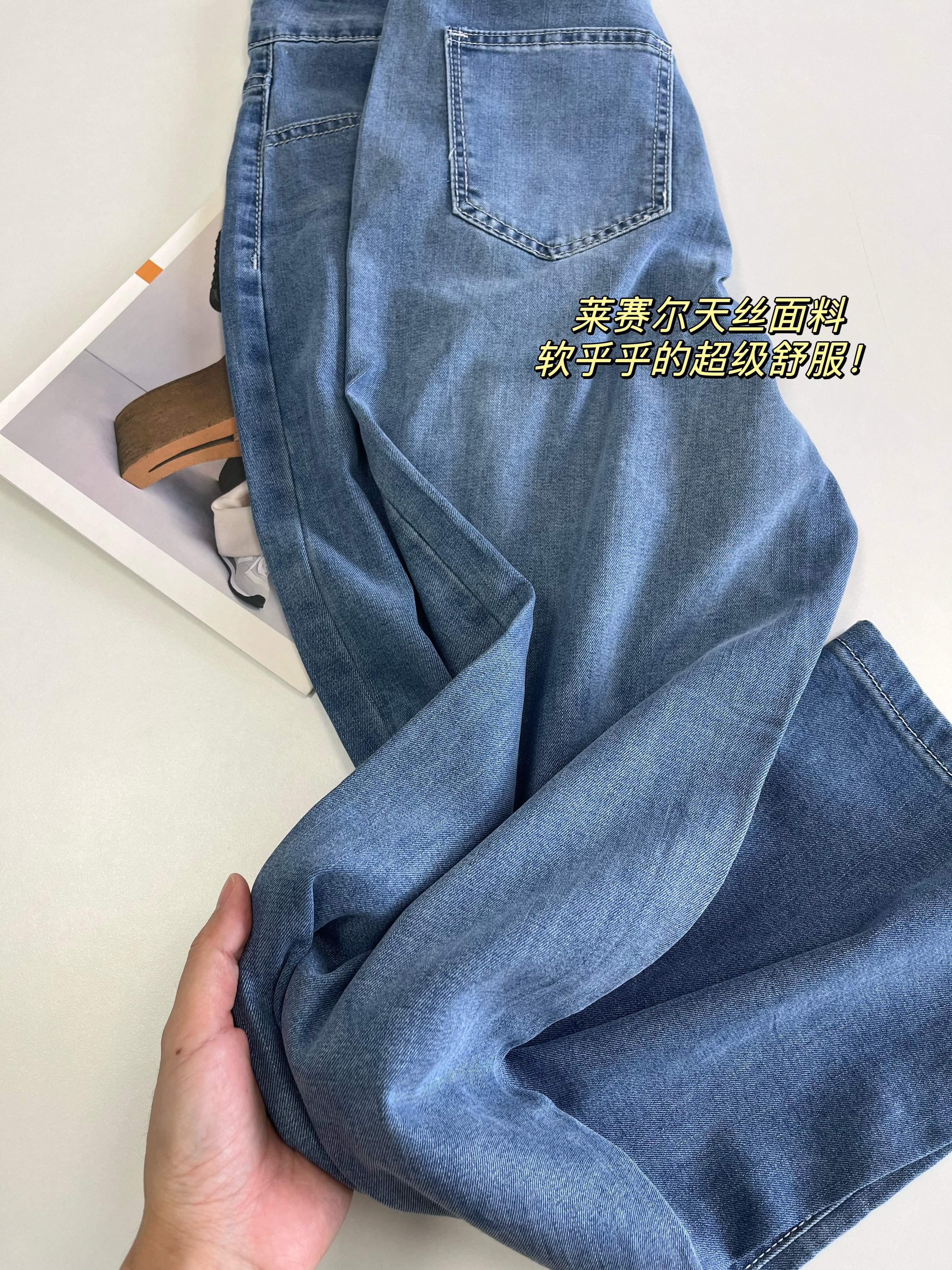 轩齐双扣天丝直筒牛仔裤,自带凉感透气不闷热,显高显腿长(下单3-5天内发货)