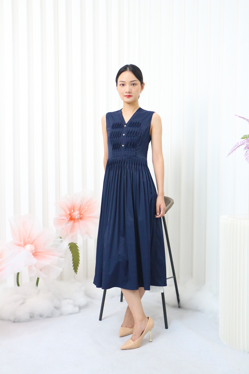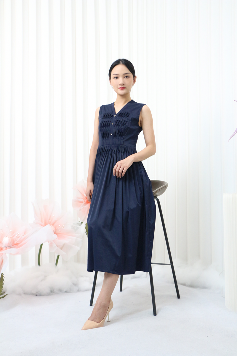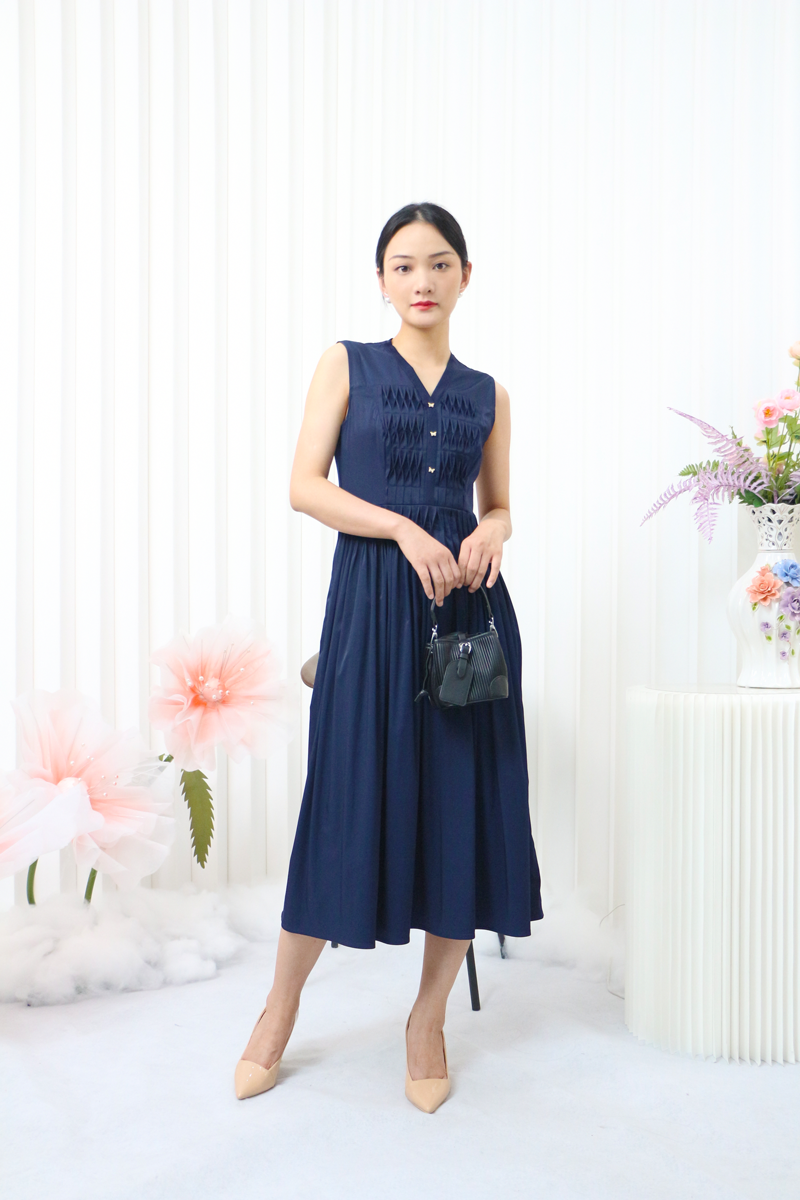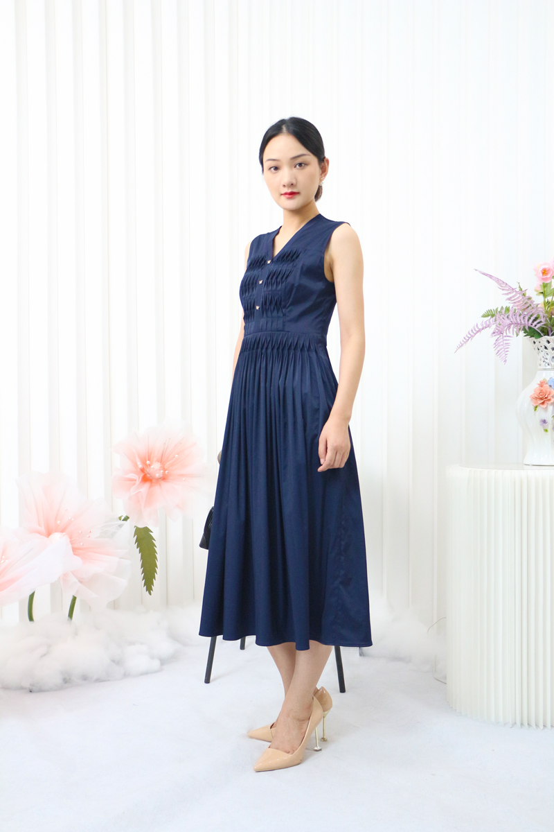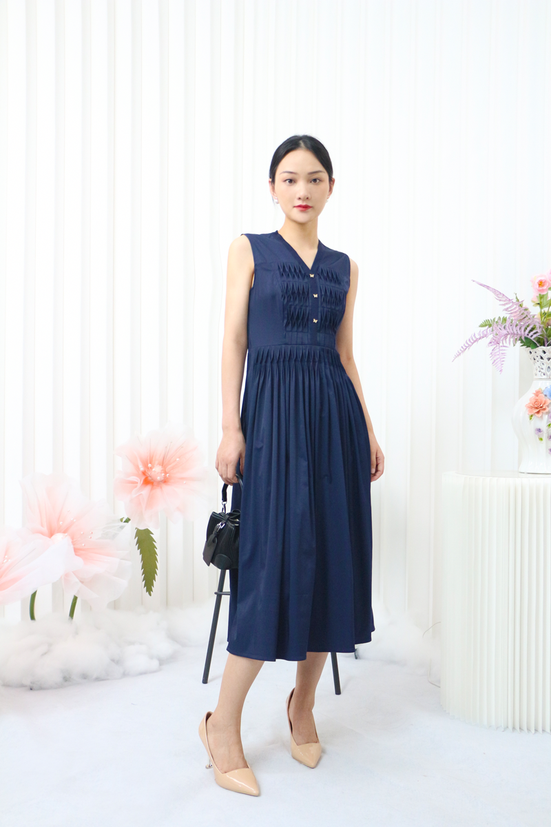 B--千年情话—梁祝绀色排褶无袖连衣裙LZ3S18