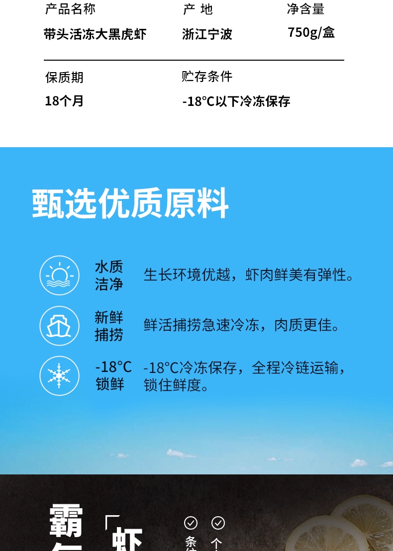 【BF】蓝雪带头活冻大黑虎虾750g/盒