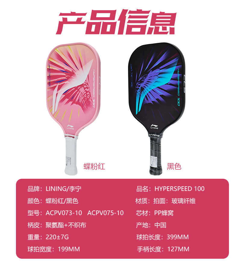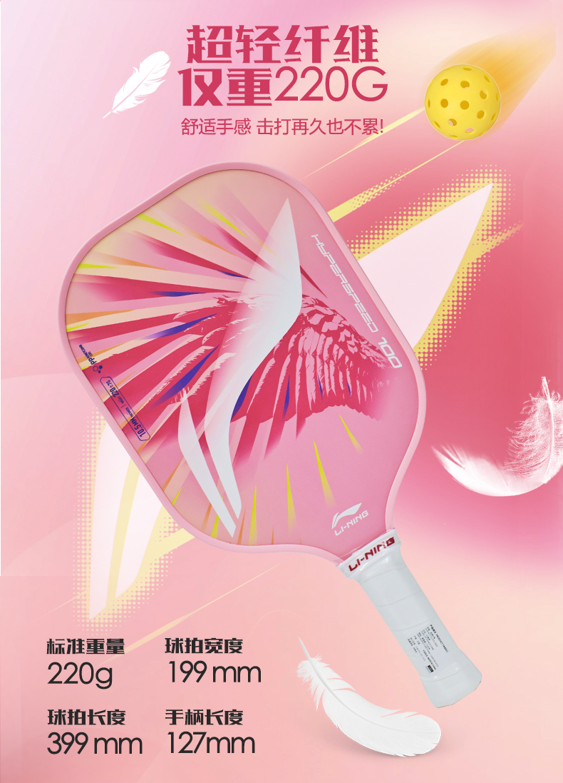 李宁匹克球拍HYPERSPEED 100入门训练速度型挥拍灵活全碳纤维运动球拍