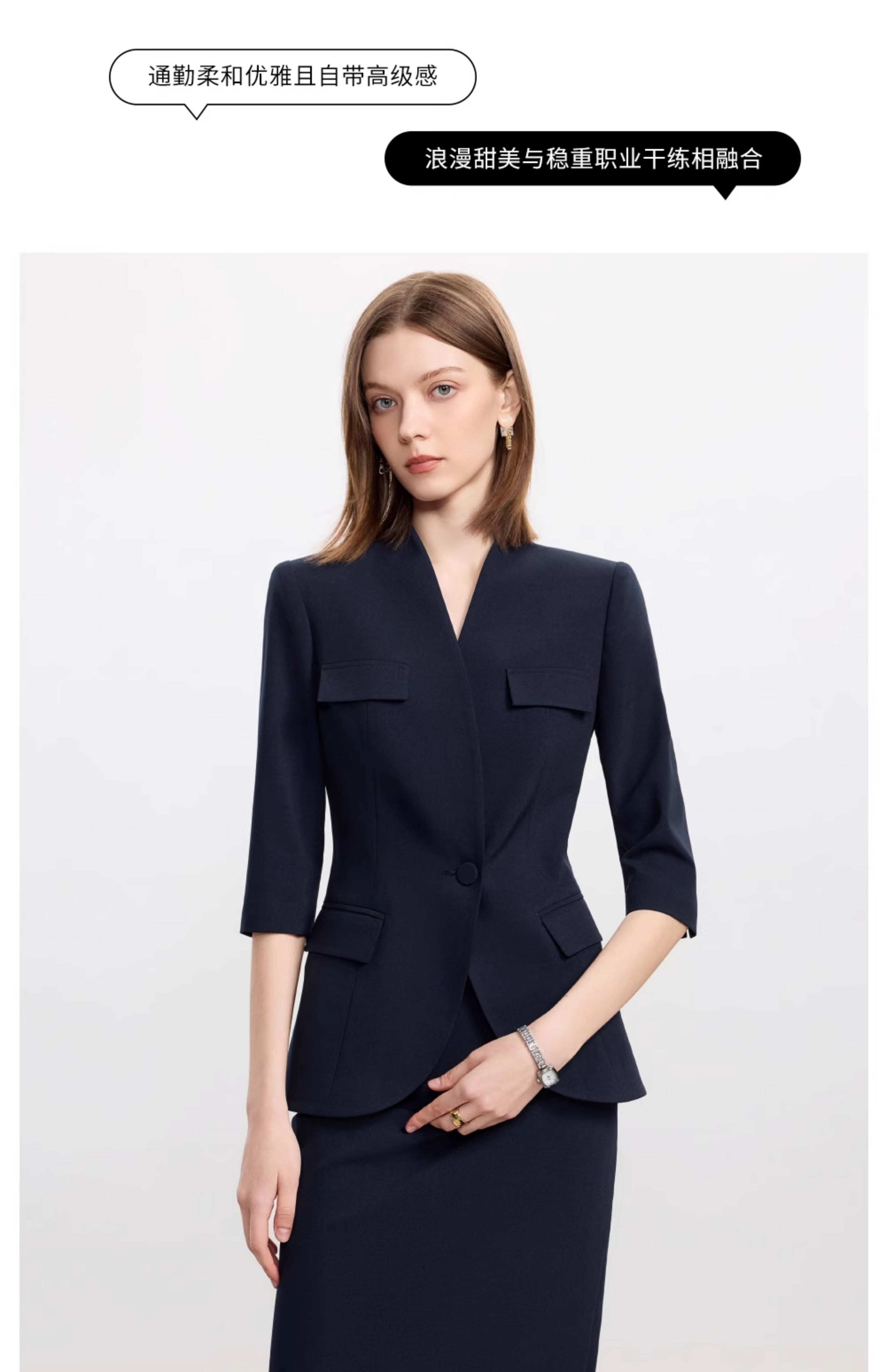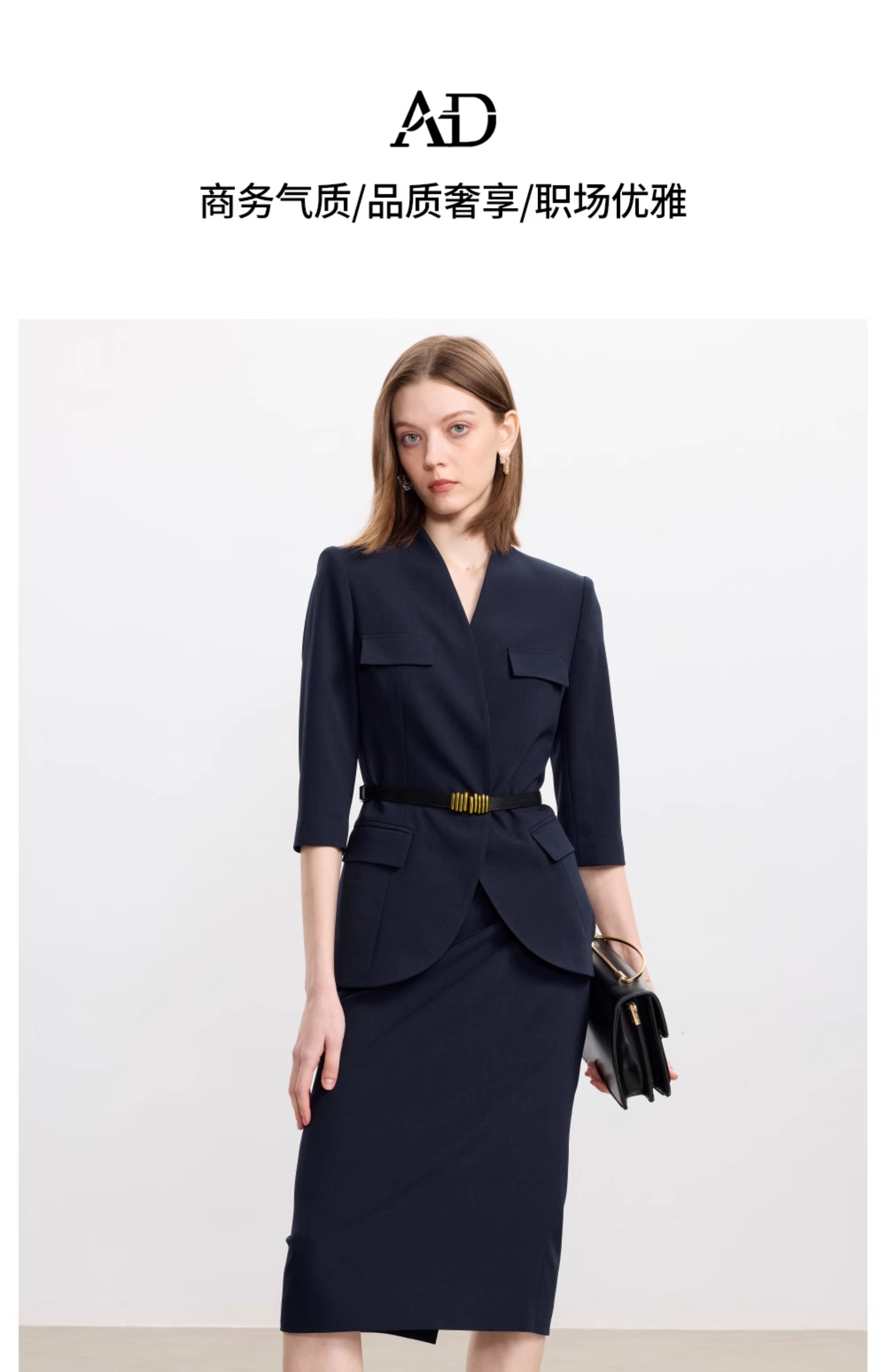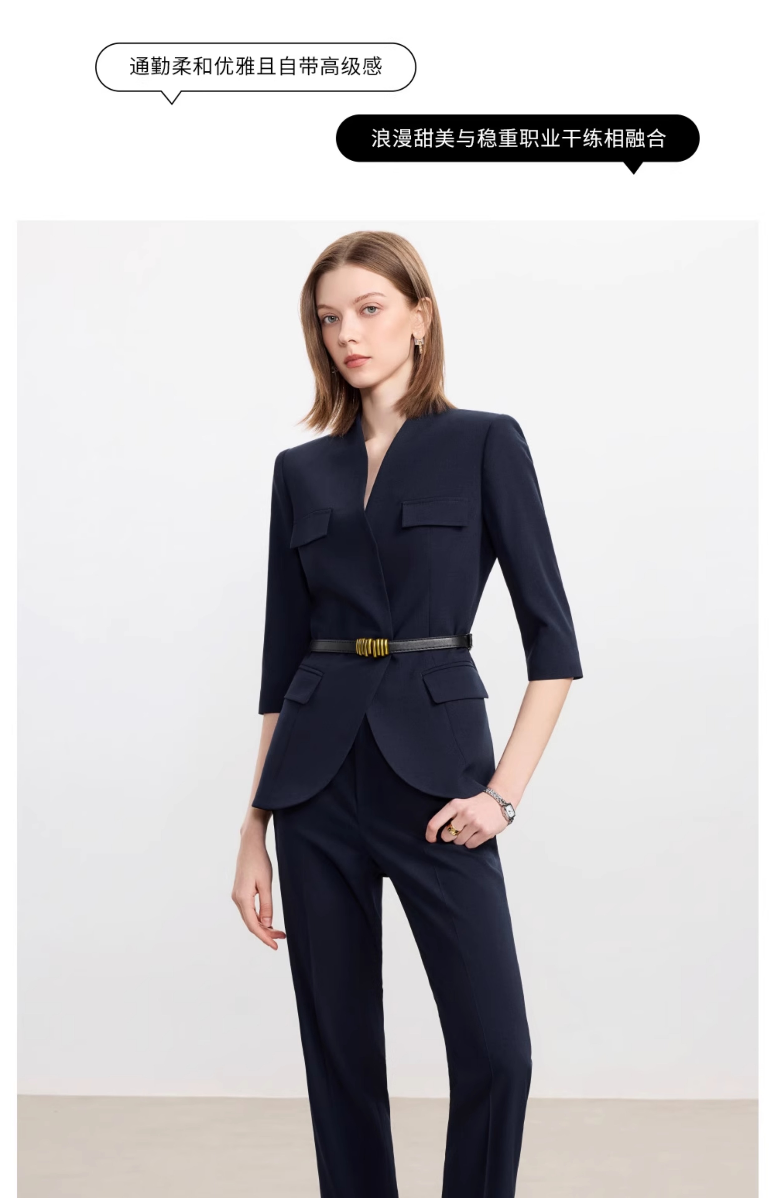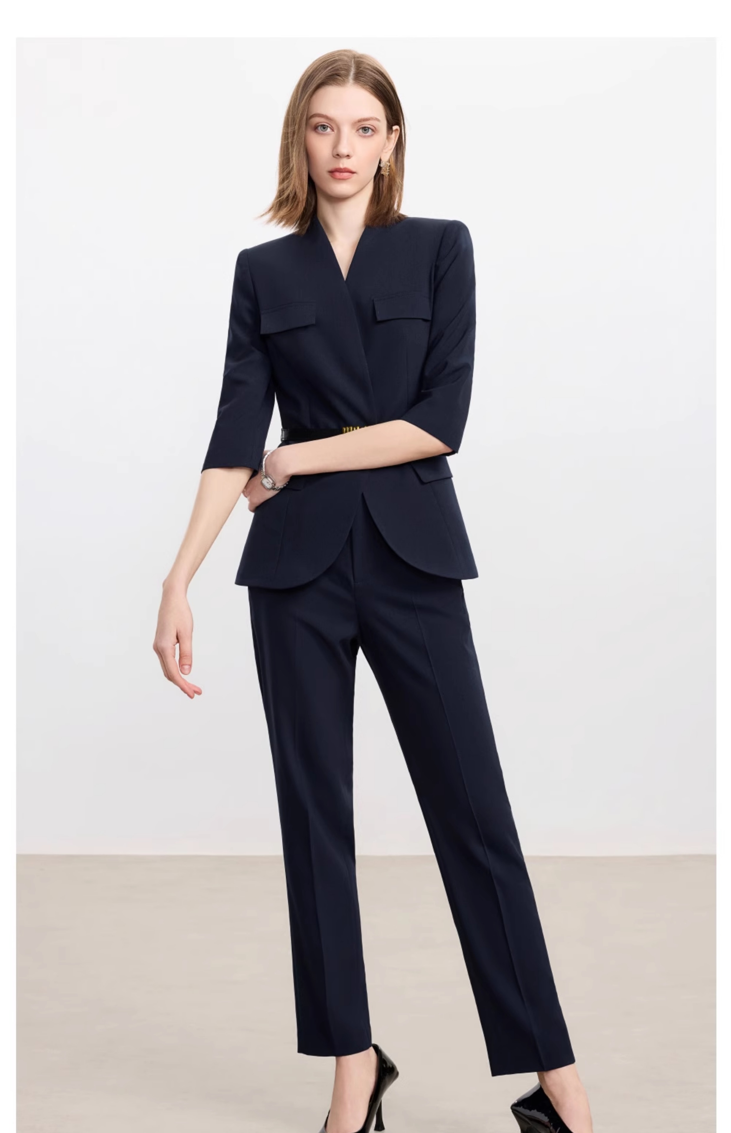 AD高智感气质套装女藏青色西装两件套2025秋季新款七分袖职业装