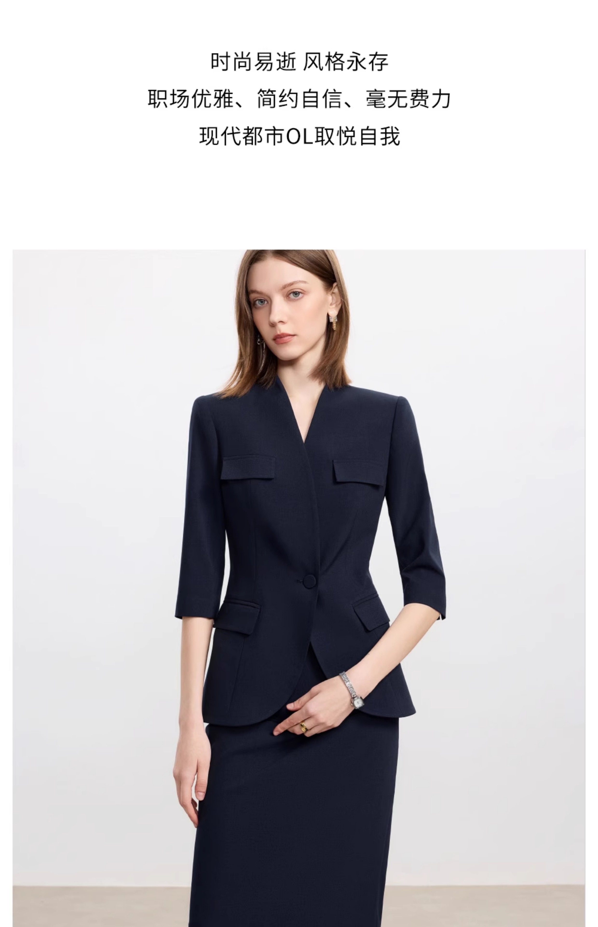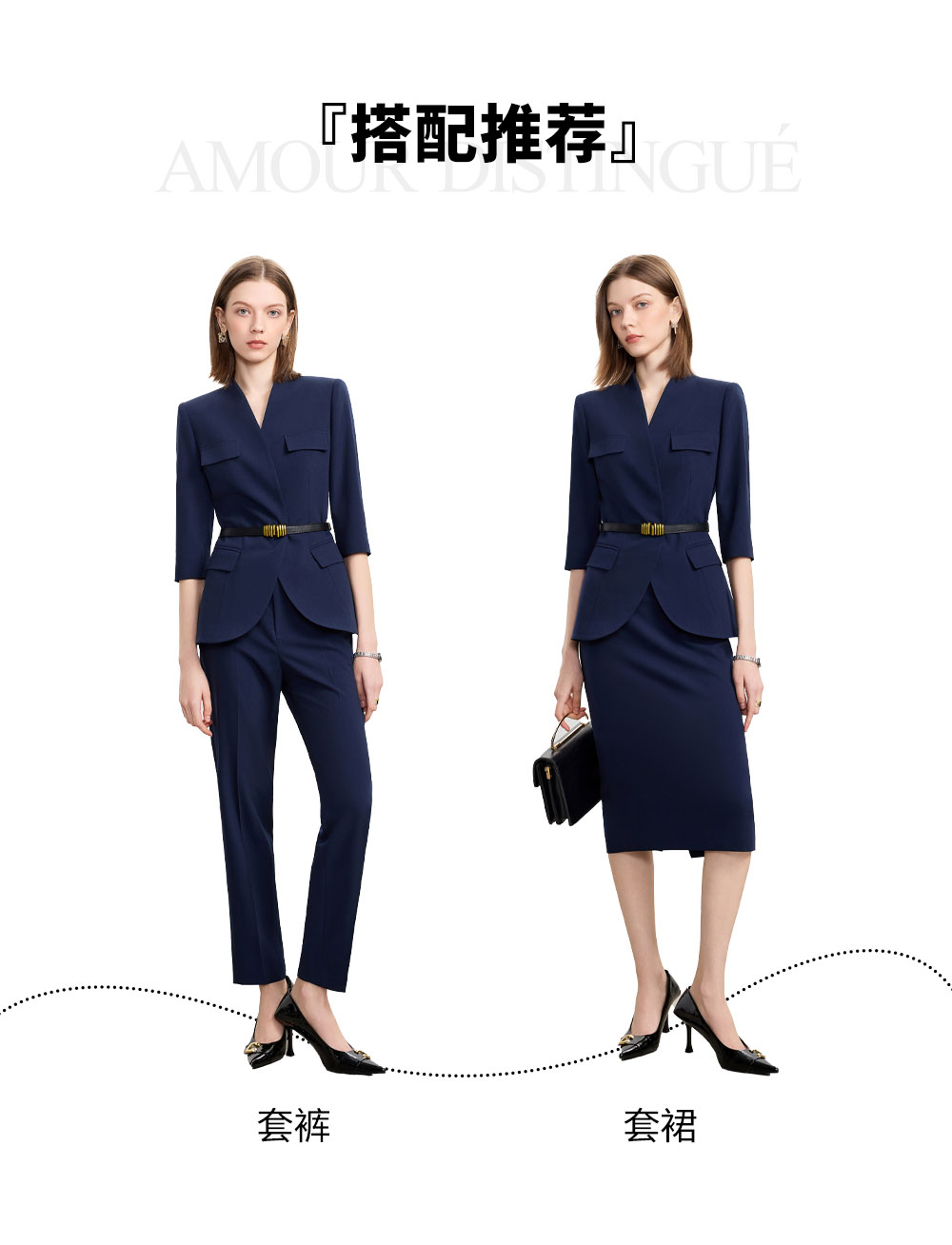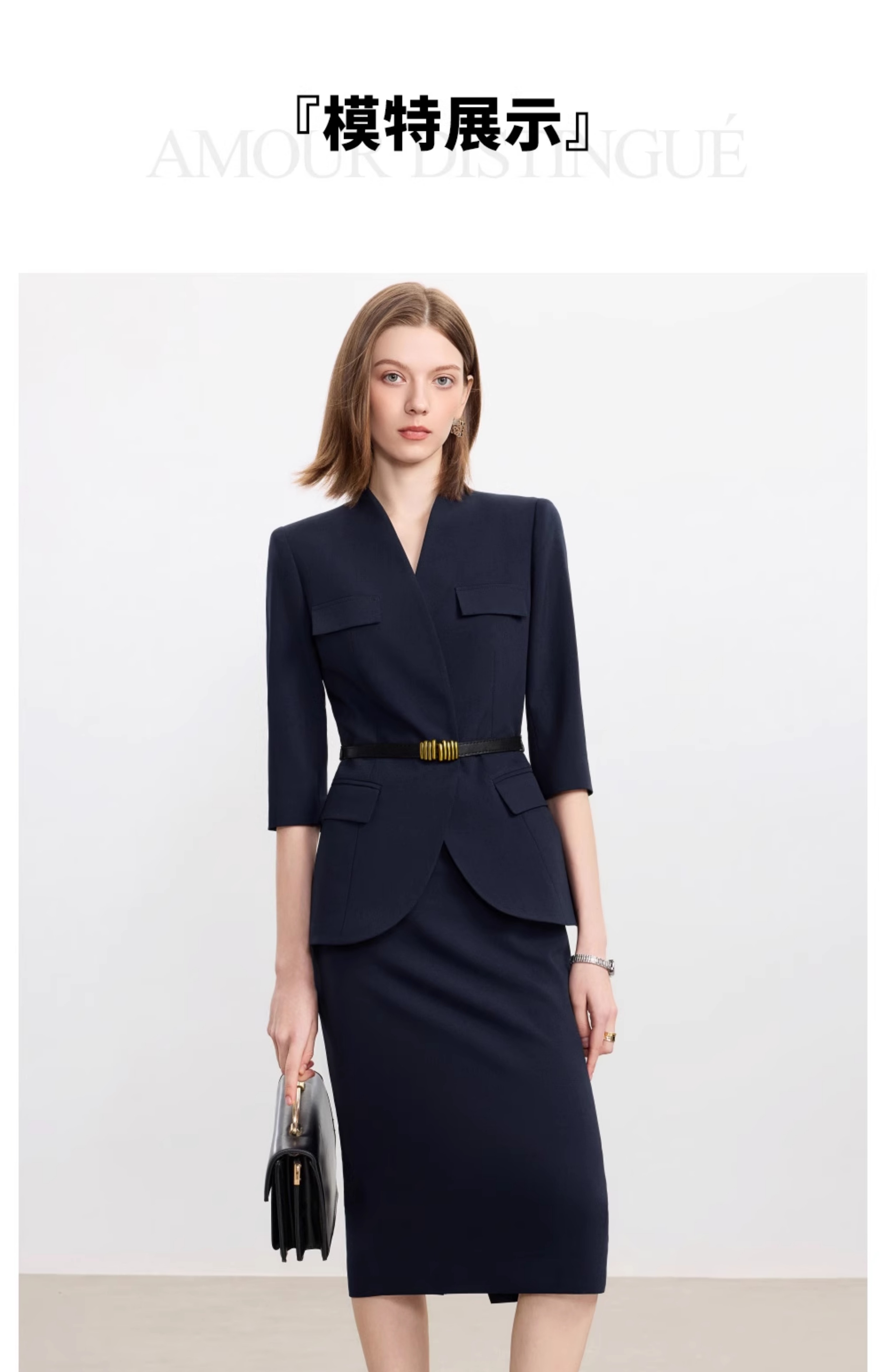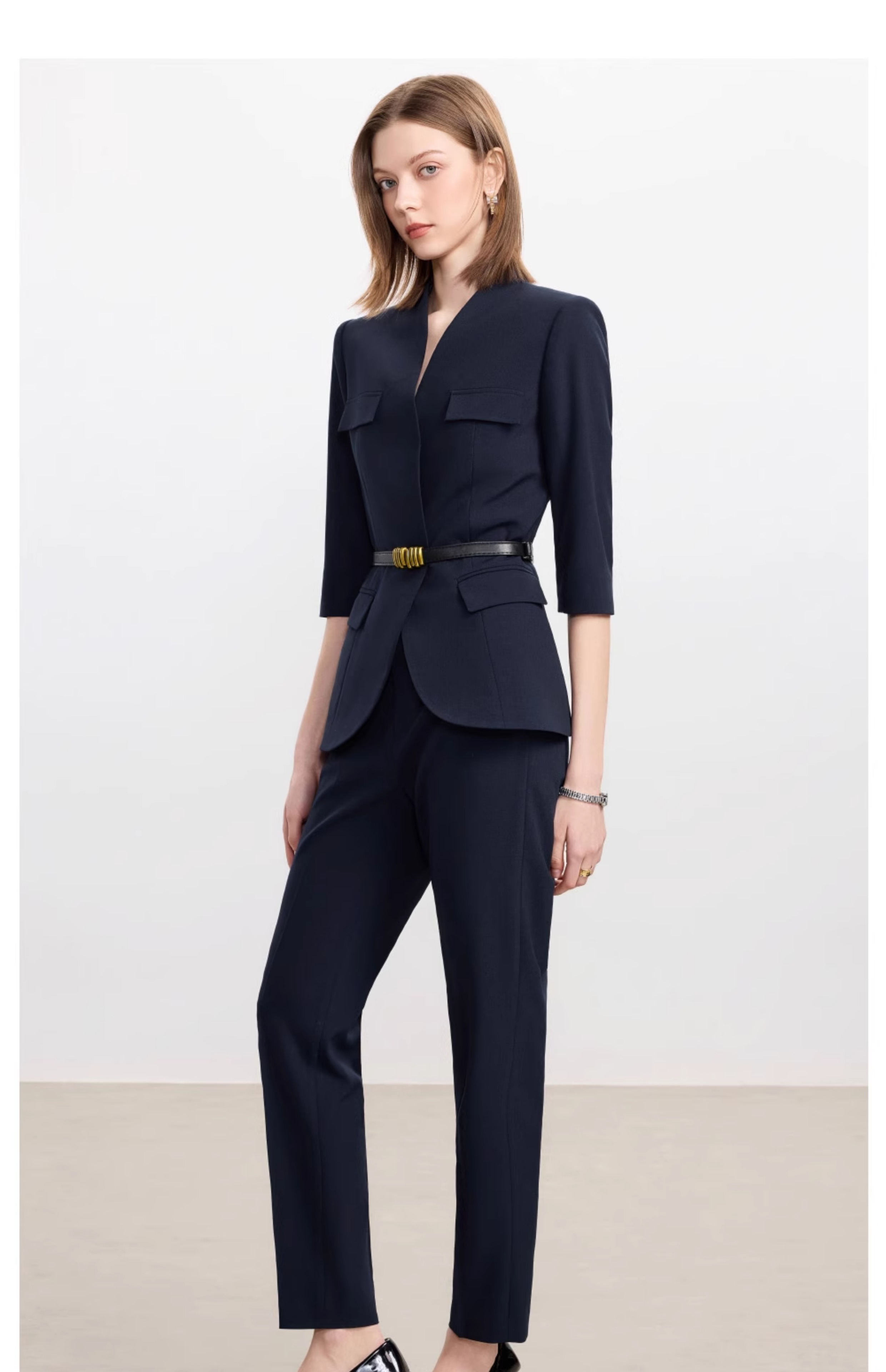 AD高智感气质套装女藏青色西装两件套2025秋季新款七分袖职业装