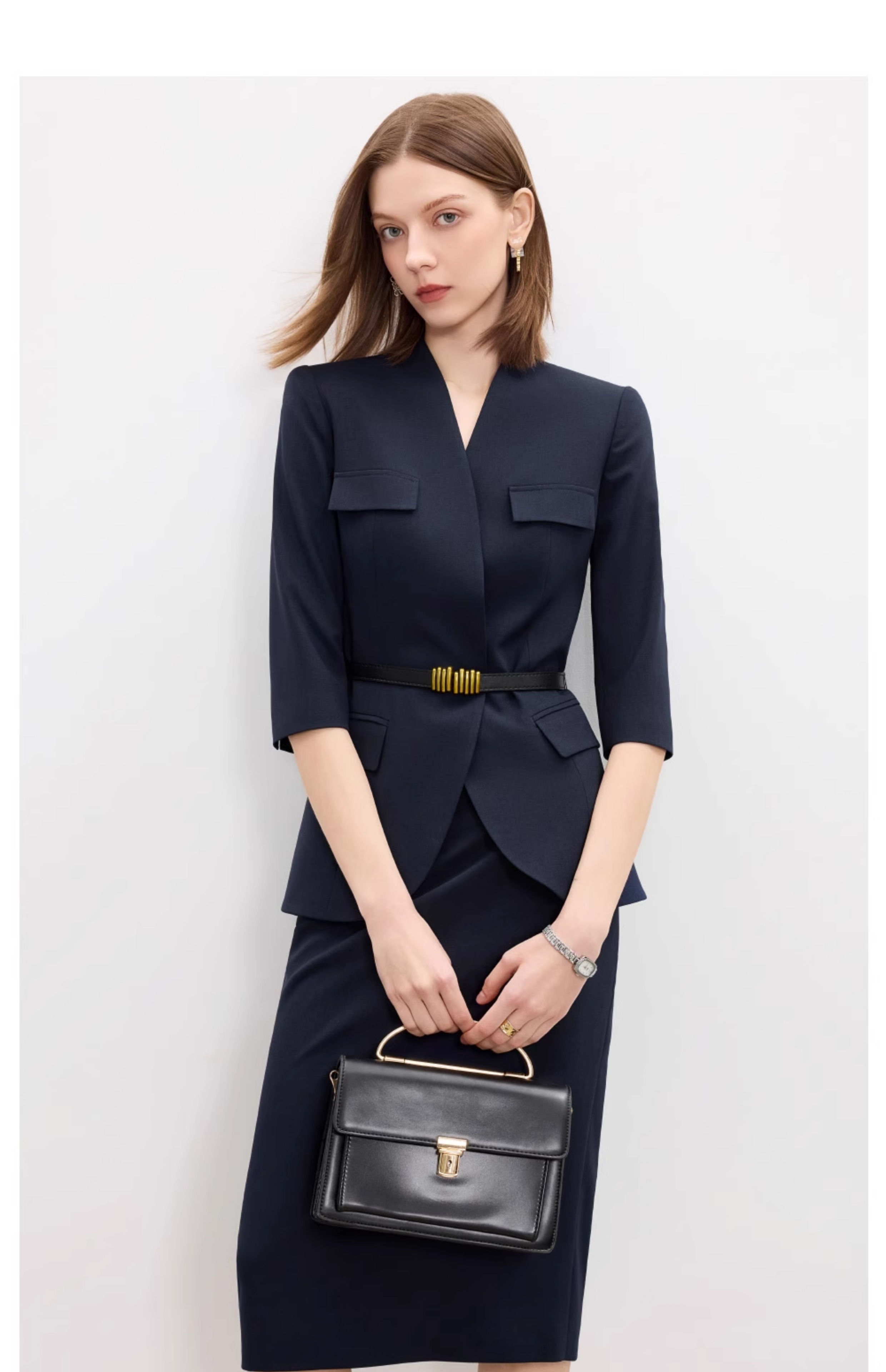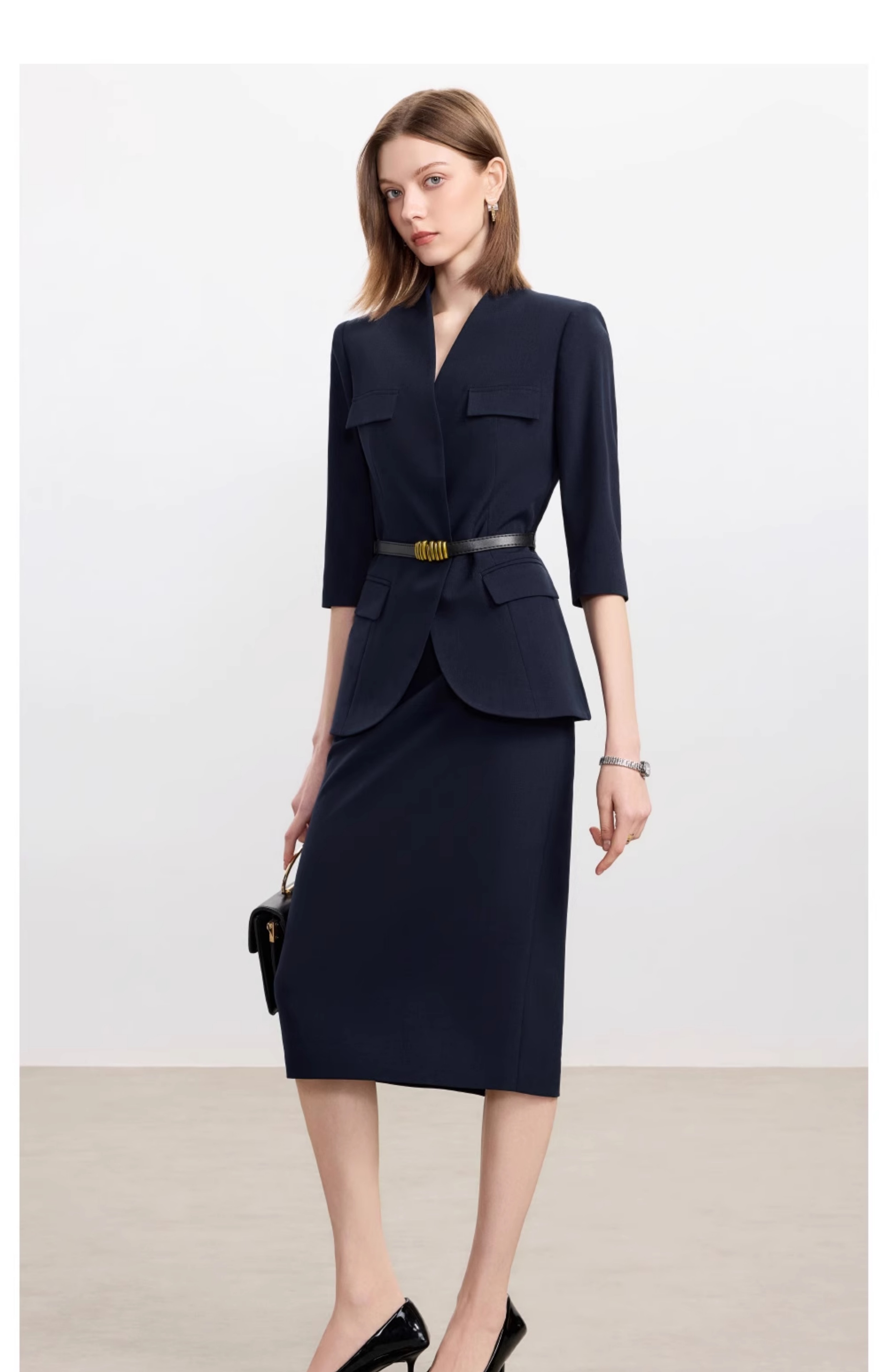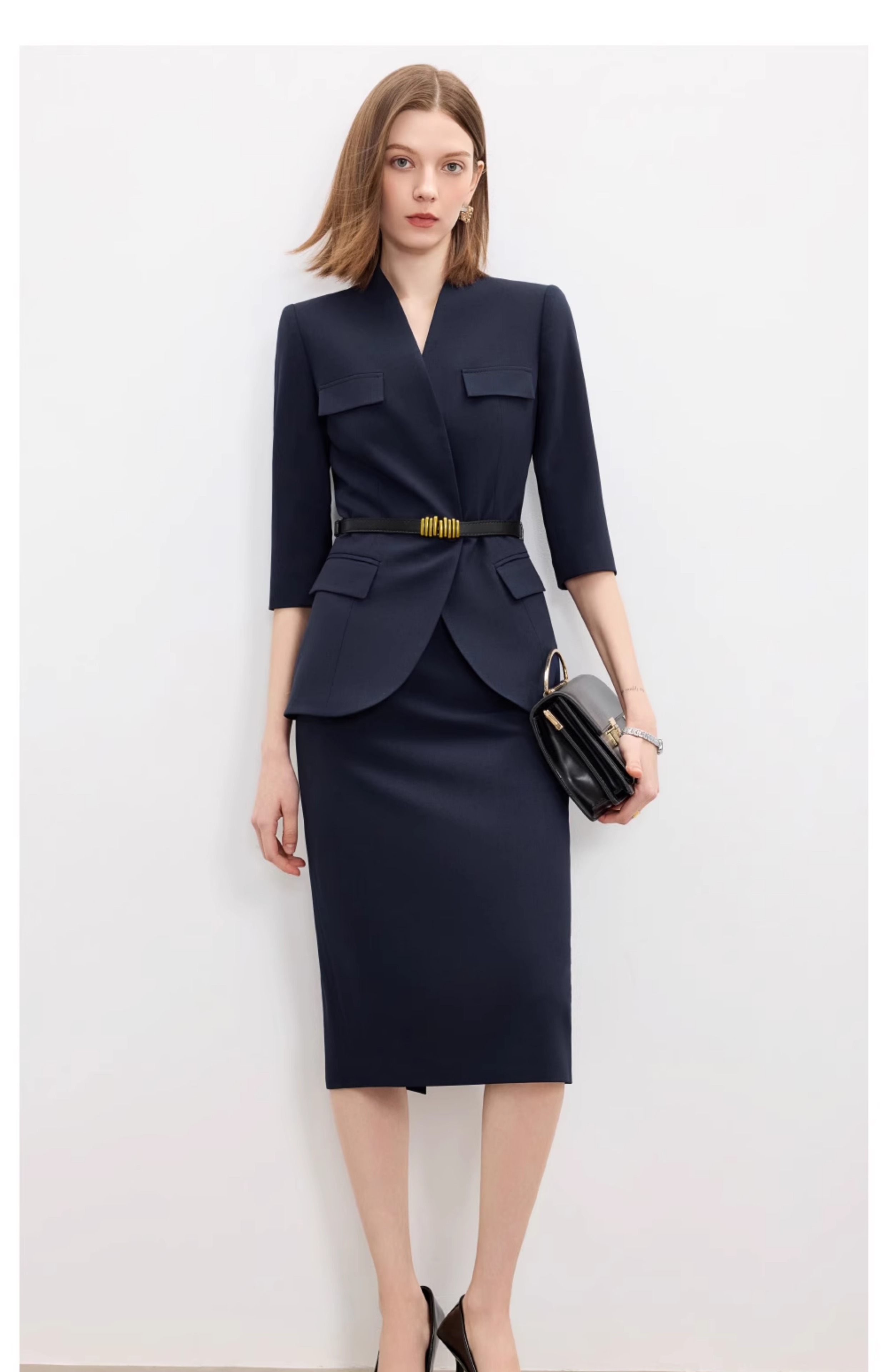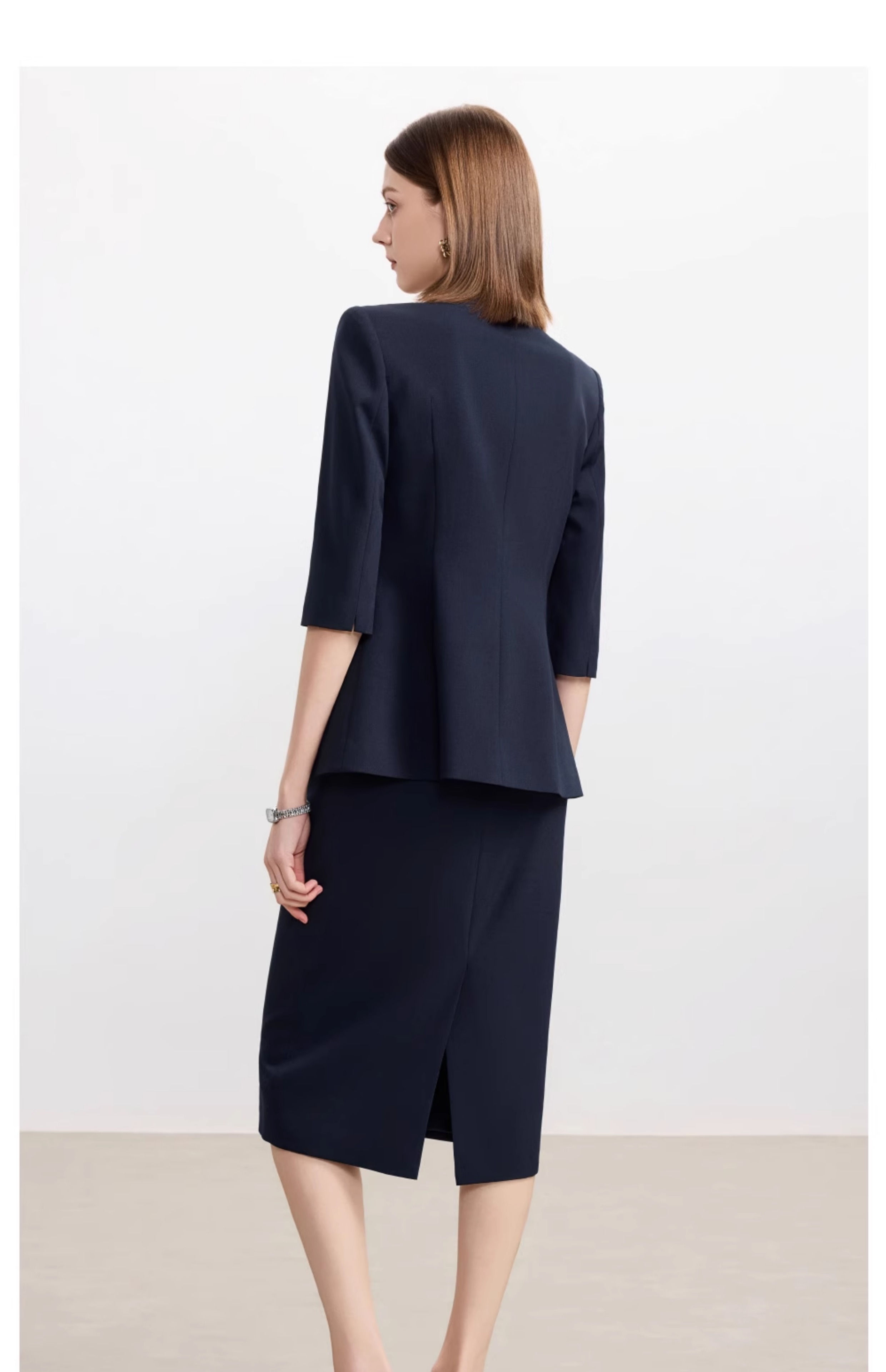 AD高智感气质套装女藏青色西装两件套2025秋季新款七分袖职业装