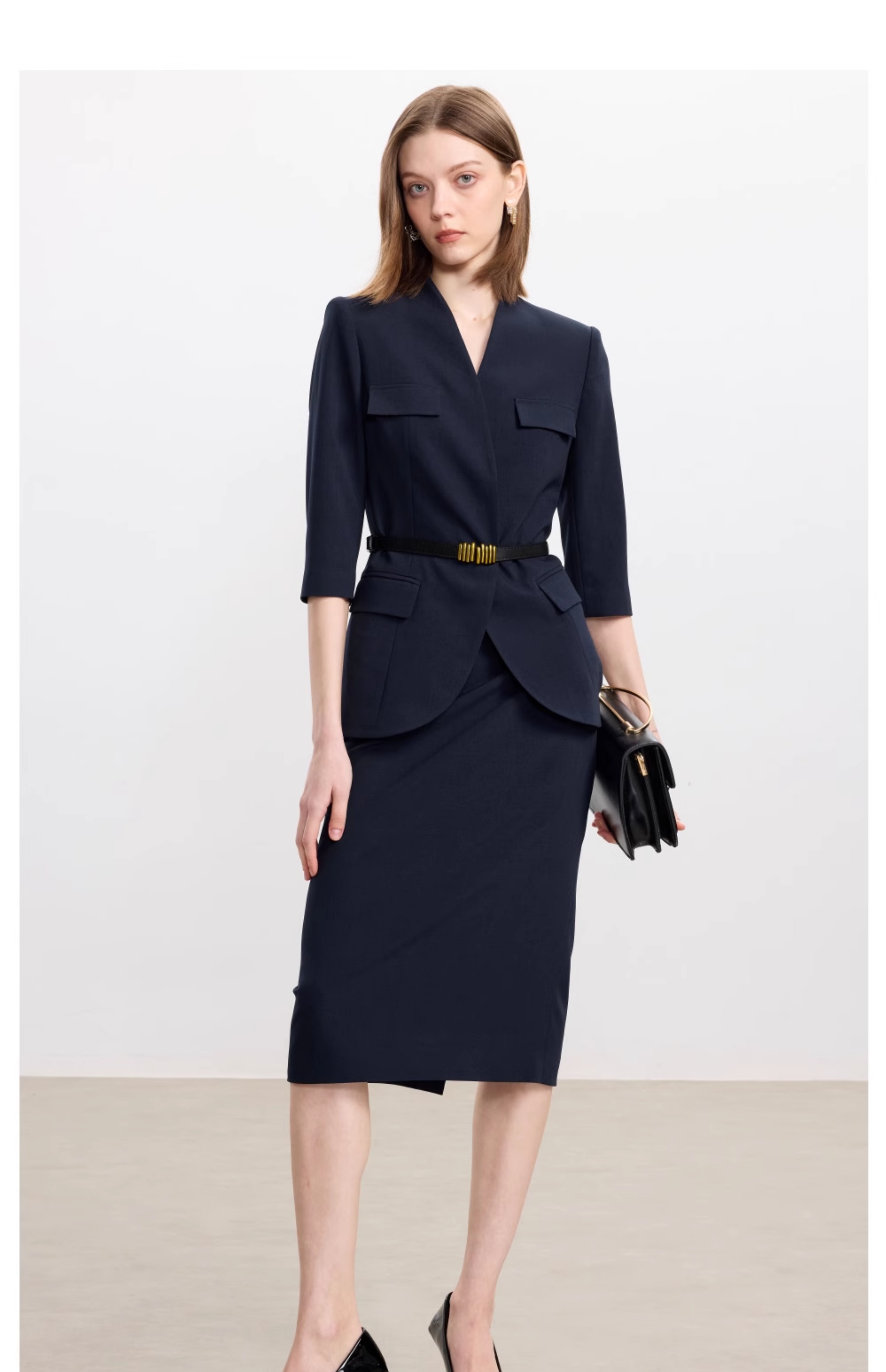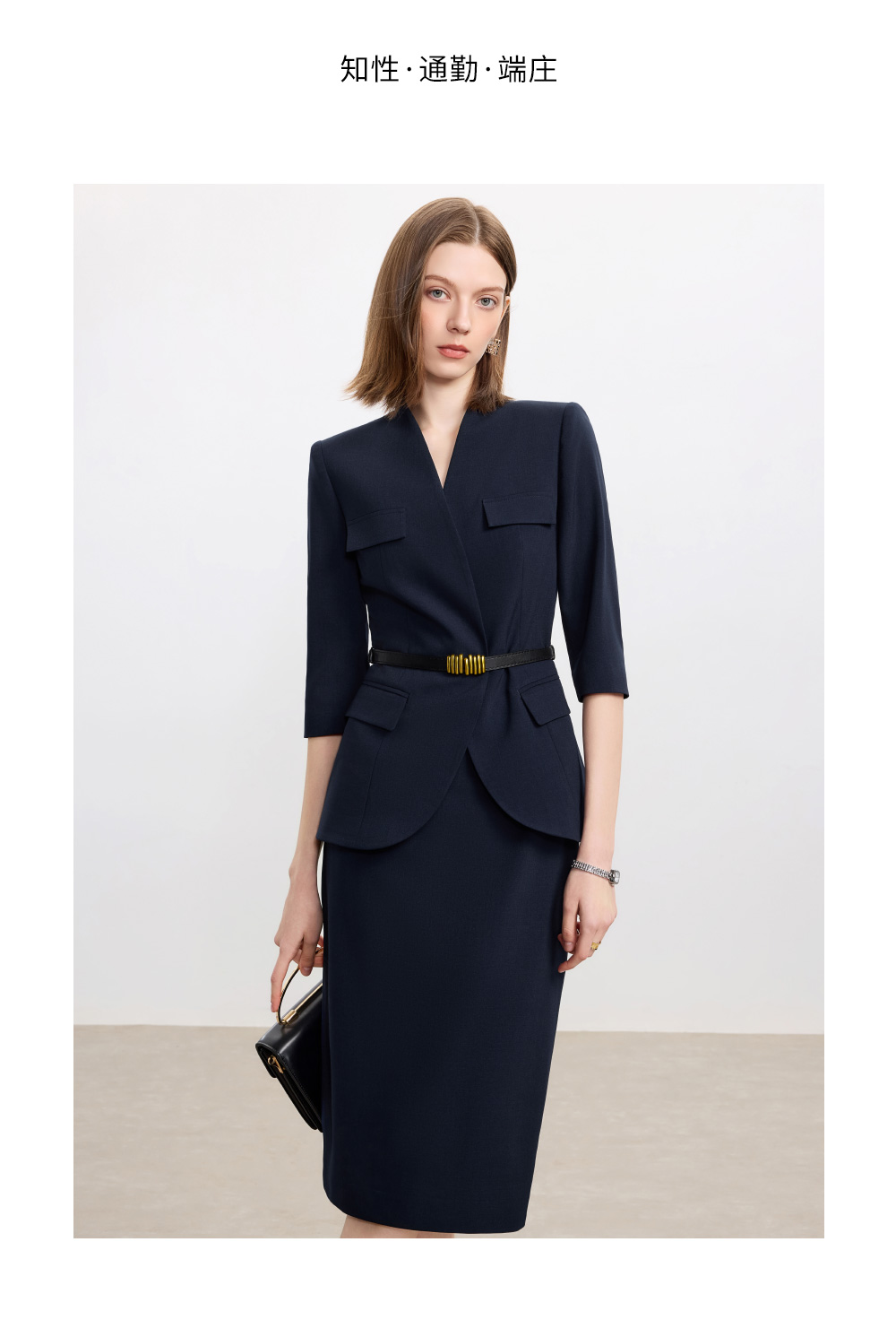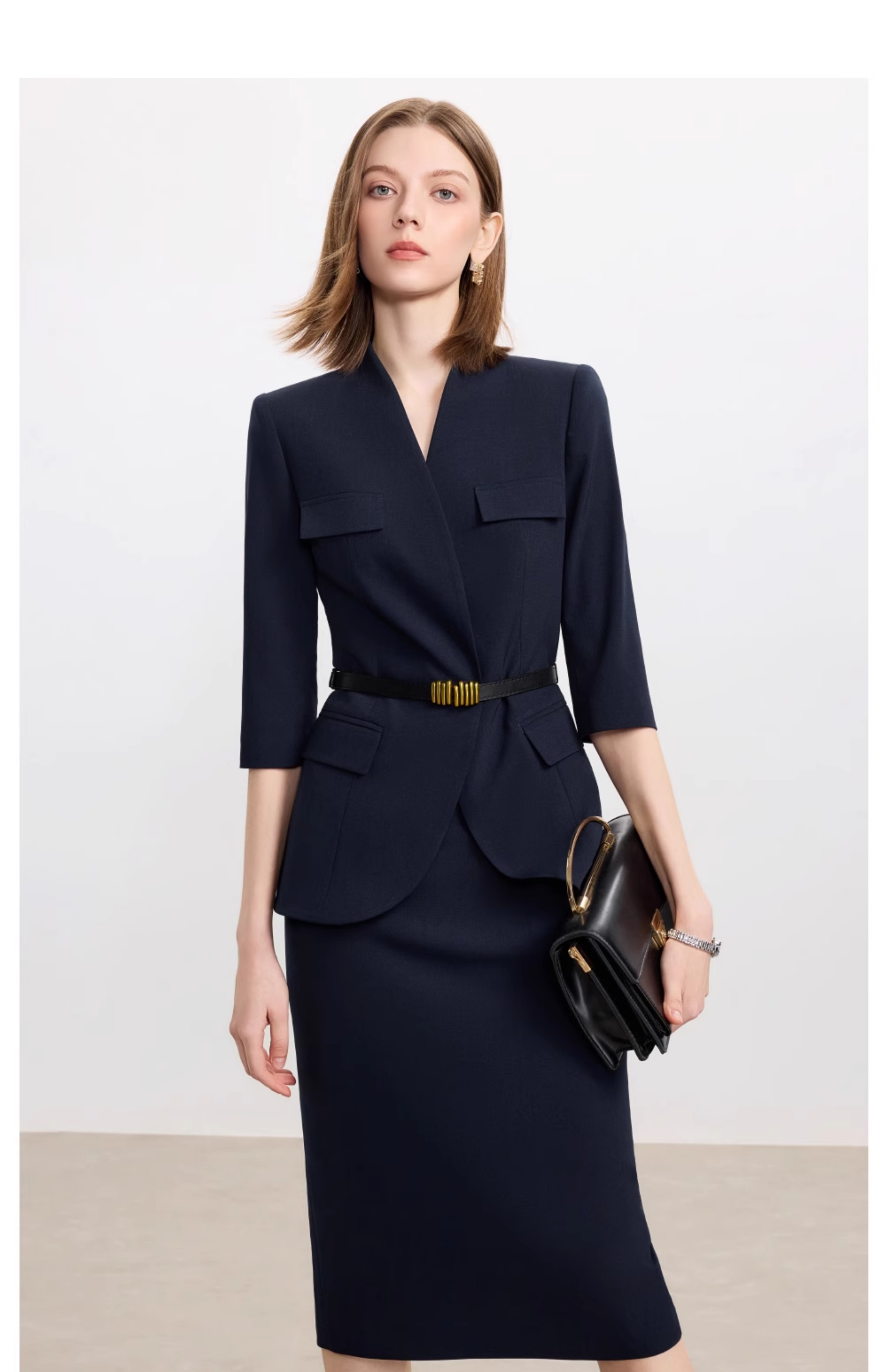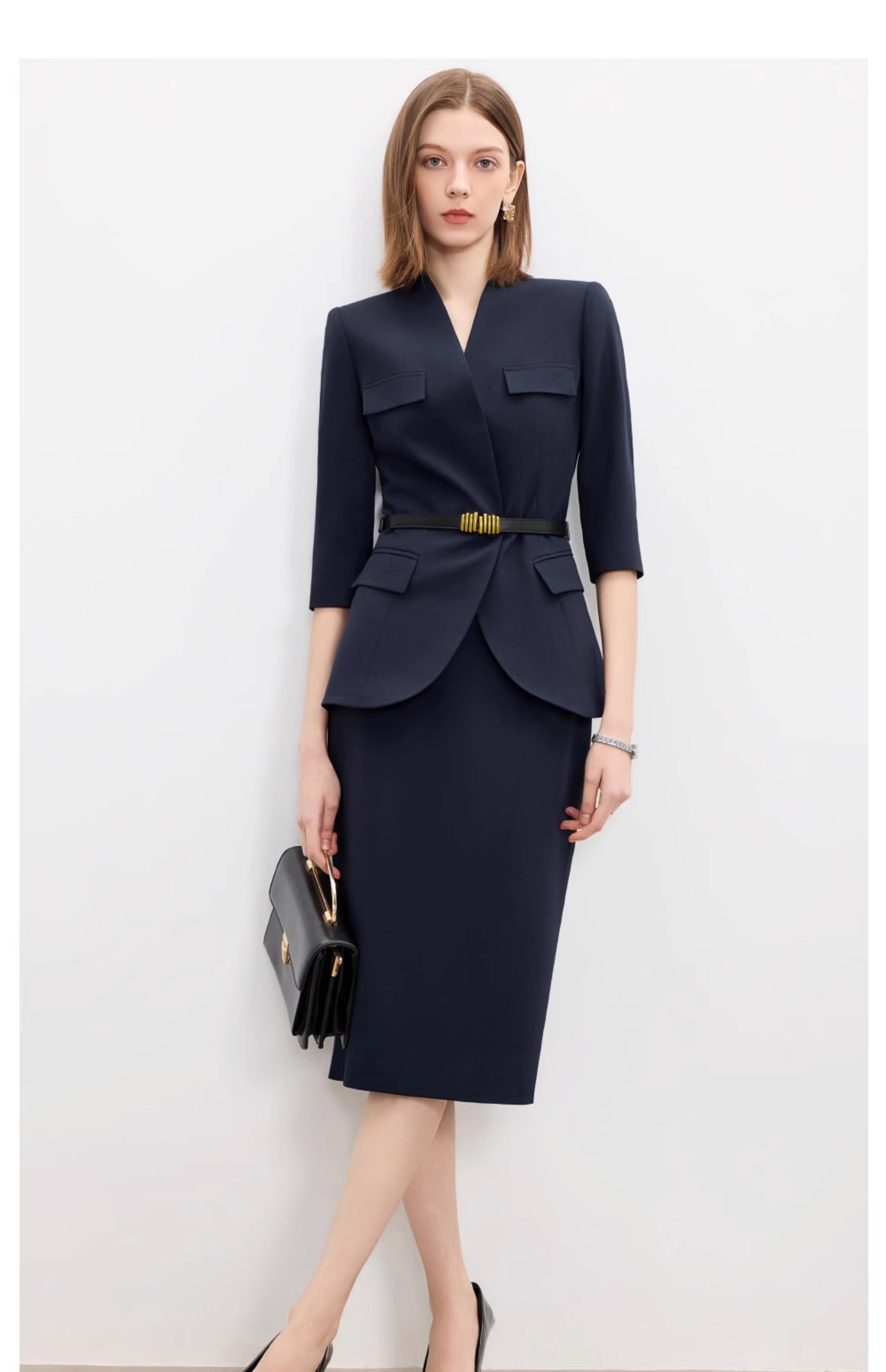 AD高智感气质套装女藏青色西装两件套2025秋季新款七分袖职业装